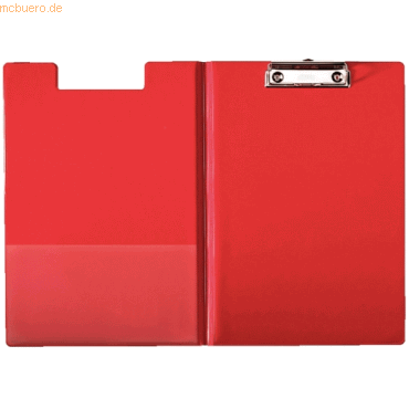 Klemmmappe (Clipboard); Schreibunterlage in Mappenform; stabile Klemm-Mechanik am oberen Rand des Rückteils; mit Innentasche am Vorderdeckel und Stiftelasche; Material: Einband mit PVC-Folie umschweisst; für A4; Farbe: rot;