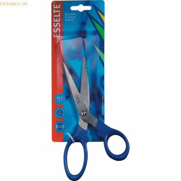 Papierschere 2000; Qualitätsschere aus Stahl, mit Schraube zum Nachjustieren der Schneiden; abgerundeter Spitze und blauen Kunststoffgriffen; Länge: 185 mm, 7 Zoll;