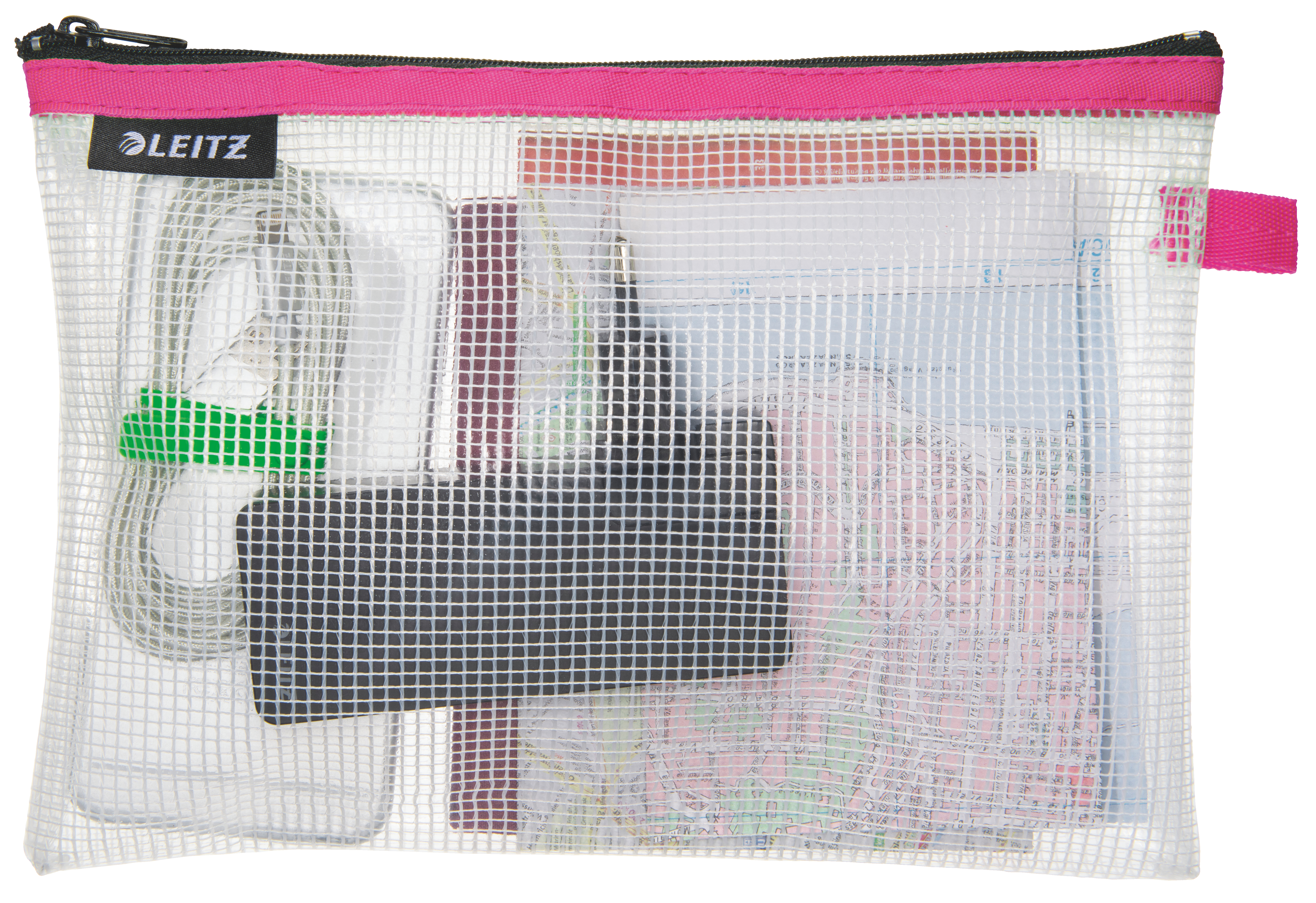 Leitz Traveller Zip-Beutel WOW; Größe M; Wasserabweisend; Hochwertiger, praktischer und strapazierfähiger Beutel; Zur Aufbewahrung und zum Schutz von Utensilien und Gegenständen in Handtasche, Laptop-Tasche, Schultasche, Gepäckstücken oder im Auto; Der Inhalt ist vor Feuchtigkeit geschützt; Transparentes Material hilft den Inhalt zu identifizieren; Ungiftig, langlebig, wasserabweisend und abwaschbar; Starker Reißverschluss; Material: EVA (Ethylenvinylacetat), 0,35 mm; Format: 24 x 17 cm, A5; Farbe: pink;