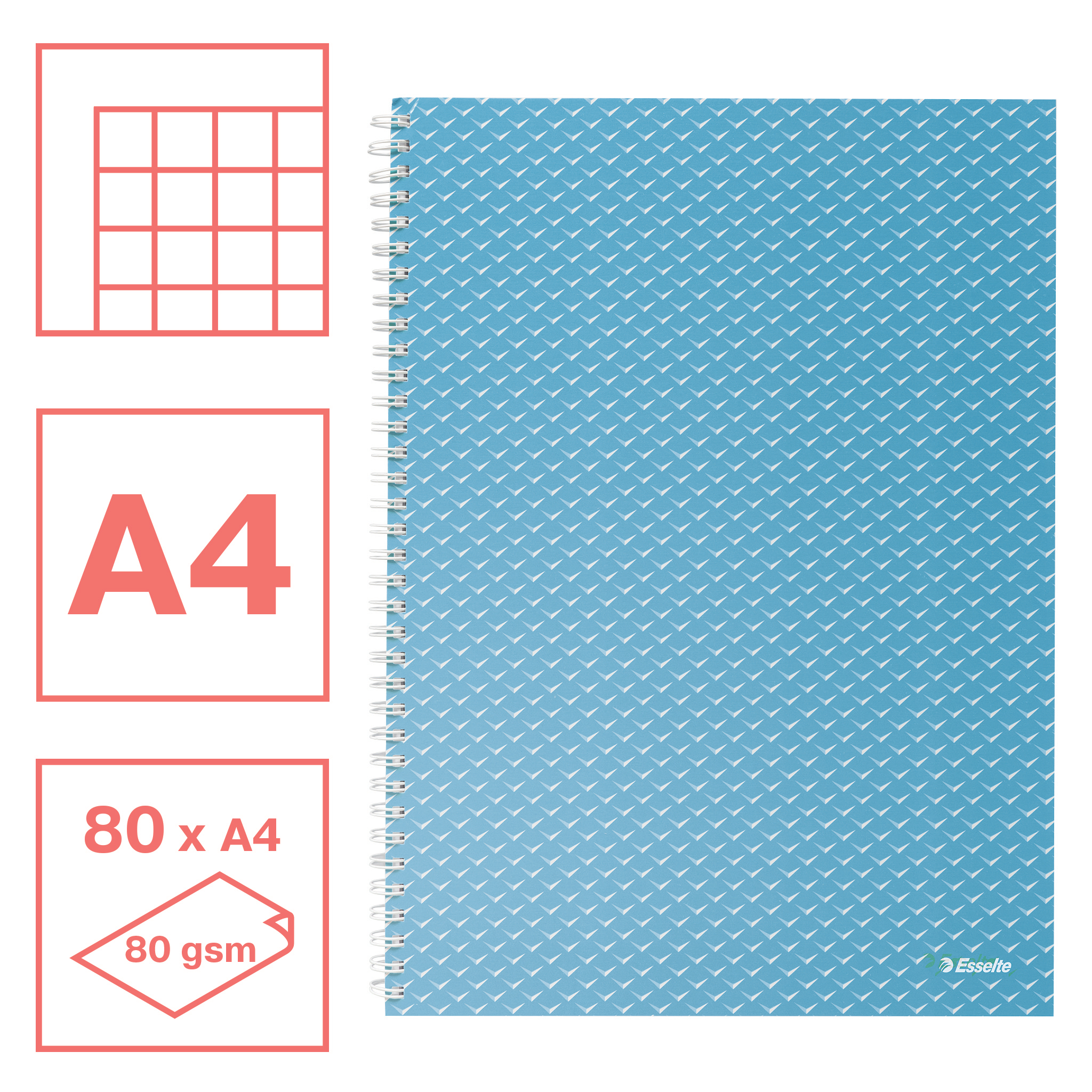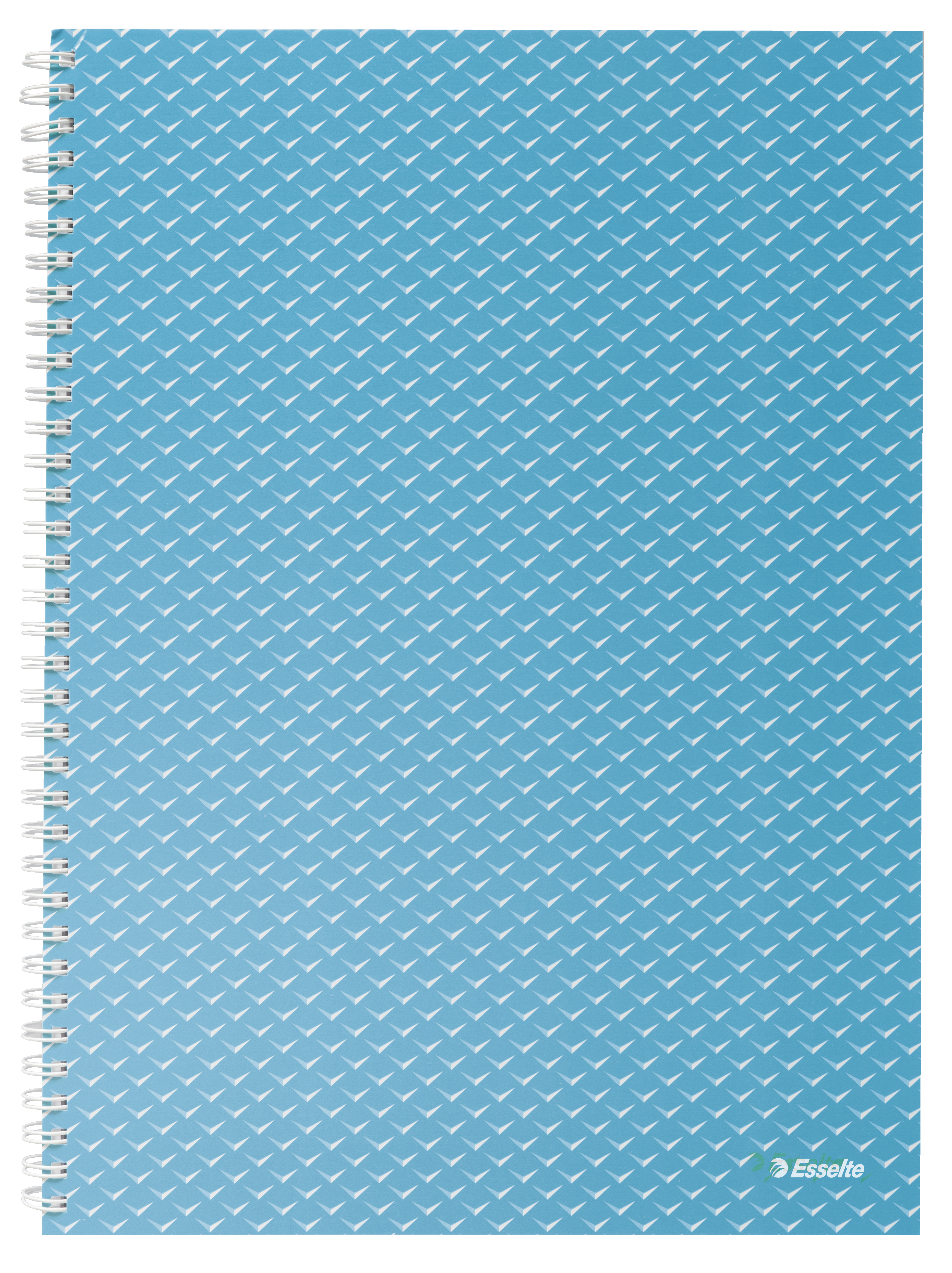Esselte Collegeblock Colour'Breeze; DIN A4; Lineatur: kariert; Spiralbindung; Mit Mikroperforation; Mit Lochung für die Ablage im Ordner oder Ringbuch; Mit metallisch schimmernder Oberfläche; Material: Karton; Format: 230 x 305 Blatt: 80, 80 g/qm; Papier FSC-zertifiziert; Farbe: blau;