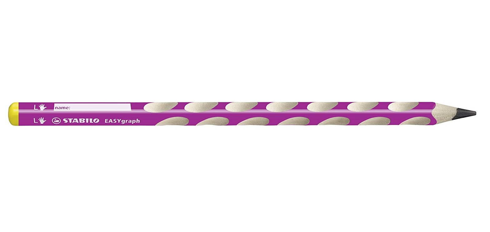 Ergonomischer Dreikant-Bleistift STABILO EASYgraph; Ausführung der Schaftform: Dreikantform; gespitzt; Schaft lackiert; für Linkshänder - sichtbar durch gelben Farbcode am Stiftende; Dreikantform und rutschfeste Griffmulden für eine entspannte Handhaltung; Minendurchmesser 3,15 mm; Holz aus nachhaltiger Waldwirtschaft; Mit Namensfeld; Härtegradkennzeichnung vorhanden; Länge: 175 mm; Farbe des Schaftes: pink; Bezeichnung der Härte: HB; Packungs-Inhalt: Blisterkarte mit 2 Stiften;