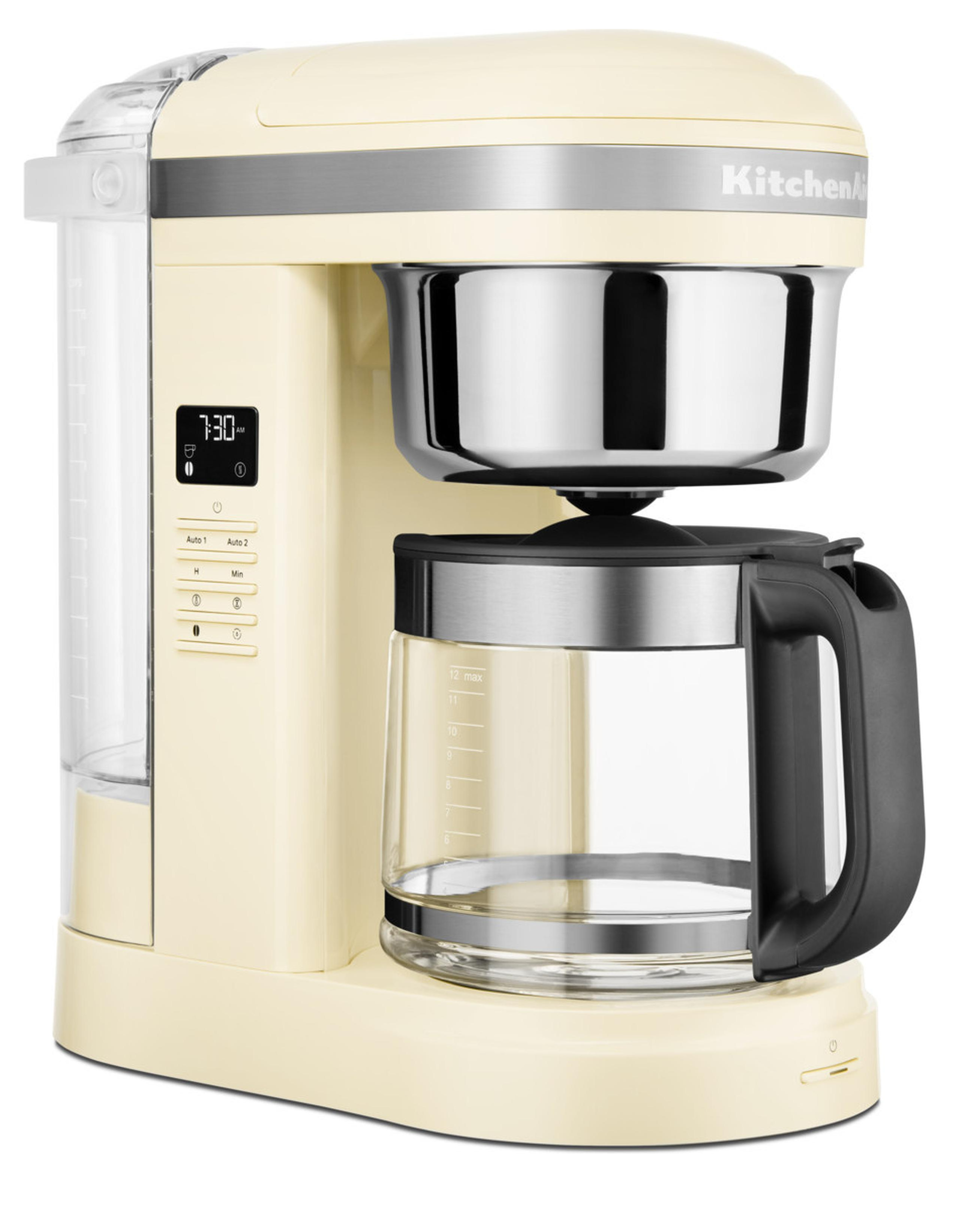 1,7 L-Filter-Kaffeemaschine für 12 Tassen mit spiralförmigem Wasserauslauf und einer programmierbaren Warmhalteplatte Einfach in der Benutzung, Bedientasten zur Auswahl der Brühstärke, Menge und des Brüh- oder Warmhaltevorgangs. Für frischen Kaffee mit der perfekten Temperatur (hoch und niedrig), selbst nach 40 Minuten. Wiederverwendbarer goldfarbener Permanentfilter mit Dosierungsanzeige und herausnehmbarem Wassertank mit großer Öffnung und Dosierungsgrafik Langlebig, einfach zu bedienen und zu reinigen, ersetzt den kegelförmigen Papierfilter. Einfaches Nachfüllen von Wasser, Vermeidung von Verschüttungen und benutzerfreundliche Bedienung. Zwei Brühtasten (eine an der Seite und die andere an der Vorderseite) und Programmiereinstellungen für zwei automatische Brühzeiten Einfache Bedienung und flexible Stellmöglichkeiten. Ermöglicht Programmiereinstellungen für zwei automatische Brühzeiten, damit Sie Ihren Kaffee unter der Woche sowie am Wochenende zu denen von Ihnen bestimmten Zeiten brühen können. 24-Stunden-Programmierung und intuitive One-Touch-Programmierung mit optimaler Temperaturkontrolle und einem eleganten, gut lesbaren LCD-Display Damit Ihr Kaffee zu jeder Tages- oder Nachtzeit für Sie bereit steht. Zur Aufrechterhaltung der optimalen Brühtemperatur während des gesamten Vorgangs. Leicht lesbare, einfache Bedienung ohne komplizierte Menüeinstellungen. Reinigungsanzeige und Reinigungszyklus Für die perfekte Tasse Kaffee in jedem Moment. 1,7 L-Glaskanne mit einzigartigem Auslauf und ergonomischem Griff Verhindert das Tropfen und Verschütten und sorgt so für ein müheloses Ausgießen. Für ein einfaches und komfortables Ausgießen. Brühstärken-Auswahltaste Ermöglicht die Auswahl der Kaffeestärken von mild bis kräftig und garantiert so jedes Mal eine vollmundige Tasse Kaffee. Pausieren und Ausgießen; nach Ablauf der gewünschten Warmhaltezeit schaltet sich die Kaffeemaschine automatisch ab. Um bereits vor Abschluss des Brühvorgangs eine köstliche Tasse Kaffee zu genießen.