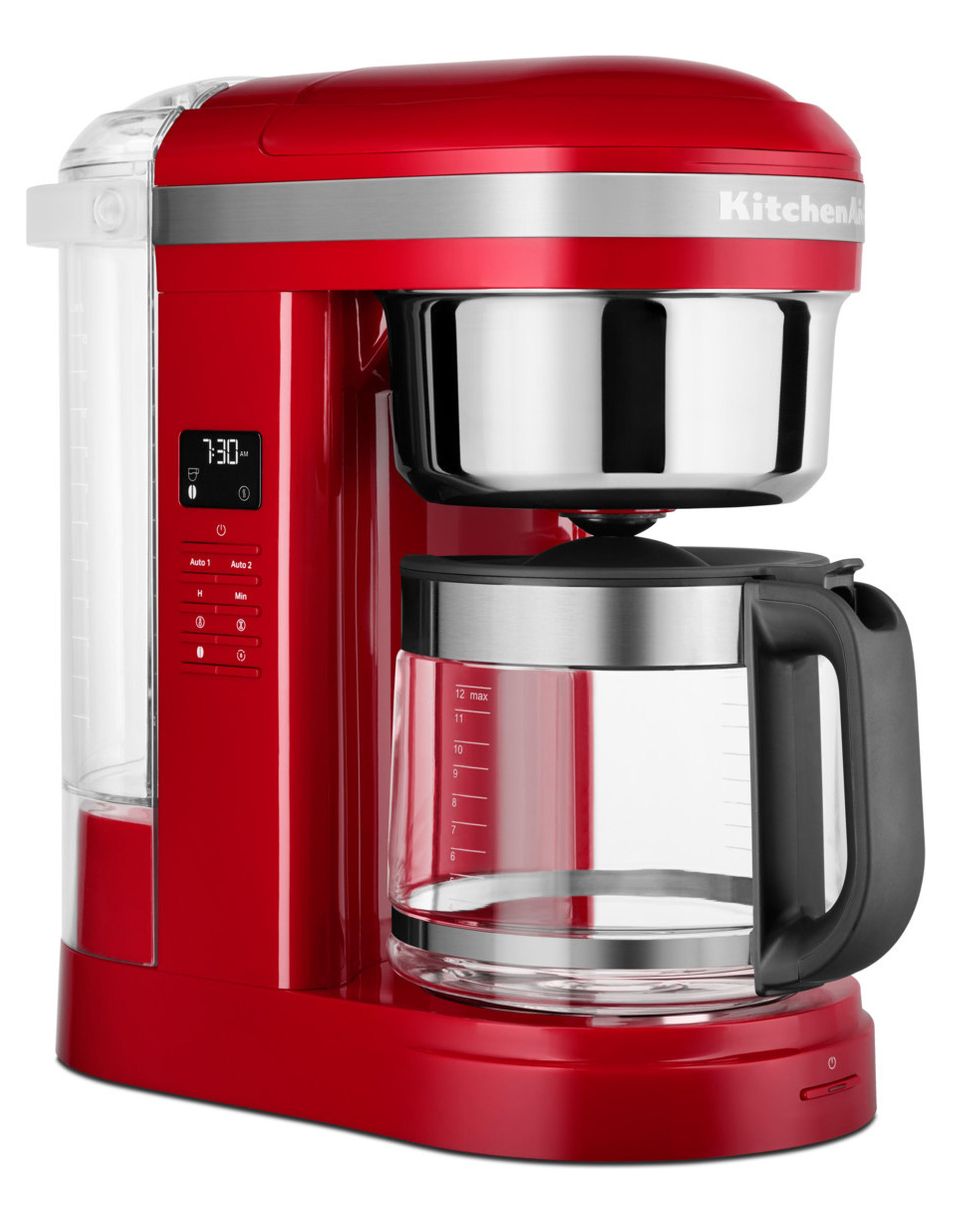 1,7 L-Filter-Kaffeemaschine für 12 Tassen mit spiralförmigem Wasserauslauf und einer programmierbaren Warmhalteplatte Einfach in der Benutzung, Bedientasten zur Auswahl der Brühstärke, Menge und des Brüh- oder Warmhaltevorgangs. Für frischen Kaffee mit der perfekten Temperatur (hoch und niedrig), selbst nach 40 Minuten. Wiederverwendbarer goldfarbener Permanentfilter mit Dosierungsanzeige und herausnehmbarem Wassertank mit großer Öffnung und Dosierungsgrafik Langlebig, einfach zu bedienen und zu reinigen, ersetzt den kegelförmigen Papierfilter. Einfaches Nachfüllen von Wasser, Vermeidung von Verschüttungen und benutzerfreundliche Bedienung. Zwei Brühtasten (eine an der Seite und die andere an der Vorderseite) und Programmiereinstellungen für zwei automatische Brühzeiten Einfache Bedienung und flexible Stellmöglichkeiten. Ermöglicht Programmiereinstellungen für zwei automatische Brühzeiten, damit Sie Ihren Kaffee unter der Woche sowie am Wochenende zu denen von Ihnen bestimmten Zeiten brühen können. 24-Stunden-Programmierung und intuitive One-Touch-Programmierung mit optimaler Temperaturkontrolle und einem eleganten, gut lesbaren LCD-Display Damit Ihr Kaffee zu jeder Tages- oder Nachtzeit für Sie bereit steht. Zur Aufrechterhaltung der optimalen Brühtemperatur während des gesamten Vorgangs. Leicht lesbare, einfache Bedienung ohne komplizierte Menüeinstellungen. Reinigungsanzeige und Reinigungszyklus Für die perfekte Tasse Kaffee in jedem Moment. 1,7 L-Glaskanne mit einzigartigem Auslauf und ergonomischem Griff Verhindert das Tropfen und Verschütten und sorgt so für ein müheloses Ausgießen. Für ein einfaches und komfortables Ausgießen. Brühstärken-Auswahltaste Ermöglicht die Auswahl der Kaffeestärken von mild bis kräftig und garantiert so jedes Mal eine vollmundige Tasse Kaffee. Pausieren und Ausgießen; nach Ablauf der gewünschten Warmhaltezeit schaltet sich die Kaffeemaschine automatisch ab. Um bereits vor Abschluss des Brühvorgangs eine köstliche Tasse Kaffee zu genießen.