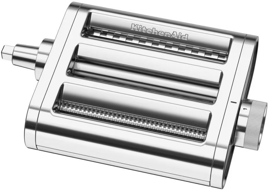 Selbst gemachte Pasta war noch nie so einfach Der KitchenAid 3-in-1-Nudelvorsatz aus Edelstahl für Küchenmaschinen ist Ihre persönliche All-in-One-Nudelmaschine. Sie können ohne Pause Fettuccine, Spaghetti, Lasagneplatten und vieles mehr ausrollen und schneiden. Gehen Sie vom Ausrollen direkt zum Schneiden über, ohne Teile zu wechseln. So funktioniert Pastaherstellung auf die einfache Art. Stellen Sie selbst authentische, frische Pasta her Abendessen mit frischen Nudeln? Herrlich unkompliziert. Diese 3-in-1-Nudelmaschine für Ihre Küchenmaschine kann Teig ausrollen und schneiden – kein Teilewechseln erforderlich, nur ein einziger Vorsatz. Von Nudeln und Ravioli bis hin zu Lasagneplatten und Spaghetti, mit diesem Pastaschneider-Set wird aus Teig ein köstliches Abendessen. Einfach vorbereiten, ausrollen, schneiden und servieren. Ein Werkzeug, so viele Möglichkeiten Von glatten Lasagneplatten und Ravioli bis hin zu Spaghetti oder Fettuccine – dieser 3-in-1-Nudelvorsatz eignet sich für sämtliche Pastasorten. Sie müssen nicht zwischen verschiedenen Vorsätzen wechseln, sondern können den Teig mit einem einzigen Werkzeug ausrollen und schneiden. Und das gilt nicht nur für Pasta. Verwenden Sie die Walze für Teigtaschen, Tortillas, Gebäck, Pizzateig und mehr. Was auch immer gerade ansteht, dieses Set aus Teigwalze und -schneidern bietet Ihnen die Möglichkeit, Ihre Favoriten mit wenig Aufwand und hoher Flexibilität zuzubereiten. Pasta ganz nach Ihren Vorstellungen Rollen Sie mit acht Einstellungen für die Dicke perfekte Platten aus. Dazu einfach den Knopf drehen, um die ideale Einstellung zu wählen. Anschließend können Sie den Teig im Handumdrehen zu klassischen Spaghetti, herzhaften Fettuccine und sogar zarten Engelshaarnudeln schneiden. Oder verwenden Sie die glatten Platten einfach für Lasagne, Ravioli, Tortellini und mehr. Dank der präzisen Teigwalze und -schneider erhalten Sie immer einheitliche Chargen. Ob feine Nudeln oder gefüllte Pasta, so wird Selbermachen zum Kinderspiel. Selbst gemachte Pasta in 4 einfachen Schritten: vorbereiten, ausrollen, schneiden und servieren Pasta von Grund auf zuzubereiten, muss nicht unbedingt in eine Großproduktion ausarten. Mit diesem 3-in-1-Pastaschneider-Set sind es nur vier einfache Schritte vom Teig bis zum fertigen Gericht: vorbereiten, ausrollen, schneiden und servieren. Ihre KitchenAid Küchenmaschine kümmert sich um die harte Arbeit und übernimmt das Ausrollen und Schneiden mit nur einem praktischen Vorsatz. Da er alle Funktionen vereint, können Sie direkt von einer Aufgabe zur nächsten übergehen, ohne den Vorsatz wechseln zu müssen – ganz unkompliziert und ohne schwierigen Umbau. So funktioniert Pastaherstellung auf die einfache Art. Langlebig und seit Generationen bewährt Der 3-in-1-Nudelvorsatz verfügt über eine Walze und Schneider aus Edelstahl und wurde für glatte, einheitliche Ergebnisse entwickelt – egal, ob Sie frische Nudelplatten oder sonstige Arten von Teig ausrollen möchten. Er wurde auf Präzision getestet und ist auf Langlebigkeit ausgelegt. Bei der Entwicklung flossen über 100 Jahre Erfahrung in der Handwerkskunst ein, die KitchenAid auszeichnet. Er funktioniert reibungslos mit Ihrer Küchenmaschine und ist selbst Dauereinsatz über viele Jahre hinweg gewachsen. Reinigung leicht gemacht Die abnehmbare obere Abdeckung bietet Ihnen freien Zugang zum inneren Gehäuse und lässt sich abnehmen, damit Sie nach jedem Gebrauch alles trocknen lassen und gründlicher reinigen können. Der doppelseitige Reinigungspinsel entfernt Mehl, Krümel und – mit dem Schaber-Ende – sogar angetrocknete Teigreste. Wenn Sie fertig sind, können Sie den Vorsatz bei Bedarf mit einem trockenen Tuch abwischen. Ganz einfach. Mit allen KitchenAid Küchenmaschinen kompatibel Welche KitchenAid Küchenmaschine Sie auch verwenden, dieser Nudelvorsatz ist einsatzbereit. Er lässt sich mühelos anbringen und liefert permanent dieselbe zuverlässige Qualität und köstliche Ergebnisse. Pasta-Party Die Nudelzubereitung macht in der Gruppe noch mehr Spaß. Also raus aus dem Alltag und rein in die Kochschürze: Verabreden Sie sich mit Familie oder Freunden zum Kochen und erleben Sie, wie viel Freude es macht, gemeinsam frische Gerichte zu kreieren und natürlich auch zu genießen.