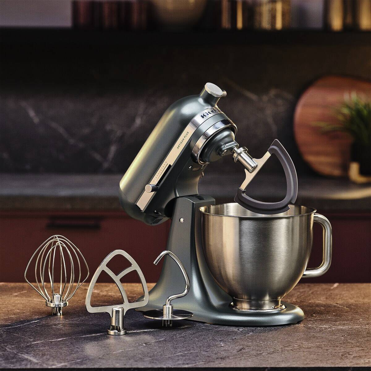 Setzen Sie Ihre Rezepte perfekt in Szene Sie werden die Artisan Plus lieben – die erste Küchenmaschine von KitchenAid mit integrierter Schüsselbeleuchtung. Beobachten Sie, was passiert, während Sie mischen und sehen Sie, wie Ihre Kreationen Gestalt annehmen. Wechseln Sie im Handumdrehen zwischen Geschwindigkeitsstufen mit der präzisen Geschwindigkeitseinstellung, um die ideale Textur zu erhalten. Das tägliche Kochen wird zum Kinderspiel – von Stampfkartoffeln bis hin zu zerkleinertem Hähnchenfleisch und cremiger Guacamole. Entdecken Sie, wie jedes Detail der Artisan Plus Ihnen noch mehr Möglichkeiten in der Küche gibt. Entwickelt für perfekte Ergebnisse Die Artisan Plus Küchenmaschine wurde entwickelt, um dank ihres leistungsstarken Motors auch feste und schwere Teige mit Leichtigkeit zu bewältigen. Aber sie glänzt nicht nur mit ihrer starken Leistung. Wie alle unsere Küchenmaschinen verfügt auch sie über das Planetenrührwerk von KitchenAid. Das bedeutet, dass sich die Zubehörnabe in eine Richtung dreht und das Zubehörteil in die andere Richtung. Dadurch wird sichergestellt, dass die Zutaten gleichmäßig vermischt werden und nichts übrig bleibt. Da der Rührer mindestens 59 Berührungspunkte in der gesamten Schüssel erreicht, erhalten Sie jedes Mal eine gründliche, gleichmäßige Mischung. Finden Sie die passende Geschwindigkeit Wählen Sie schnell und zuverlässig aus elf voreingestellten Geschwindigkeitsstufen oder drehen Sie den praktischen Regler, um die präzise Geschwindigkeitseinstellung zu aktivieren. Mit dieser Funktion können Sie mühelos zwischen den Stufen wechseln, sodass Sie genau die Geschwindigkeit wählen können, die Sie für Ihr Rezept benötigen. Vom Aufschlagen von Sahne bis hin zum Kneten von Teig – Sie erhalten jedes Mal die ideale Konsistenz – ohne Rätselraten, sondern durch mühelose Präzision. Sehen Sie Ihre Kreationen in einem ganz neuen Licht Die Artisan Plus Küchenmaschine ist das erste Modell von KitchenAid mit integrierter Schüsselbeleuchtung, damit Sie jedes Detail Ihres Rezepts sehen können. Die integrierte Schüsselbeleuchtung schaltet sich automatisch ein, wenn der Kopf abgesenkt wird oder die Küchenmaschine in Betrieb ist. Sie können sie aber auch mit einer einfachen Drehung des Geschwindigkeitsreglers einschalten, wann immer Sie möchten. Mit der Maschine bleibt kein Stäubchen Mehl zurück und Sie können jederzeit die Textur überprüfen. So sind Klarheit und Sicherheit bei jeder Mischung garantiert. Nichts wird verschwendet Dank der flexiblen Silikonkanten schabt der doppelseitige Flexi-Rührer beim Mischen sanft die Schüssel ab, sodass man dies nicht mehr von Hand tun muss. Es ist ein einfaches Upgrade, das einen großen Unterschied beim täglichen Mischen macht. Robustes Zubehör für jeden Einsatz Jede Artisan Plus Küchenmaschine wird mit einem kompletten Satz Edelstahlzubehör geliefert – einer präzisionsgeschweißten Schüssel, einem doppelseitigen Flexi-Rührer, einem Knethaken, einem Schneebesen und einem Flachrührer. Spülmaschinenfest und für die Verarbeitung anspruchsvoller Mischungen und Ihrer Lieblingsgerichte entwickelt. Sanftes Unterheben, keine Spritzer Bei einigen Rezepten muss man mit etwas mehr Gefühl arbeiten. Deswegen bietet die Artisan Plus eine ½ Geschwindigkeitsstufe – perfekt zum vorsichtigen Mischen leichter, luftiger Zutaten, ohne dass diese an Fluffigkeit verlieren. Und mit Soft Start beginnt die Maschine bei jeder Mischung ganz sanft und erhöht allmählich die Geschwindigkeit, damit Mehl, Zucker und Kakao dort bleiben, wo sie hingehören – in der Schüssel. Noch mehr Möglichkeiten Die Artisan Plus Küchenmaschine ist ein Kraftpaket, das weit mehr kann als nur Backen, sondern auch beim Zerkleinern, Kneten und vielem mehr besticht. Holen Sie sich optionales Zubehör aus unserem stetig wachsenden Sortiment, und Sie können noch mehr kreieren. Probieren Sie alles von Eiscreme und frischer Pasta bis hin zu geschnittenem Gemüse und zerkleinertem Fleisch. Ikonisches Design, leuchtende Farben Eine KitchenAid Küchenmaschine ist mehr als nur eine Küchenmaschine – sie ist ein Statement und eine Ikone. Die Artisan Plus ist in dezenten neutralen Tönen und knallig-hellen Farben erhältlich. Jeder Farbton lädt Sie dazu ein, Persönlichkeit und Freude in Ihre Küche zu bringen. Mit den neuen Premium-Farben ist jetzt die perfekte Gelegenheit, um Ihren Stil zum Ausdruck zu bringen. Ihre Küche, Ihre Mischung, Ihr Moment.