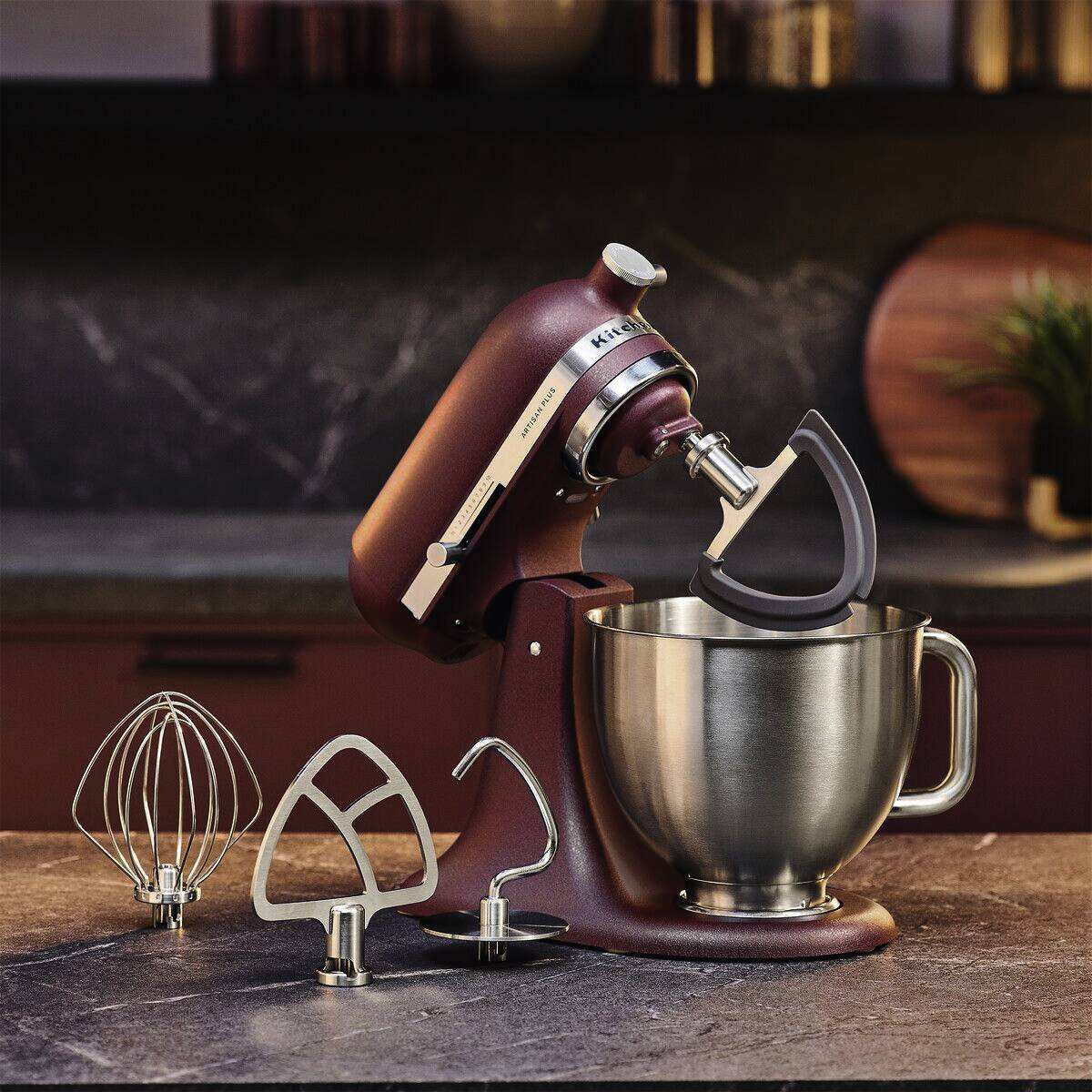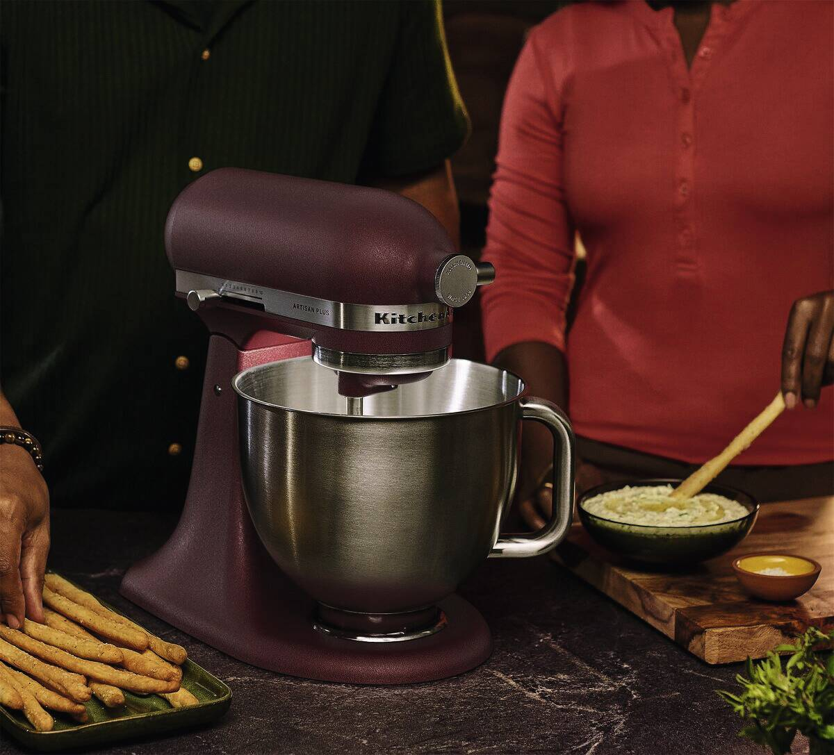 Setzen Sie Ihre Rezepte perfekt in Szene Sie werden die Artisan Plus lieben – die erste Küchenmaschine von KitchenAid mit integrierter Schüsselbeleuchtung. Beobachten Sie, was passiert, während Sie mischen und sehen Sie, wie Ihre Kreationen Gestalt annehmen. Wechseln Sie im Handumdrehen zwischen Geschwindigkeitsstufen mit der präzisen Geschwindigkeitseinstellung, um die ideale Textur zu erhalten. Das tägliche Kochen wird zum Kinderspiel – von Stampfkartoffeln bis hin zu zerkleinertem Hähnchenfleisch und cremiger Guacamole. Entdecken Sie, wie jedes Detail der Artisan Plus Ihnen noch mehr Möglichkeiten in der Küche gibt. Entwickelt für perfekte Ergebnisse Die Artisan Plus Küchenmaschine wurde entwickelt, um dank ihres leistungsstarken Motors auch feste und schwere Teige mit Leichtigkeit zu bewältigen. Aber sie glänzt nicht nur mit ihrer starken Leistung. Wie alle unsere Küchenmaschinen verfügt auch sie über das Planetenrührwerk von KitchenAid. Das bedeutet, dass sich die Zubehörnabe in eine Richtung dreht und das Zubehörteil in die andere Richtung. Dadurch wird sichergestellt, dass die Zutaten gleichmäßig vermischt werden und nichts übrig bleibt. Da der Rührer mindestens 59 Berührungspunkte in der gesamten Schüssel erreicht, erhalten Sie jedes Mal eine gründliche, gleichmäßige Mischung. Finden Sie die passende Geschwindigkeit Wählen Sie schnell und zuverlässig aus elf voreingestellten Geschwindigkeitsstufen oder drehen Sie den praktischen Regler, um die präzise Geschwindigkeitseinstellung zu aktivieren. Mit dieser Funktion können Sie mühelos zwischen den Stufen wechseln, sodass Sie genau die Geschwindigkeit wählen können, die Sie für Ihr Rezept benötigen. Vom Aufschlagen von Sahne bis hin zum Kneten von Teig – Sie erhalten jedes Mal die ideale Konsistenz – ohne Rätselraten, sondern durch mühelose Präzision. Sehen Sie Ihre Kreationen in einem ganz neuen Licht Die Artisan Plus Küchenmaschine ist das erste Modell von KitchenAid mit integrierter Schüsselbeleuchtung, damit Sie jedes Detail Ihres Rezepts sehen können. Die integrierte Schüsselbeleuchtung schaltet sich automatisch ein, wenn der Kopf abgesenkt wird oder die Küchenmaschine in Betrieb ist. Sie können sie aber auch mit einer einfachen Drehung des Geschwindigkeitsreglers einschalten, wann immer Sie möchten. Mit der Maschine bleibt kein Stäubchen Mehl zurück und Sie können jederzeit die Textur überprüfen. So sind Klarheit und Sicherheit bei jeder Mischung garantiert. Nichts wird verschwendet Dank der flexiblen Silikonkanten schabt der doppelseitige Flexi-Rührer beim Mischen sanft die Schüssel ab, sodass man dies nicht mehr von Hand tun muss. Es ist ein einfaches Upgrade, das einen großen Unterschied beim täglichen Mischen macht. Robustes Zubehör für jeden Einsatz Jede Artisan Plus Küchenmaschine wird mit einem kompletten Satz Edelstahlzubehör geliefert – einer präzisionsgeschweißten Schüssel, einem doppelseitigen Flexi-Rührer, einem Knethaken, einem Schneebesen und einem Flachrührer. Spülmaschinenfest und für die Verarbeitung anspruchsvoller Mischungen und Ihrer Lieblingsgerichte entwickelt. Sanftes Unterheben, keine Spritzer Bei einigen Rezepten muss man mit etwas mehr Gefühl arbeiten. Deswegen bietet die Artisan Plus eine ½ Geschwindigkeitsstufe – perfekt zum vorsichtigen Mischen leichter, luftiger Zutaten, ohne dass diese an Fluffigkeit verlieren. Und mit Soft Start beginnt die Maschine bei jeder Mischung ganz sanft und erhöht allmählich die Geschwindigkeit, damit Mehl, Zucker und Kakao dort bleiben, wo sie hingehören – in der Schüssel. Noch mehr Möglichkeiten Die Artisan Plus Küchenmaschine ist ein Kraftpaket, das weit mehr kann als nur Backen, sondern auch beim Zerkleinern, Kneten und vielem mehr besticht. Holen Sie sich optionales Zubehör aus unserem stetig wachsenden Sortiment, und Sie können noch mehr kreieren. Probieren Sie alles von Eiscreme und frischer Pasta bis hin zu geschnittenem Gemüse und zerkleinertem Fleisch. Ikonisches Design, leuchtende Farben Eine KitchenAid Küchenmaschine ist mehr als nur eine Küchenmaschine – sie ist ein Statement und eine Ikone. Die Artisan Plus ist in dezenten neutralen Tönen und knallig-hellen Farben erhältlich. Jeder Farbton lädt Sie dazu ein, Persönlichkeit und Freude in Ihre Küche zu bringen. Mit den neuen Premium-Farben ist jetzt die perfekte Gelegenheit, um Ihren Stil zum Ausdruck zu bringen. Ihre Küche, Ihre Mischung, Ihr Moment.