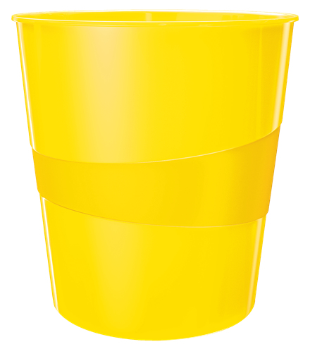 Leitz Papierkorb WOW, 15 Liter; Tragerand zum einfachen Entleerren, stapelbar; Glatte Innenoberfläche für optimale und einfache Reinigung; Material: Polystyren (PS); Format: Durchmesser 290 mm, 324 mm hoch; Farbe: gelb;
