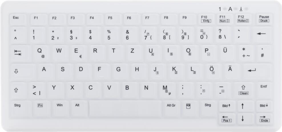 Kurzinfo: Active Key MedicalKey AK-C4110 - Tastatur - USB - Deutsch - weiß Gruppe Tastaturen Hersteller Active Key Hersteller Art. Nr. AK-C4110F-US-W/GE EAN/UPC Produktbeschreibung: Active Key MedicalKey AK-C4110 - Tastatur - Deutsch Gerätetyp Tastatur Schnittstelle USB Layout Deutsch Schutz Wasserdicht, schmutzabweisend, beständig gegen Desinfektionsmittel Farbe Weiß Abmessungen (Breite x Tiefe x Höhe) 29.1 cm x 13.9 cm x 2.5 cm Gewicht 500 g Ausführliche Details Allgemein Gerätetyp Tastatur Schnittstelle USB Eingabegerät Layout Deutsch Tastaturtechnologie Schere Schutz Wasserdicht, schmutzabweisend, beständig gegen Desinfektionsmittel Breite 29.1 cm Tiefe 13.9 cm Höhe 2.5 cm Gewicht 500 g Verschiedenes Farbe Weiß Kennzeichnung IP68 Umgebungsbedingungen Min Betriebstemperatur 0 °C Max. Betriebstemperatur 50 °C