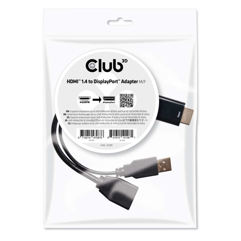 Der Club 3D HDMI-auf-DisplayPort-Adapter ist die perfekte Lösung, um Ihre Produkte, die einen HDMI-Ausgang haben, wie z.B. Spielekonsolen oder Notebook, mit einem Bildschirm mit DisplayPort-Eingang zu verbinden. Es ist mit einem USB-A-Port ausgestattet, um Strom zu liefern, falls die HDMI-Quelle nicht genug Strom hat. Der CAC-2330 Adapter bietet eine plug-and-play Installation, verbunden mit einem mühelosen Setup ohne Software oder Treiber, die installiert werden müssten.rnrn