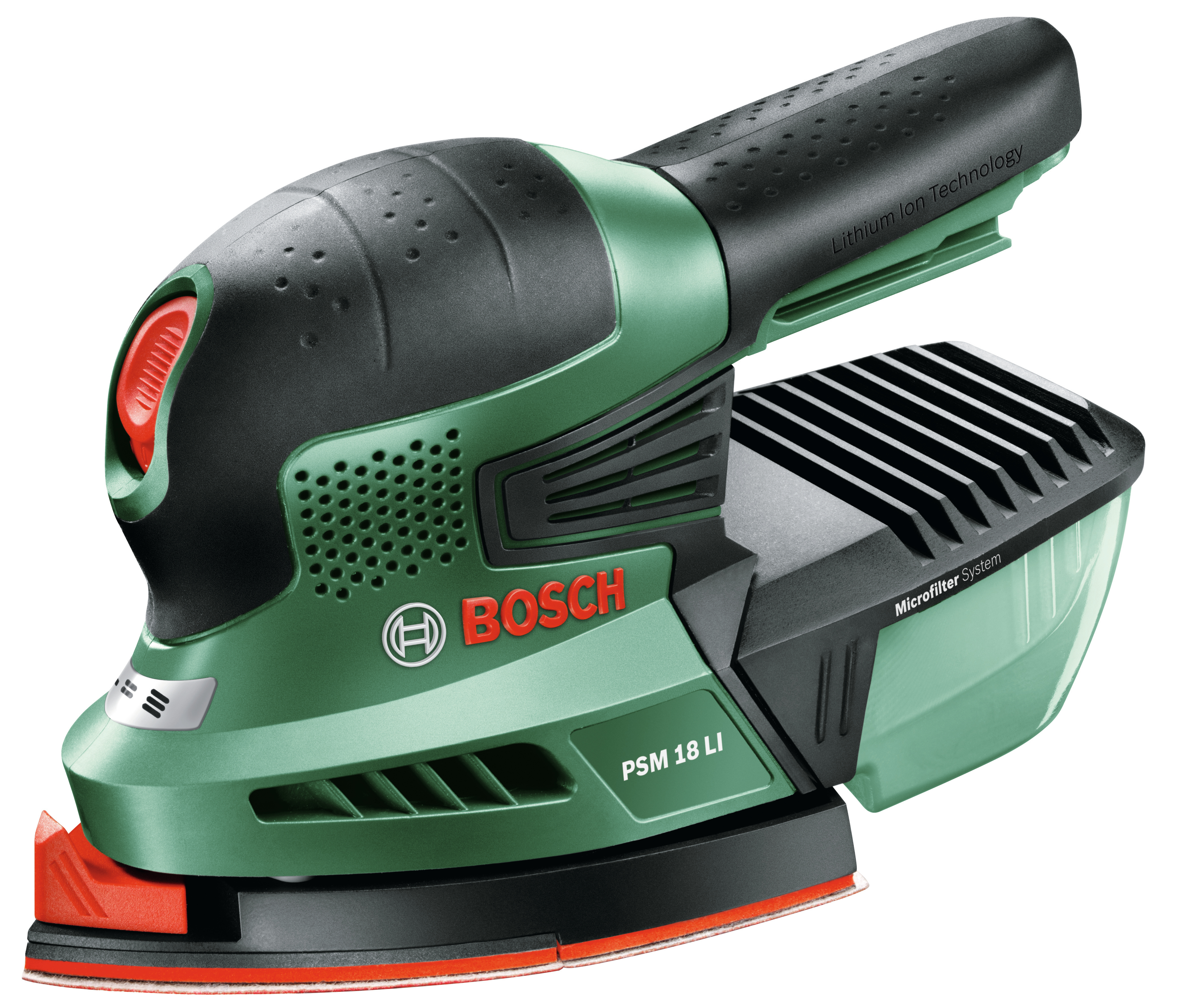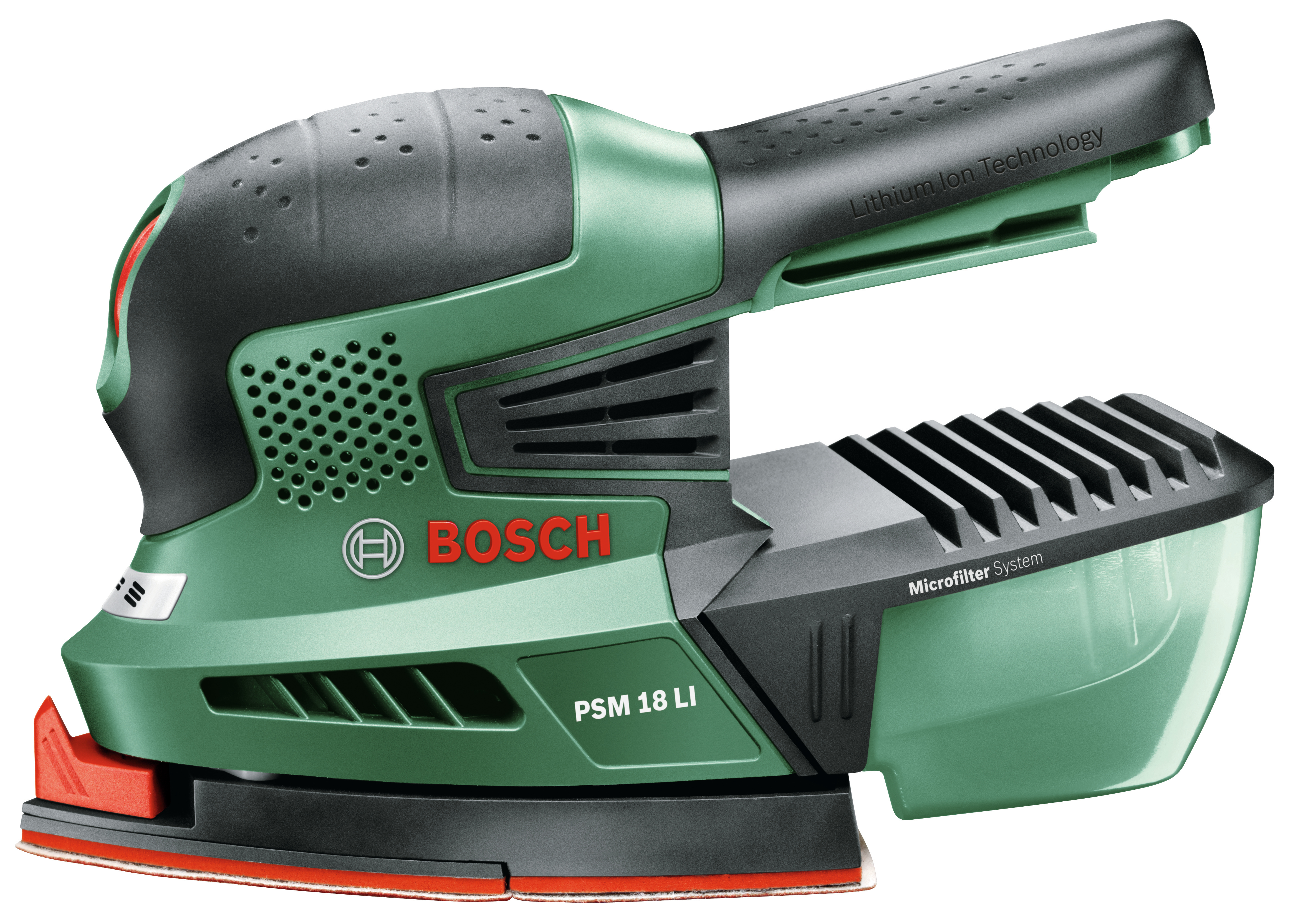 Akku-Multischleifer PSM 18 LI solo im Karton ohne Akku Akku-Multischleifer PSM 18 LI. Leistungsstarkes, kompaktes Schleifmultitalent mit kabelloser Freiheit. Leistungsstarker Alleskönner für Ecken, Kanten und mittelgroße flache Oberflächen. Einfacher und schneller Schleifvorsatzwechsel durch SDS-System. Microfilter Systembox reduziert Staub für einen sauberen Arbeitsbereich. Klettverschlusssystem ermöglicht einfache Schleifpapierwechsel, Geeignet zum Schleifen von Hartholz, Weichholz, lackierten oder gestrichenen Oberflächen, Stein und Metall, Power für ALL: Ein Akku und ein Ladegerät für das komplette Home & Garden-Gerätesystem, Syneon Chip steuert den Energieverbrauch – für optimale Effizienz und längere Laufzeit. Akku und Ladegerät nicht im Lieferumfang enthalten. Solo Version, 3 Schleifblätter K 80, K 120, K 160 (2 609 000 178). - Schwingungsemissionswert ah []: 7,0 m/s², - Schleifmittelbefestigung: Microklett, - Schwingzahl: 22.000 min-1, - Softgrip: Ja, - Schwingkreisdurchmesser: 1,6 mm, - Länge: 28,1 cm, - Gewicht: 1,155 kg, - Akkuspannung: 18,0 V, - Akkukapazität: 1,5 Ah, - Micro-Filtersystem: Ja, - Micro-Klettverschluss: Nein, - Breite: 15,4 cm, - Höhe: 14,2 cm Bosch-Akkumultischleifer PSM 18 LI, 3 Schleifblätter (Red Wood) P80, P120, P160