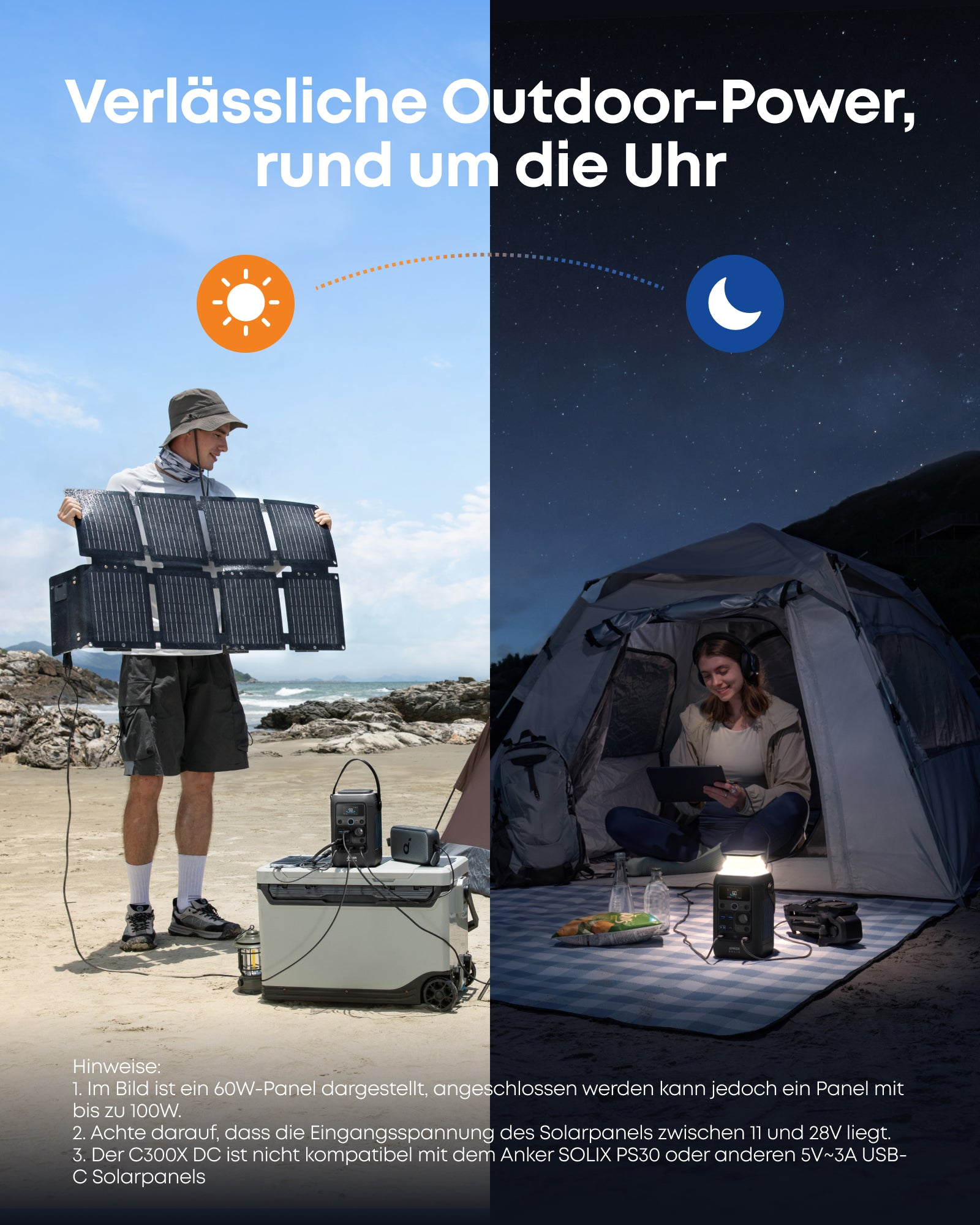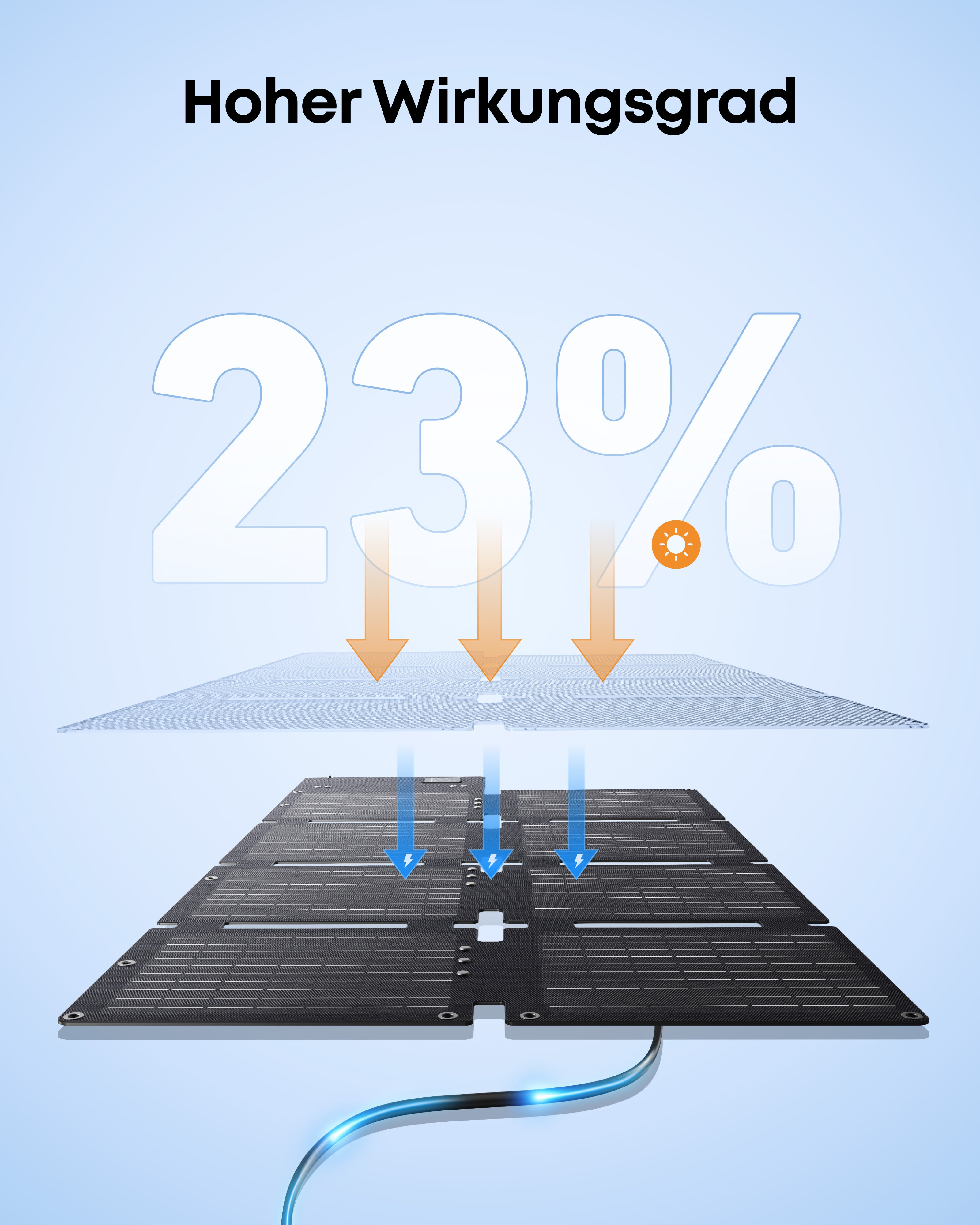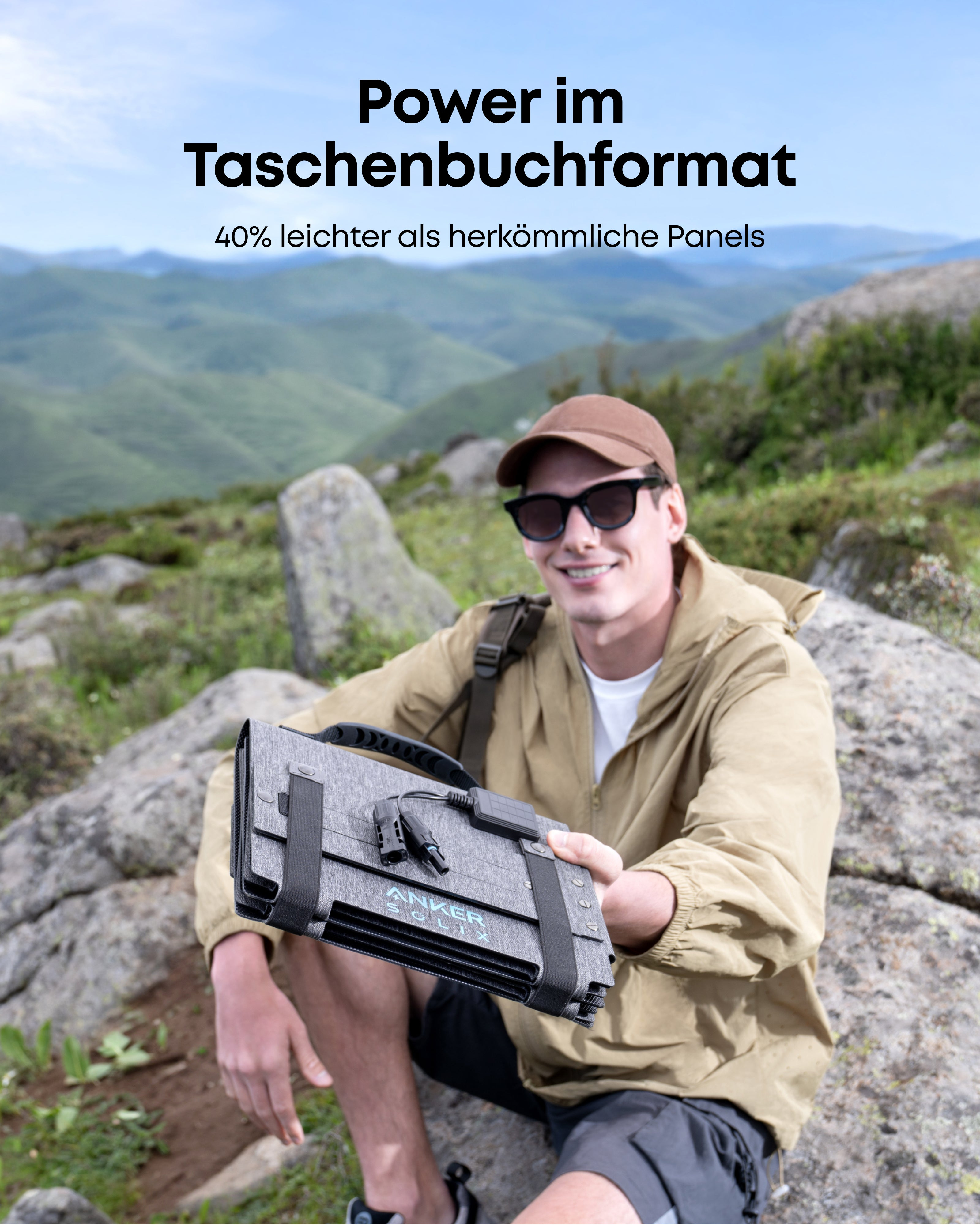 Das ultraleichte 60-W-Solarpanel wiegt nur 1,77 kg und ist rund 40 % leichter als vergleichbare Modelle. Es lässt sich auf A4-Größe zusammenfalten und ist ideal für unterwegs. Mit IP68-Schutz ist es wasser- und staubdicht, das robuste Material bietet hohe Biege- und Abriebfestigkeit. Die Ausgangsleistung beträgt 60 W (16 V, 3,75 A), kompatibel mit Powerstations mit MC4-Eingang (11–60 V). Entfaltet misst es 1033 x 551 x 17 mm, gefaltet 232 x 266 x 64 mm. Features: Ultraleichtes, faltbares Design für einfache Tragbarkeit Wasser- und staubdicht dank IP68-Schutzart Robustes Material mit hoher Biege- und Abriebfestigkeit Leistung von 60 W, ausreichend für viele Anwendungen Kompatibel mit MC4-Eingängen der meisten Powerstations Technische Daten: Ausgangsleistung: 60 W Spannung/Strom: 16 V = 3,75 A Anschluss: MC4 Kompatibilität: Powerstations mit MC4-Eingang (11–60 V) Schutzart: Ip68 (wasser- und staubdicht) Materialeigenschaften: Hohe Biege- und Abriebfestigkeit Maße gefaltet: 232 x 266 x 64 mm (dünnste Stelle: 35 mm) Maße entfaltet: 1033 x 551 x 17 mm Gewicht: 1,77 kg (3,9 lb) Besonderheiten: Ultraleicht, faltbar auf A4-Format, robustes Design Lieferumfang: 1x Solarpanel https://www.pollin.de/documents/Antrag_Umsatzsteuerbefreiung_nachtraeglich.pdf