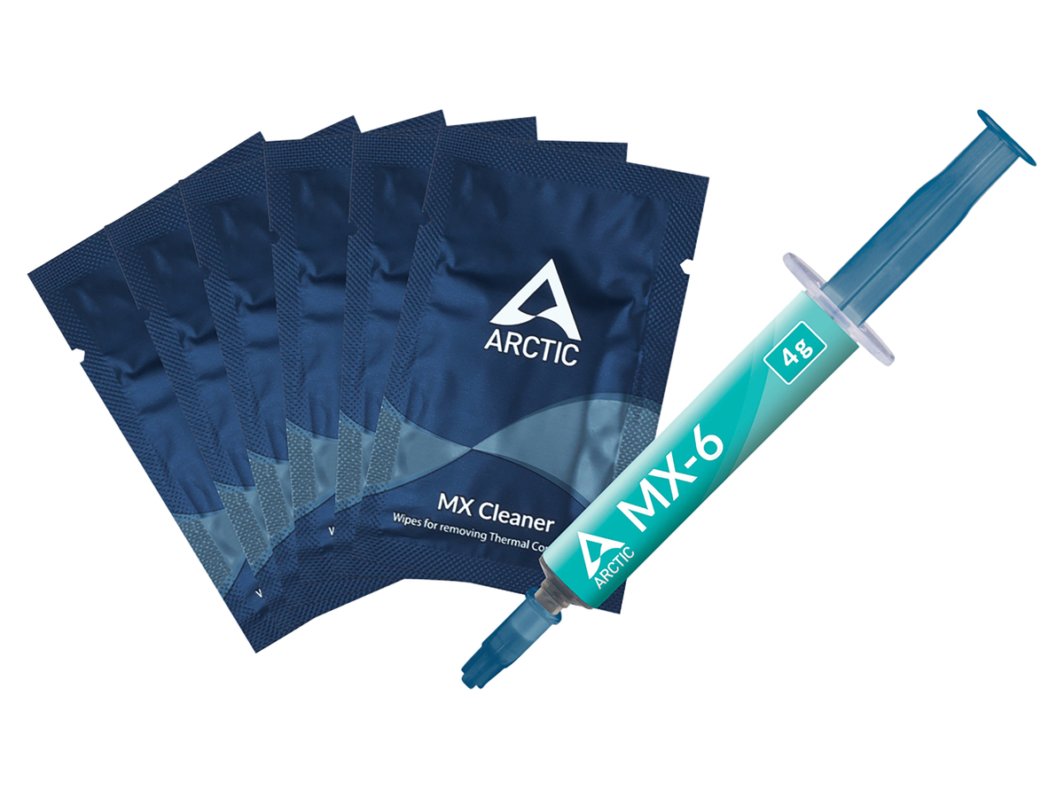 Die ARCTIC MX-6 ist in Verpackungsgrößen von 2 bis 8 Gramm erhältlich. Wiederverschließbare Spritzen verhindern ein Eintrocknen der Paste und erleichtern das Dosieren. Alternativ sind die Varianten mit MX Cleaner erhältlich. Diese ermöglichen eine einfache und rückstandsfreie Reinigung der Kontaktflächen. Der Reiniger besteht zu 100 % aus Limonene, einem Naturstoff, der aus ätherischem Zitrusöl gewonnen wird und ist vollständig biologisch abbaubar.