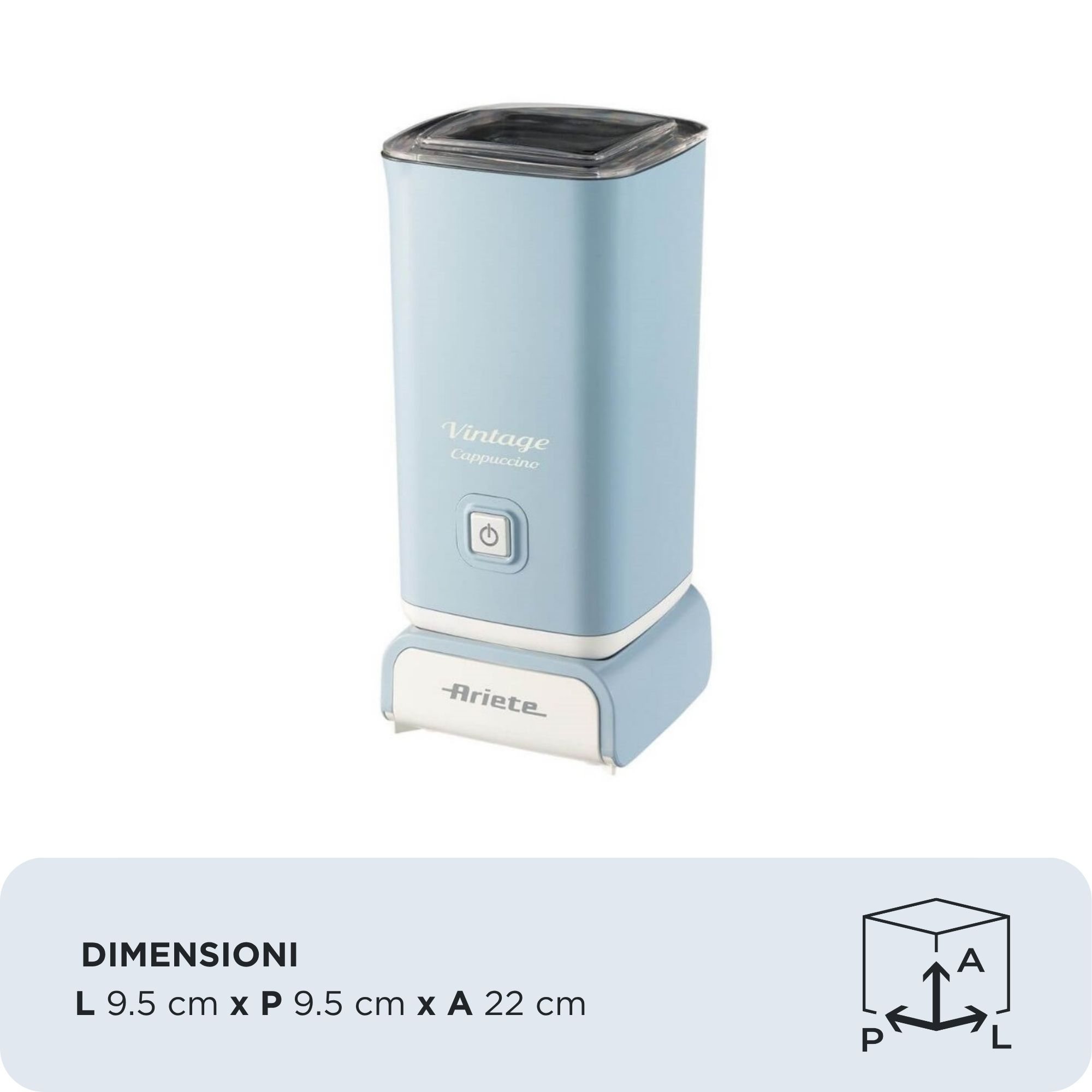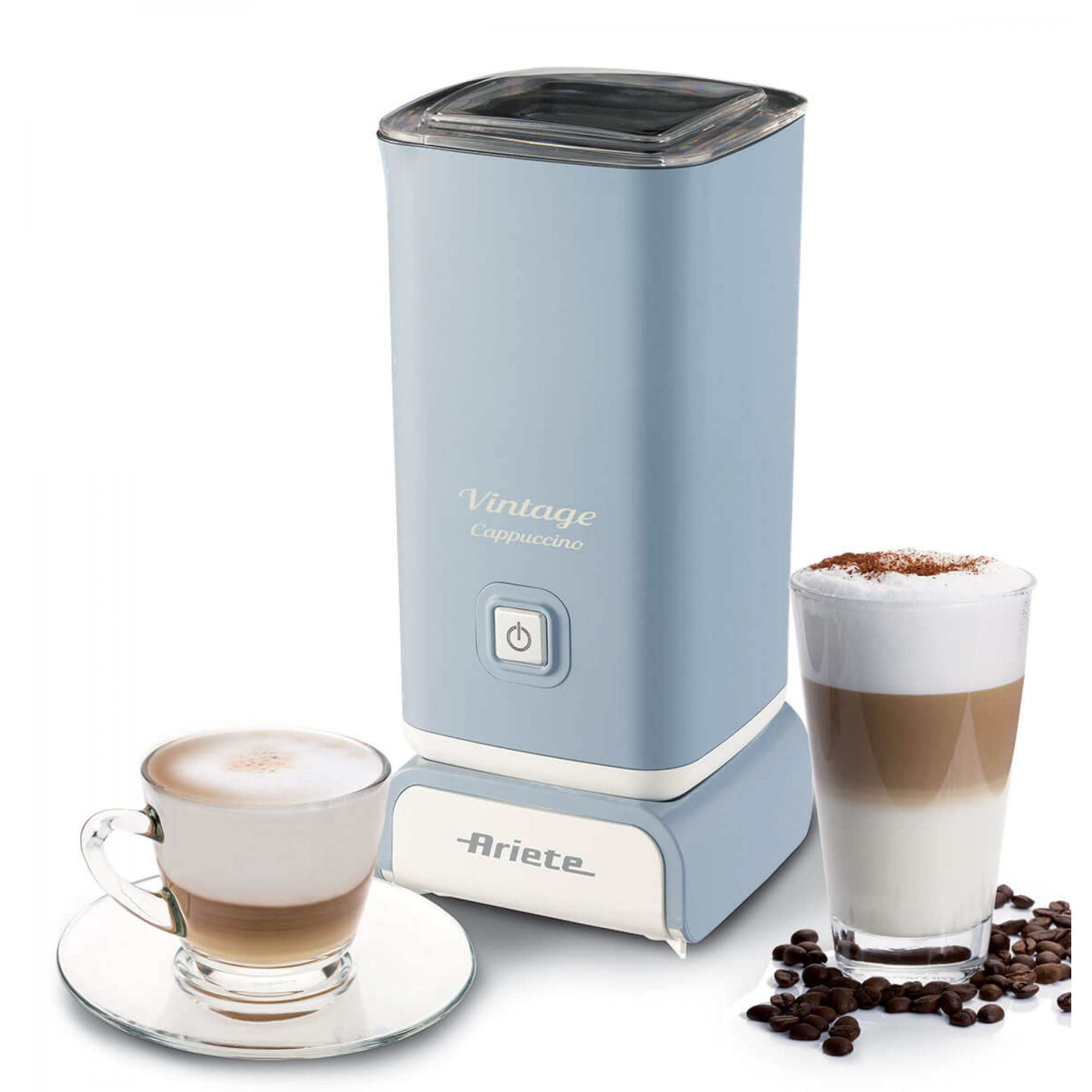 Das richtige Extra für Kaffeegetränke, heiße Schokolade und Co.: der Ariete Vintage Milchaufschäumer blauKaffeespezialitäten wie aus Ihrem Lieblingscafé – mit dem Ariete Vintage Milchaufschäumer blau können Sie sich diesen Luxus ganz einfach nach Hause holen und heiße oder kalte Kaffeegetränke ganz nach Wunsch und Geschmack genießen.Leistungsstark für optimale ResultateWas passt noch besser in einen schönen Latte Macchiato als aufgeschäumte Milch? Genau, warme aufgeschäumte Milch. Daher lässt sich bei diesem Produkt die Milch nicht nur aufschäumen, sondern auch erhitzen. Für einen schnellen und zugleich perfekt erzeugten Milchschaum verfügt das Exemplar über eine Leistungsaufnahme von 500 W.Gefertigt aus Metall, KunststoffDie Kombination aus Metall und Kunststoff sorgt dafür, dass dieses Gerät nicht nur besonders strapazierfähig, sondern auch pflegeleicht ist. Zugleich ist es durch den Kunststoffanteil leicht zu handhaben.Mit AbschaltautomatikDamit Ihnen eine mühevolle Reinigung erspart wird, ist das Modell mit einer Antihaftversiegelung ausgestattet. Diese Oberfläche verhindert, dass die heiße Milch eine hartnäckige Kruste hinterlässt. Die automatische Abschaltung verhindert zudem etwaige Schäden oder Verletzungen und sorgt für eine sichere Nutzung.Das Modell entspricht Ihren Anforderungen?Bestellen können Sie den Ariete Vintage Milchaufschäumer blau bequem hier bei uns online.