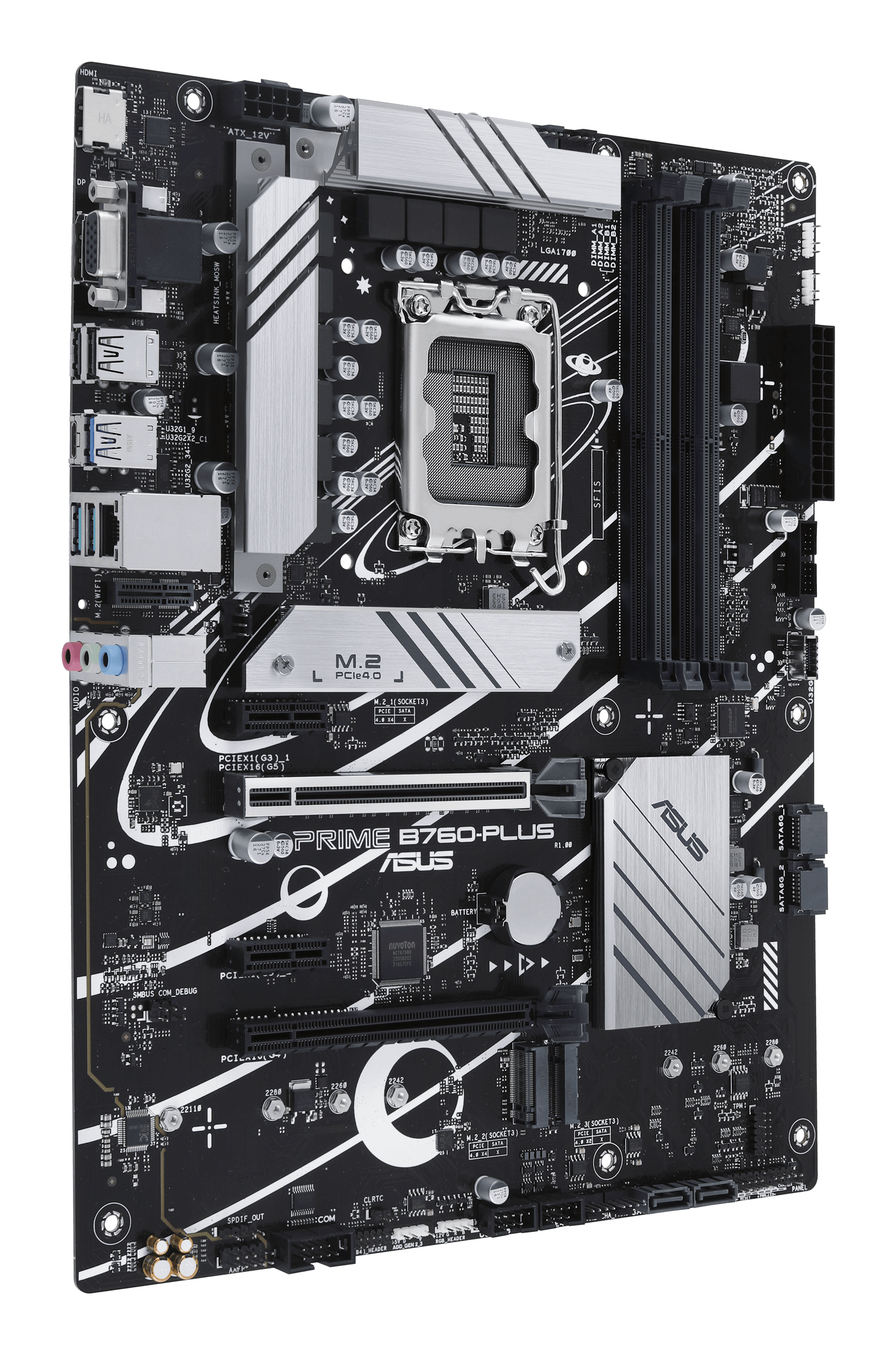 Das PRIME B760-PLUS bietet insgesamt drei M.2-Steckplätze, die Datenübertragungsgeschwindigkeiten von bis zu 64 Gbit/s über PCIe® 4.0 unterstützen und so schnellere Boot- und Ladezeiten für Betriebssysteme oder Anwendungen ermöglichen.