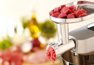 Fleischwolf Größe Nr. 8 für Innereien, Fisch, Gemüse und Fleisch. Widerstandsfähige Metallschnecke, durch die sich schnell alle Arten von Fleisch und Fisch perfekt drehen und zerkleinern sowie Gemüse- oder Geflügelterrinen herstellen lassen. Inkl. 3 Lochscheiben aus Stahl für alle Zubereitungsarten: fein: 3 mm, mittel: 4,5 mm, grob: 8 mm. Hochwertiges 4-Flügel Messer. Einfach zu zerlegen. Einfüllschale aus Metall mit Abdeckhaube. Mit 2 Wurstfüllrohren (12 + 20 mm) und 1 Kebbe-Vorsatz. Sehr praktischer Stopfer, in dem man Zubehörteile aufbewahren kann. Kunststoffschlüssel.