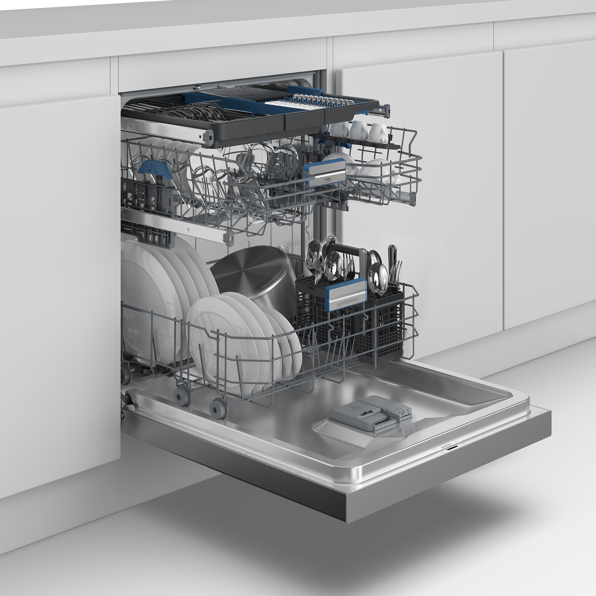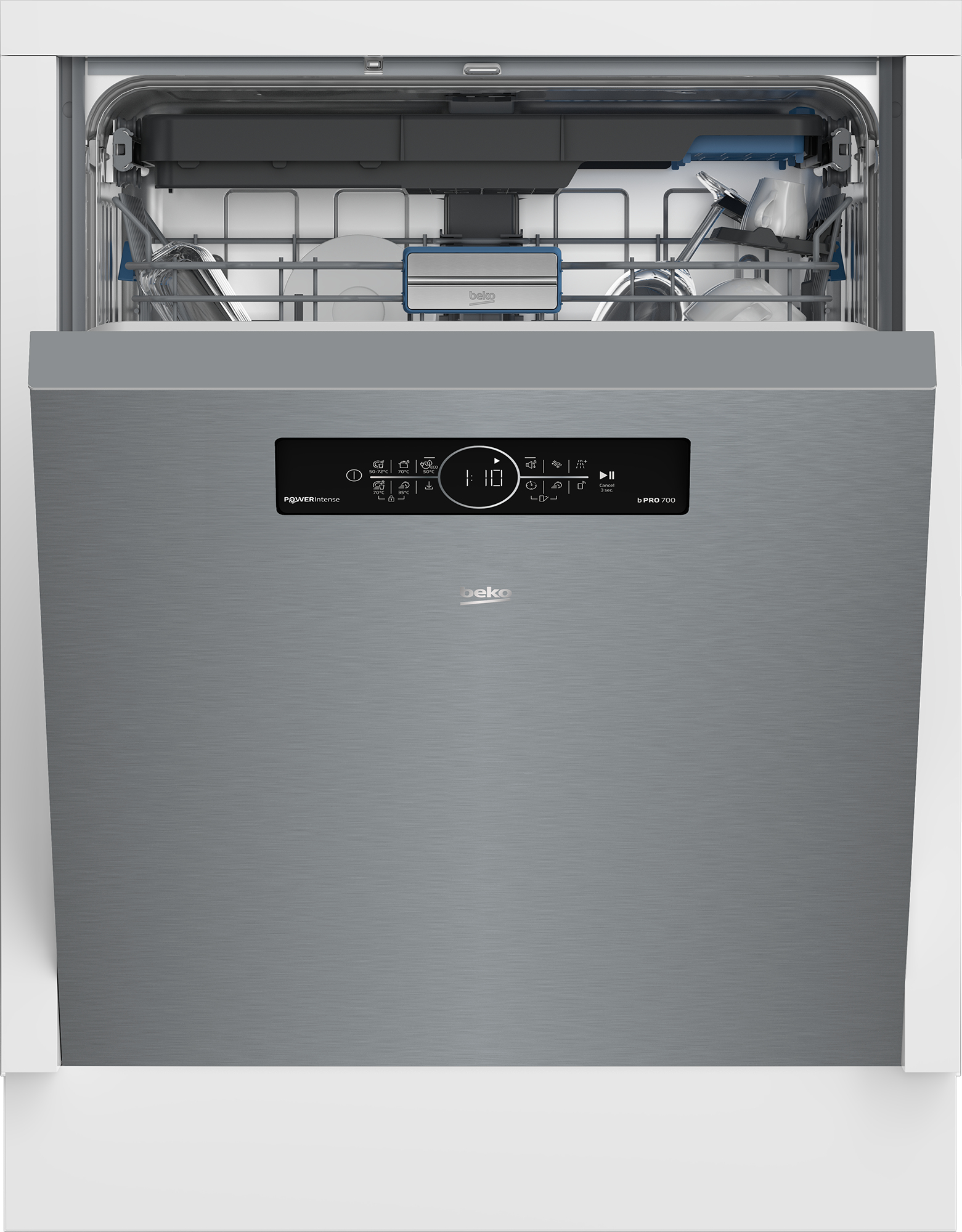 Geschirrspüler Beko BDDN36462XP Beko bietet mit dem Modell BDDN36462XP einen Unterbau-Geschirrspüler (60 cm). Außerordentlich leise ist der Beko BDDN36462XP mit einer Betriebslautstärke von 38 dB. Mit einer Kapazität von 14 Standardgedecken eignet sich das Gerät für 3 bis 4 Personen. Auf das richtige Programm kommt es an Zur Verfügung stehen bei diesem Geschirrspüler 11 Programme. Sparen Sie Ressourcen und damit Kosten mit dem 1/2 Beladungsmenge-Spar-Programm. Das Kurz-Programm und das Schnell-Programm verschaffen Zeitersparnis bei kaum verschmutztem Geschirr. Stark verschmutztes Geschirr, das eine intensivere Reinigung nötig hat, bekommt diese dank dem Intensiv-Programm. Der Beko BDDN36462XP bietet zudem das Nacht-Programm. Das geeignetste Programm für die Teller, Tassen und Töpfe nutzen Sie mit dem Automatik-Programm. Die Höchsttemperatur bei den Programmen beträgt 70 Grad. Der Unterbau-Geschirrspüler verfügt außerdem über die folgenden Merkmale Das Geschirr wird zuverlässig gereinigt, denn die Spülmaschine besitzt 3 Sprühebenen. Besonders praktisch ist die Höhenverstellbarkeit des Oberkorbs, er lässt sich selbst in befülltem Zustand nach unten oder oben bewegen. Sie möchten einen Unterbau-Geschirrspüler, der so flexibel ist wie Sie? In diesem Fall ist das Feature Startzeitvorwahl erwähnenswert. Hilfreiche Infos werden Ihnen auf dem Display angezeigt. Im Hinblick auf die Effizienz ist die Energieeffizienzklasse A zu erwähnen. Die Kindersicherung verhindert böse Überraschungen. Unsere Kaufempfehlung Was Sie suchen, ist ein Geschirrspüler, der eine Besteckschublade besitzt und über eine Kindersicherung verfügt? Mit dem Beko BDDN36462XP machen Sie alles richtig.