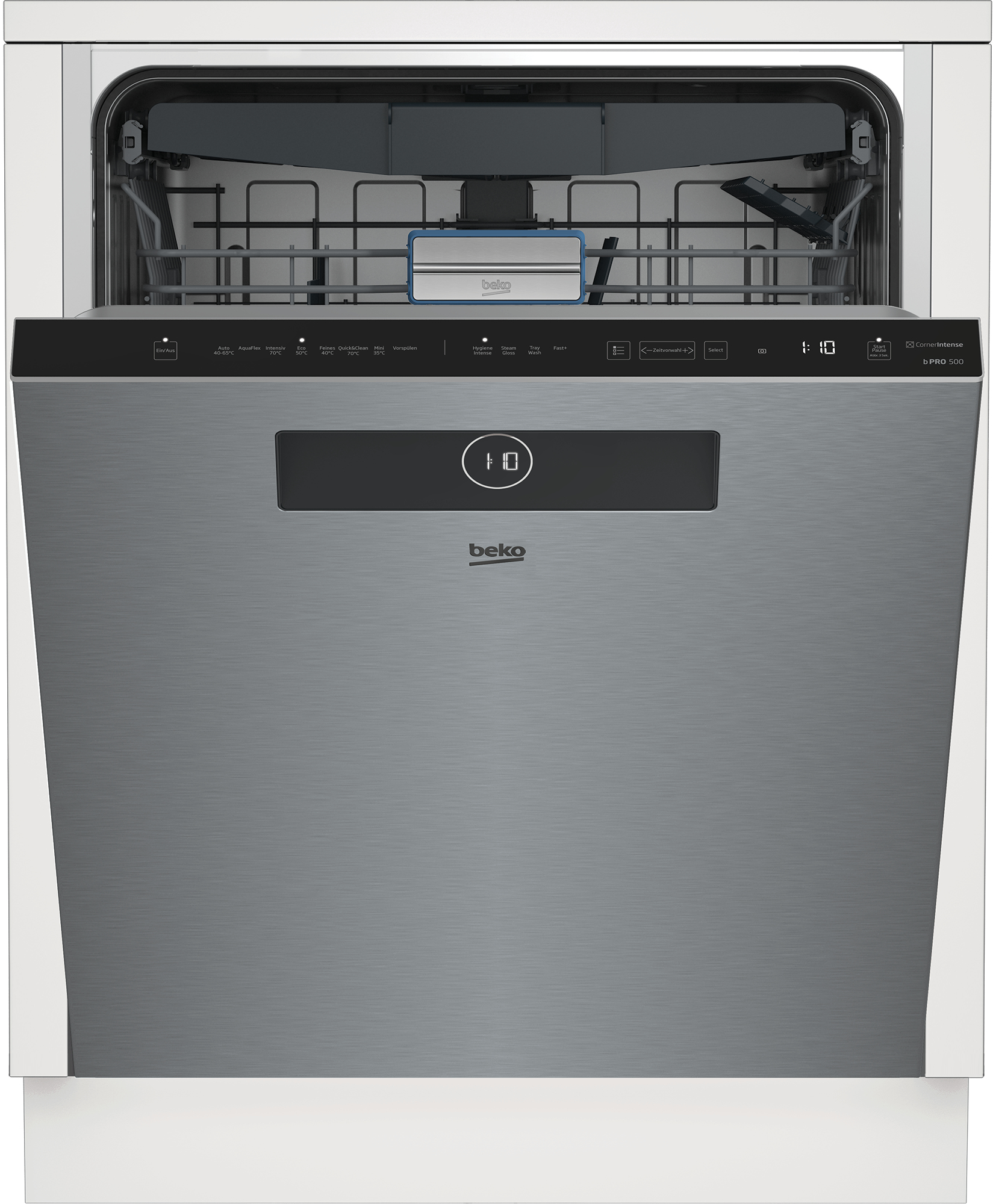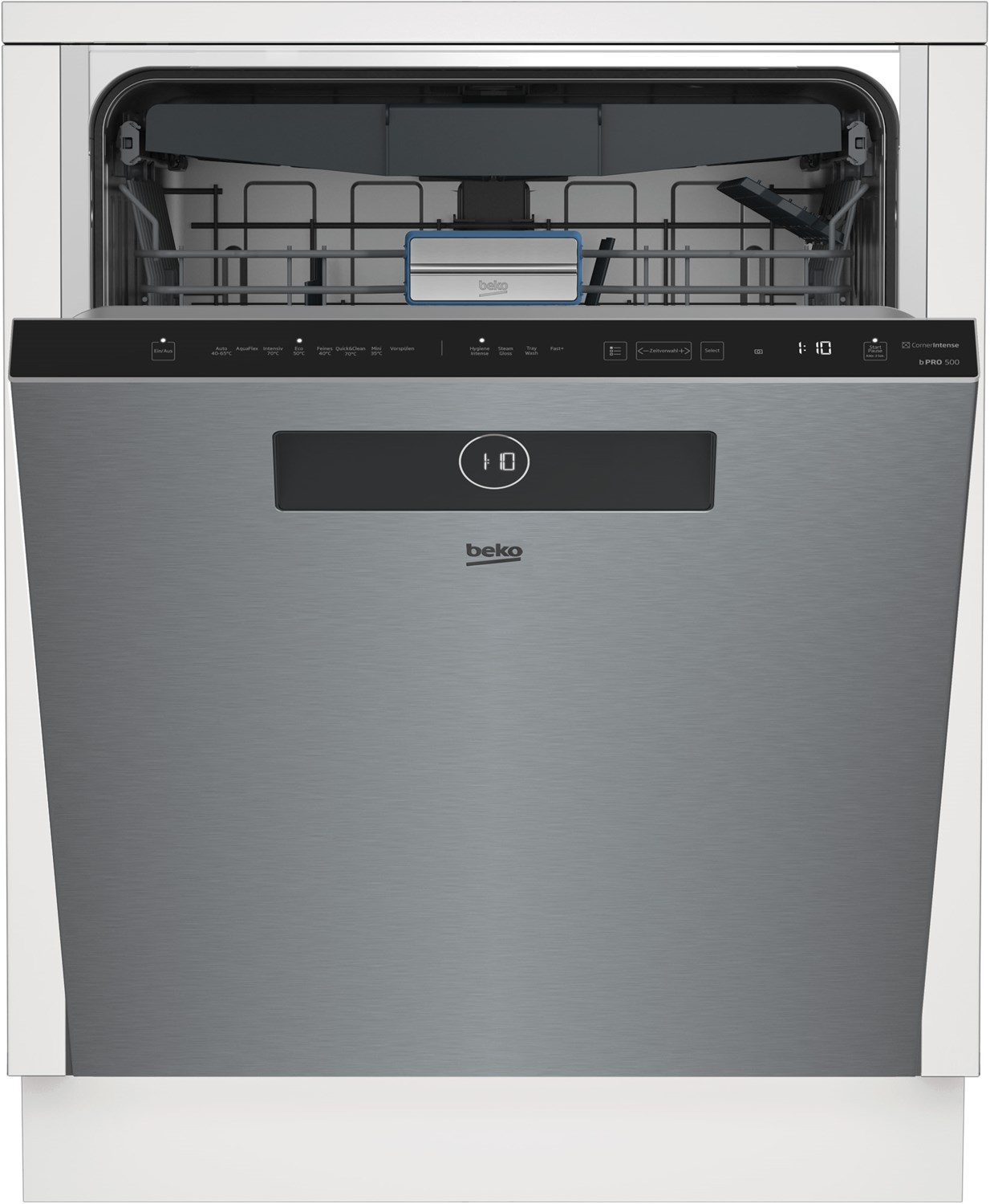 Beko-Geschirrspülmaschine BDDN38561XC Beko bietet mit dem Modell BDDN38561XC einen Unterbau-Geschirrspüler (60 cm). Außerordentlich leise arbeitet die Beko BDDN38561XC mit einer Betriebslautstärke von 42 dB. Wenn Sie in einem 3- oder 4-Personen-Haushalt leben, hat dieses Gerät mit einer Kapazität von 14 Standardgedecken die richtige Größe. Funktionen und Programme Alles in allem stellt die Geschirrspülmaschine 8 Programme bereit. Mit den Energiespar-Programmen senken Sie durch den geringeren Ressourcenverbrauch Ihre Kosten. Muss es fix gehen, profitieren Sie vom Kurz-Programm und vom Schnell-Programm. Benötigt Ihr Geschirr aufgrund starker Verschmutzung eine besonders gründliche Reinigung, stellt dies dank des Intensiv-Programms kein Problem dar. Empfindliches Geschirr muss dagegen schonend behandelt werden, dafür ist das Fein-Programm gedacht. Der Nutzen des Hygiene-Programms liegt auf der Hand: Krankheitserreger werden verlässlich bekämpft, somit eignet es sich bestens für Babyfläschchen. Die Beko BDDN38561XC bietet zudem das Vorspül-Programm. Ist es Ihnen zu anstrengend, sich über das richtige Programm Gedanken zu machen, fahren Sie gut mit dem Automatik-Programm. Der Wasserverbrauch passt sich an den Verschmutzungsgrad an. Weitere Merkmale des Unterbau-Geschirrspülers (60 cm) Teller, Besteck und Tassen finden dank des klappbaren Tellereinsatzes, der Besteckschublade, der Gläserhalter und 2 Tassenauflagen alle den richtigen Platz. Das Geschirr wird zuverlässig gereinigt, denn die Spülmaschine besitzt 3 Sprühebenen. Wenn Sie hohe Töpfe haben, ist der nach unten und oben verstellbare Oberkorb von Vorteil – dies ist selbst in befülltem Zustand möglich. Die eingebaute Wasserenthärtung sorgt für glänzende Gläser. Sie möchten einen Unterbau-Geschirrspüler, der so flexibel ist wie Sie? Dann ist das Feature Startzeitvorwahl nennenswert. Wann das Geschirr fertig ist, verrät Ihnen die Restzeitanzeige. Um immer top Ergebnisse zu erhalten, ist die Beko BDDN38561XC mit einer elektrischen Salz-Nachfüllanzeige und mit einer elektrischen Klarspüler-Nachfüllanzeige ausgestattet. Zu nennen ist im Bezug auf den Verbrauch die Energieeffizienzklasse A. Der Wasser-Stopp bietet das extra Plus an Sicherheit. Unsere Kaufempfehlung Was Sie suchen, ist ein Geschirrspüler, der mit seiner Besteckschublade Löffel, Messer und Gabeln richtig sauber bekommt und über eine Wasser-Sicherung verfügt? Mit der Beko BDDN38561XC machen Sie alles richtig.