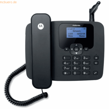 Das Motorola FW410 4G Fixed Wireless Telephone ist die natürliche Wahl für private und geschäftliche Kommunikationsanforderungen. Es eignet sich perfekt für Wohnungen, Büros und andere Bereiche, in denen es keine feste Kommunikationsinfrastruktur gibt, oder für Bewohner und Unternehmen, die ihren Festnetzanschluss abschaffen oder die Anzahl der Festnetzanschlüsse reduzieren möchten.> Highlights- Kabelloses 4G Tischtelefon- Blau beleuchtetes 5,58 cm (2,2 Zoll) Display- Speicherplatz für bis zu 2.000 Namen und Nummern- 12 Klingelmelodien- Kalender, Taschenrechner, UKW Radio, Wecker- Unterstützt 2G, 3G und 4G- Integrierter Wi-Fi-Hotspot (802.11 b/g/n - 2.4GHz)- Senden und empfangen Sie SMS> Produkttyp- Featurephone- ear-Kategorie (ElektroG): relevant, Kategorie 6: kleine Geräte der IT- und TK-Technik, Kleine Geräte der IT- und TK-Technik B2C> Spezifikationen- Gehäusematerial: Kunststoff> Eigenschaften Featurephone- Freisprechfunktion> Telefoneigenschaften- Freisprechfunktion- Anrufbeantworter: Nein- Anzahl Telefonbucheinträge: 2000> Anschlüsse- Micro-USB- Anschluss Hörer: Wendelschnur> Display- Displaydiagonale Zoll: 2.2 -- Displaydiagonale cm: 5.6 cm- Displaytechnologie: LCD- Displayart: monochrom> Stromversorgung- Akkukapazität: 800 mAh- Akku-/Batterie-Technologie: NiMH - Nickel-Metallhydrid- Gesprächszeit: 5 Stunde(n)- Akkutyp: gerätespezifischer Akku- Netzteil: extern- Anzahl Akkus/Batterien: 1- Akkuspannung: 3.6 V- Akku verbaut: mit Gerät verpackt- Standbyzeit: 32 Stunde(n)- Ladezeit: 8 Stunde(n)- Netz, Akku- Energie: 2.88 Wh> Datenübertragung- WLAN- WLAN Standard: IEEE 802.11b - WiFi 1, IEEE 802.11g - WiFi 3, IEEE 802.11n - WiFi 4- WLAN-Frequenzband: 2,4 GHz> Grundeigenschaften- Farbe: Schwarz> Lieferumfang- Motorola FW410L 4G Tischtelefon- Handset- Akkupack- Micro-USB Kabel- Netzteil- Bedienungsanleitung