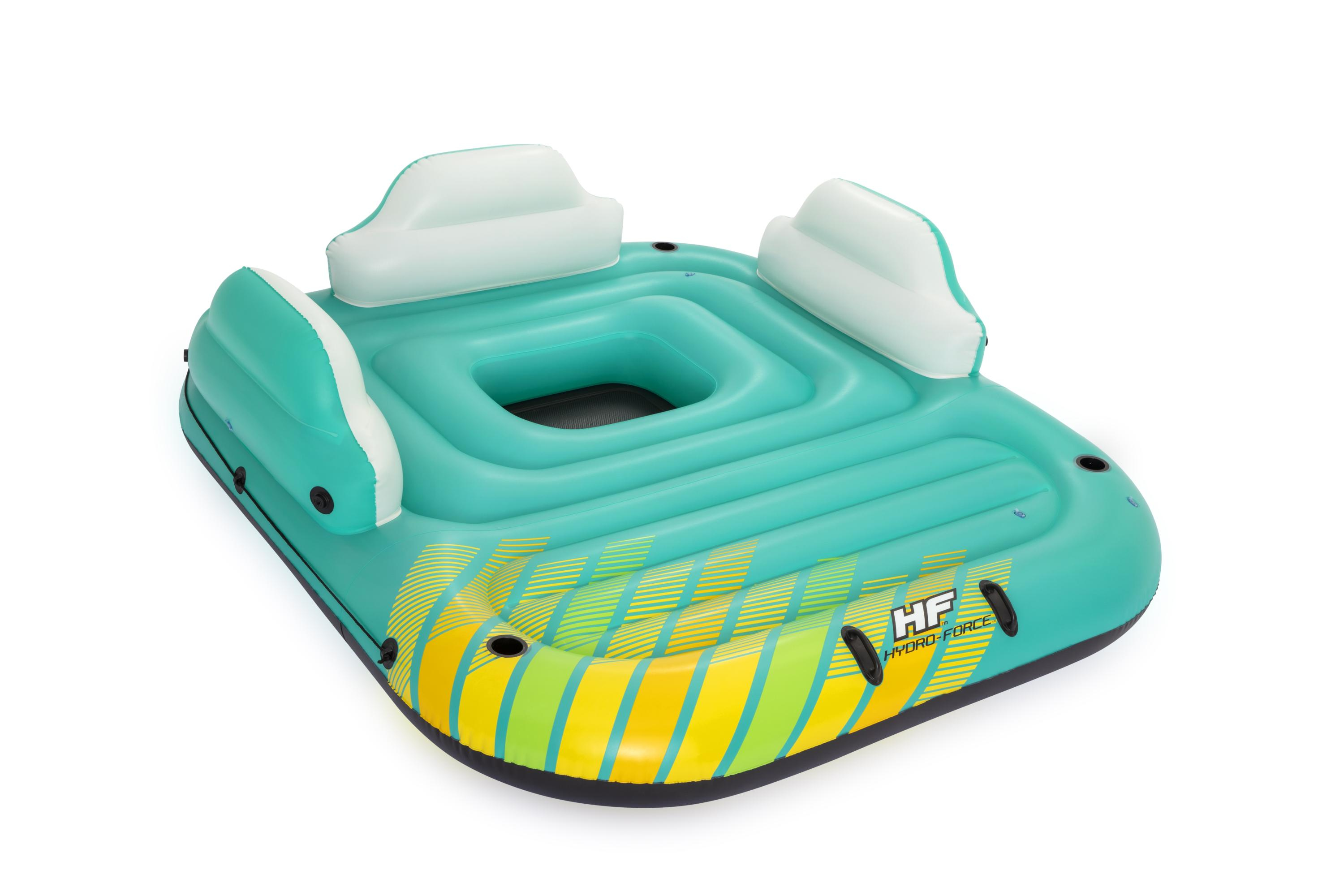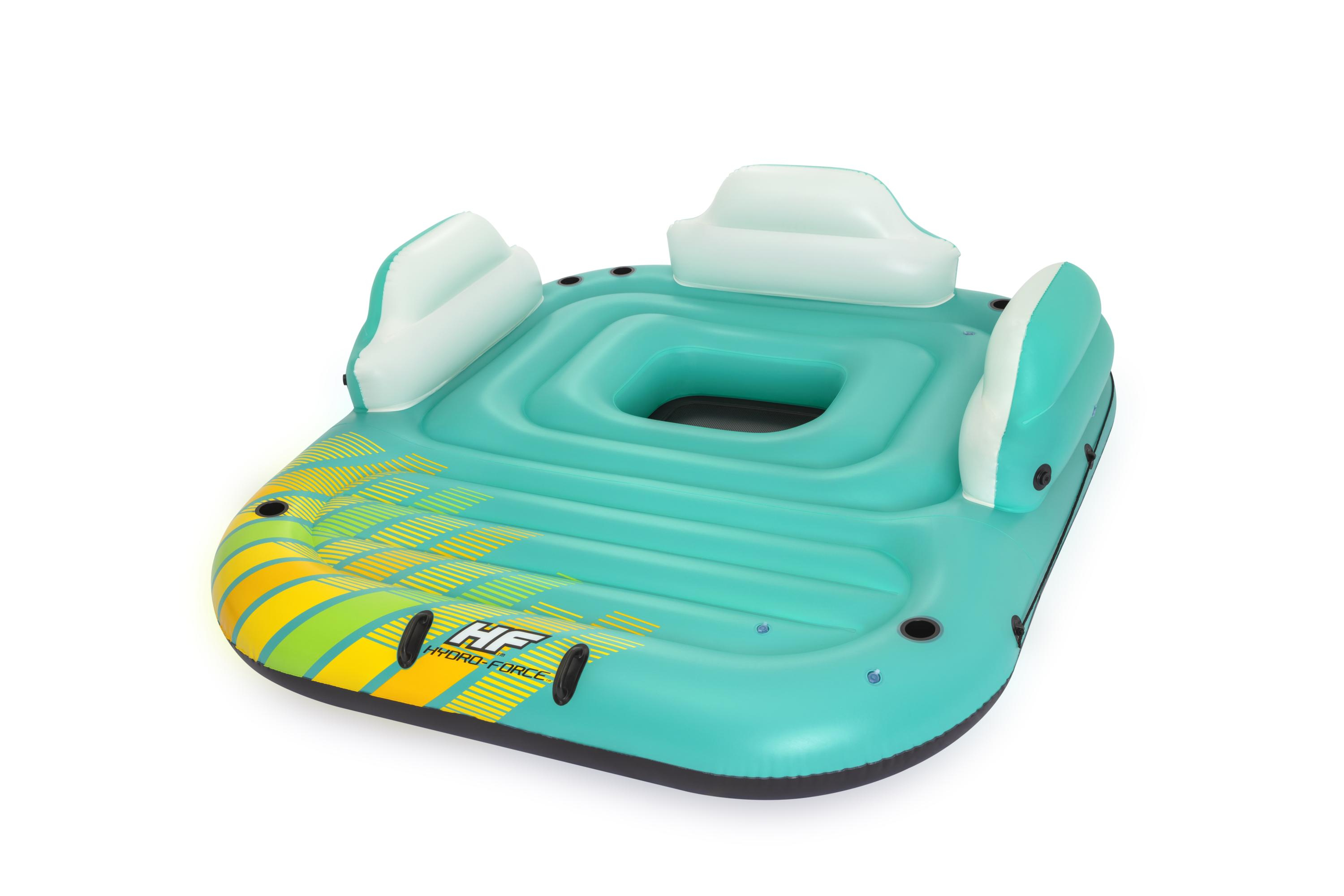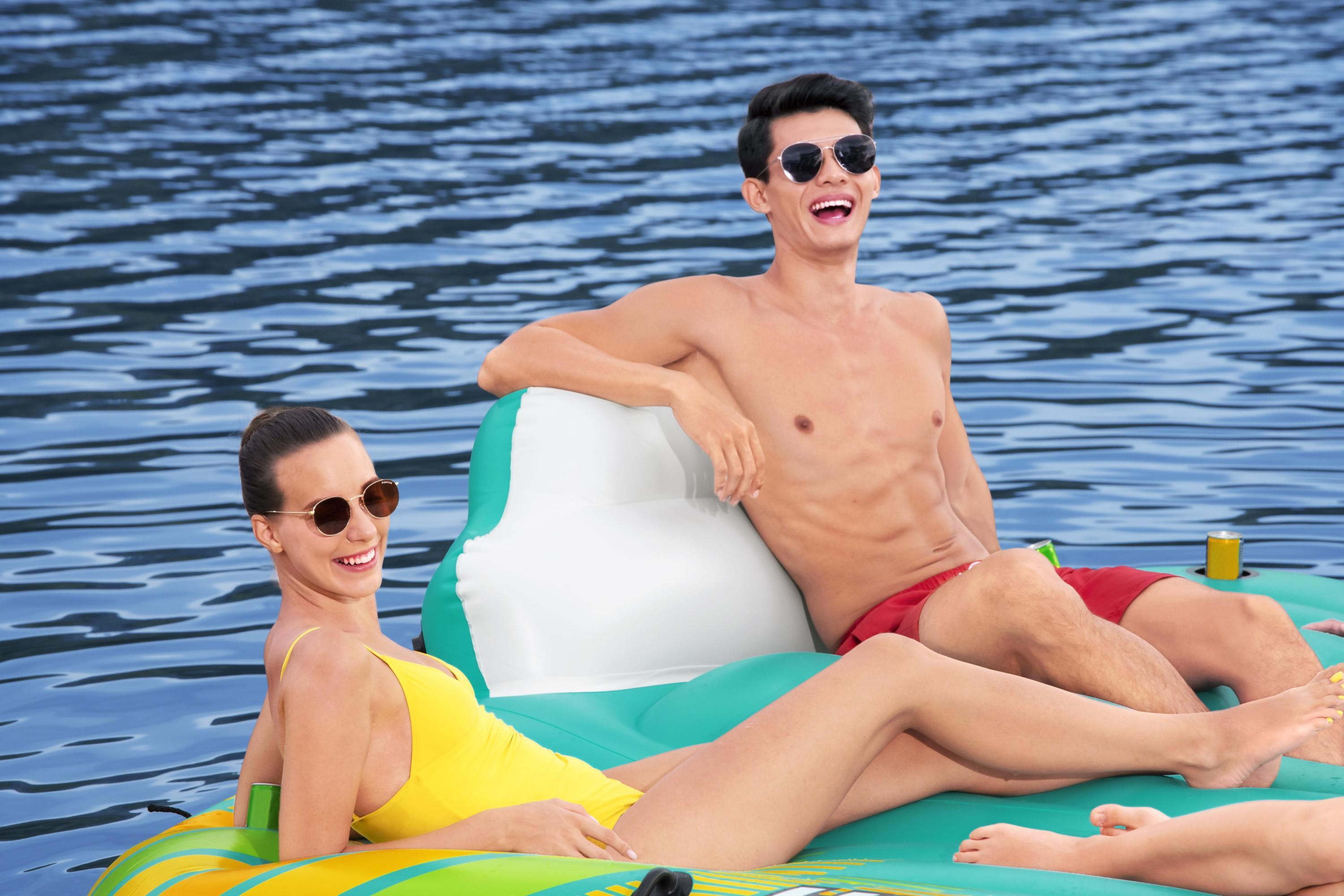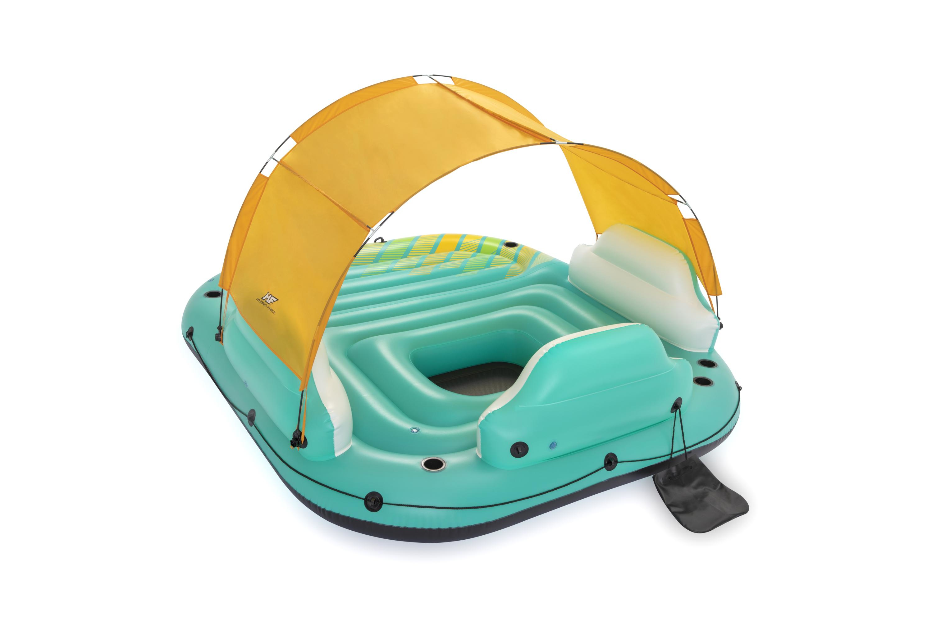 Bestway® Hydro-Force® 5-Personen-Badeinsel Sunny Lounge 300 x 275 cm • Konstruktion: · Größe aufgeblasen: 291 x 265 x 83 cm · Größe unaufgeblasen: 300 x 275 cm · Maximale Belastbarkeit: 450 kg · Aus strapazierfähigem PVC · 6 Luftkammer