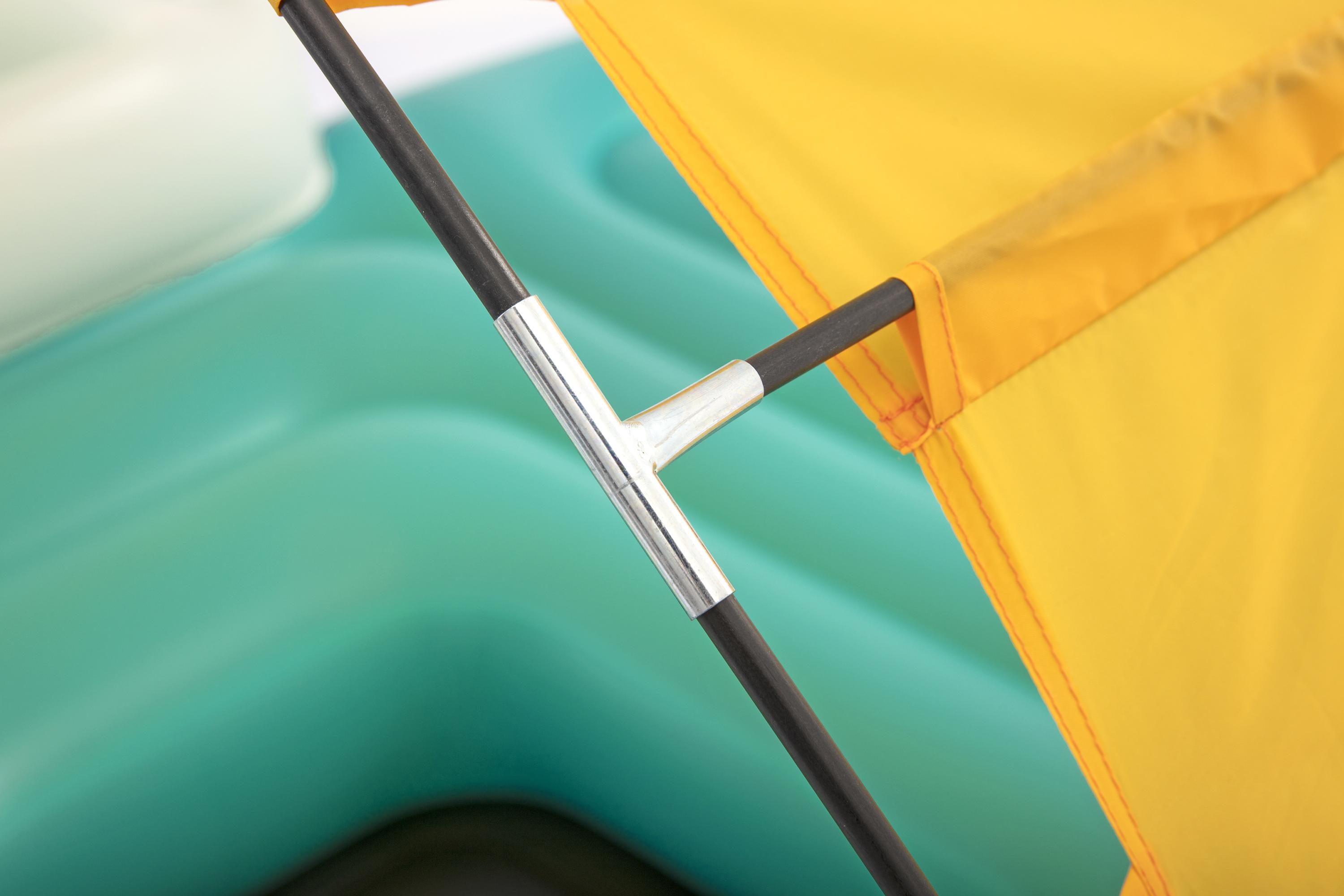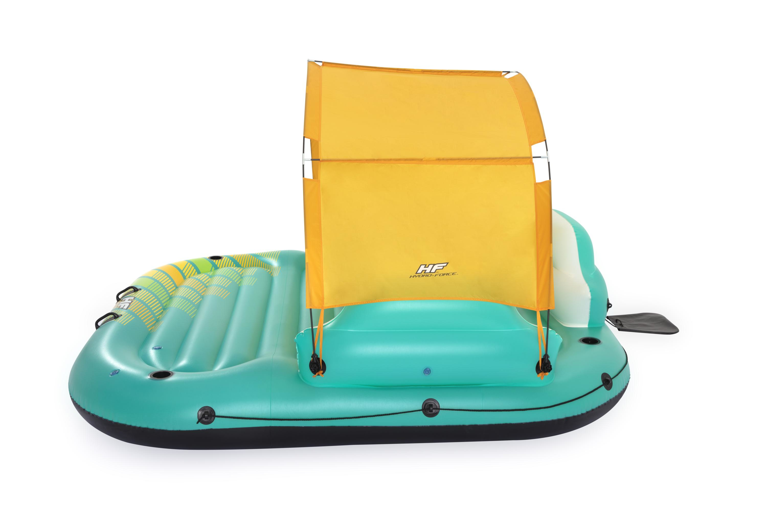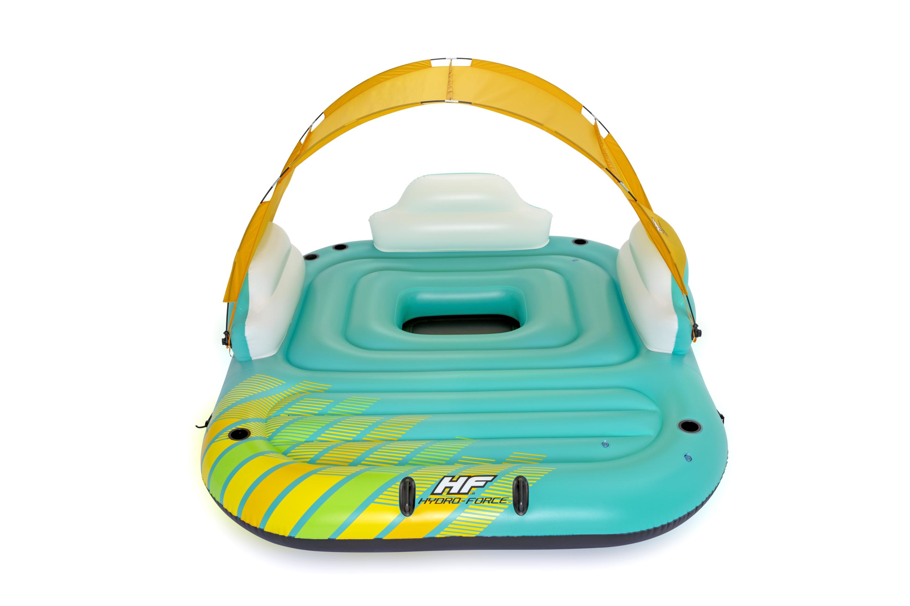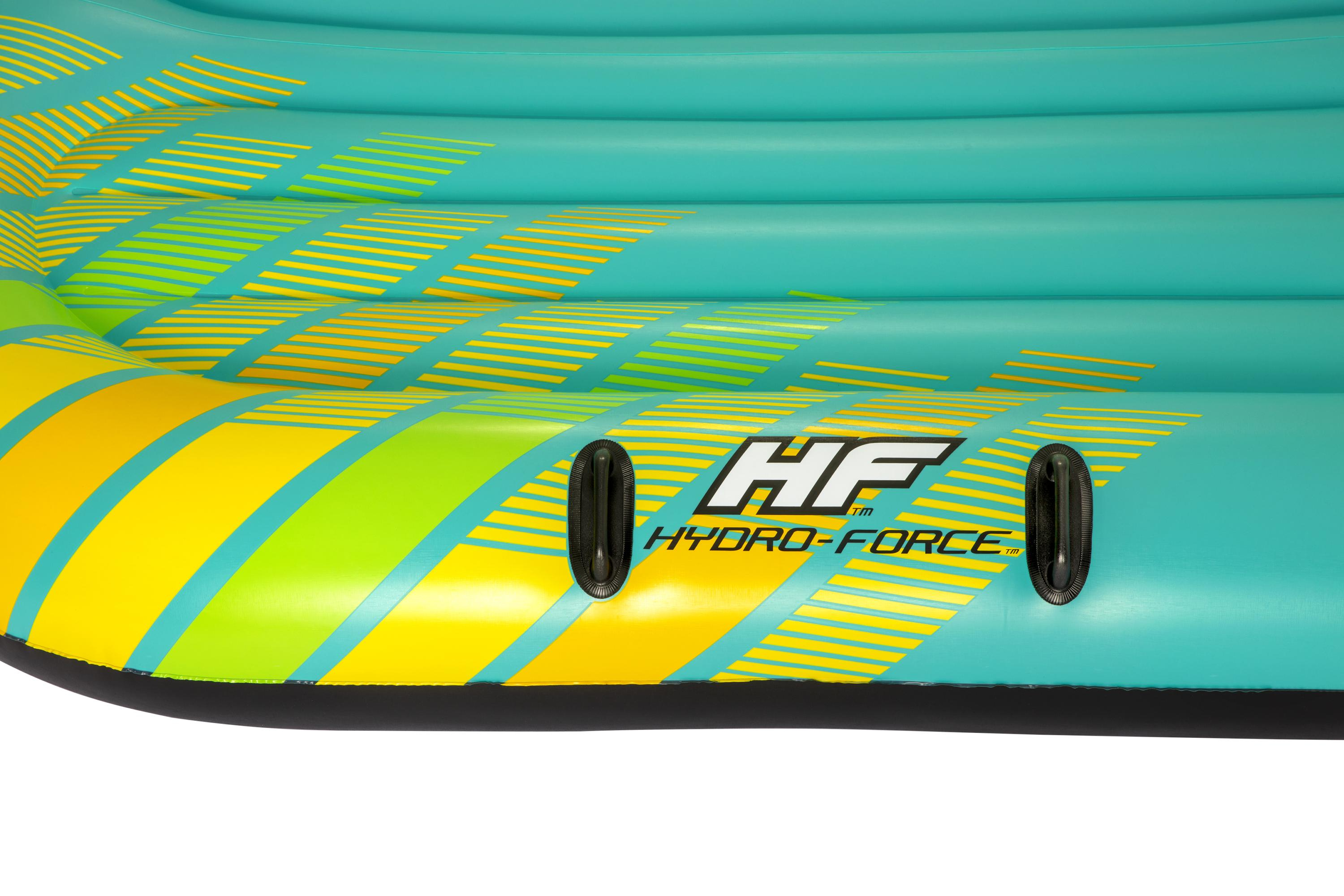 Bestway® Hydro-Force® 5-Personen-Badeinsel Sunny Lounge 300 x 275 cm • Konstruktion: · Größe aufgeblasen: 291 x 265 x 83 cm · Größe unaufgeblasen: 300 x 275 cm · Maximale Belastbarkeit: 450 kg · Aus strapazierfähigem PVC · 6 Luftkammer