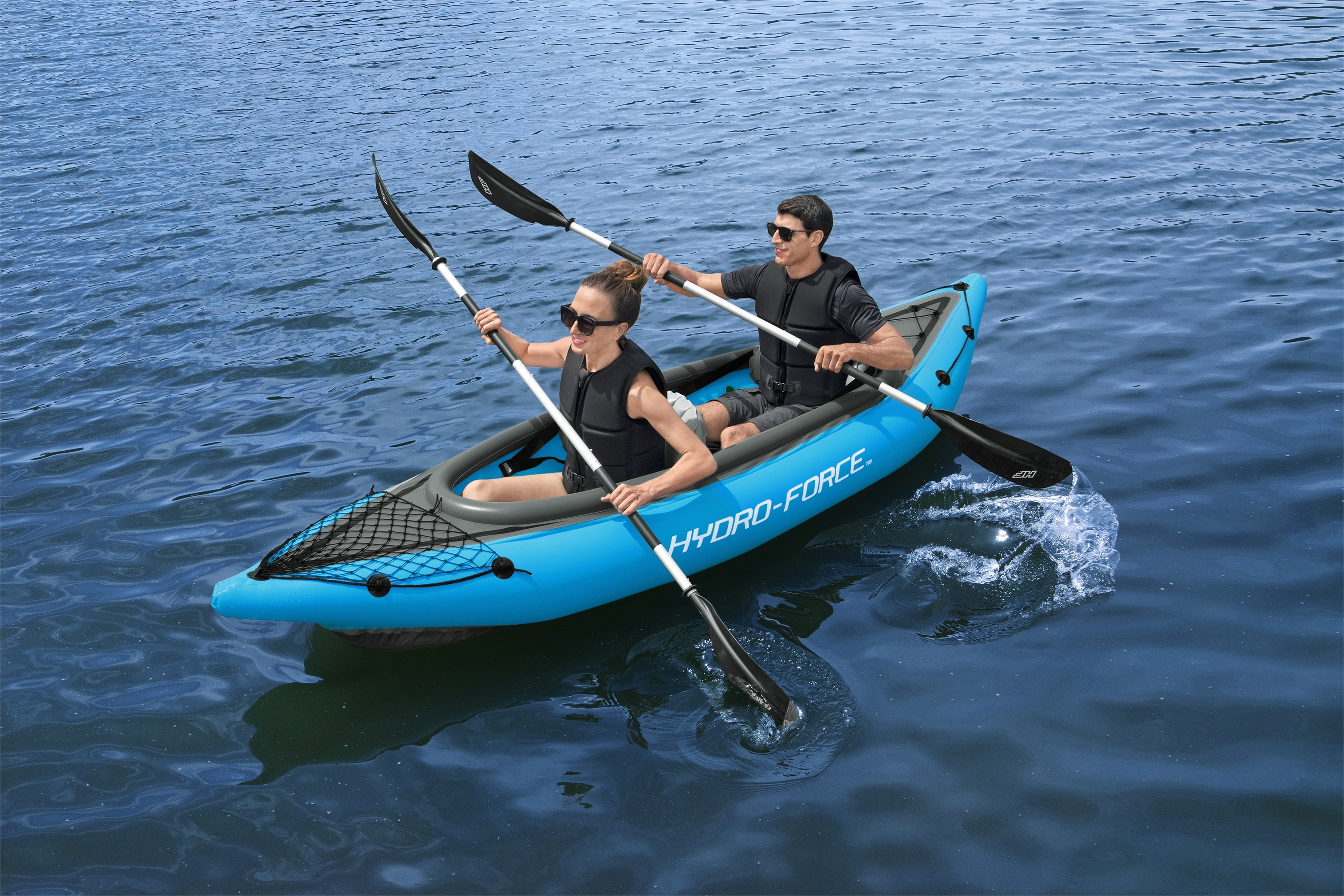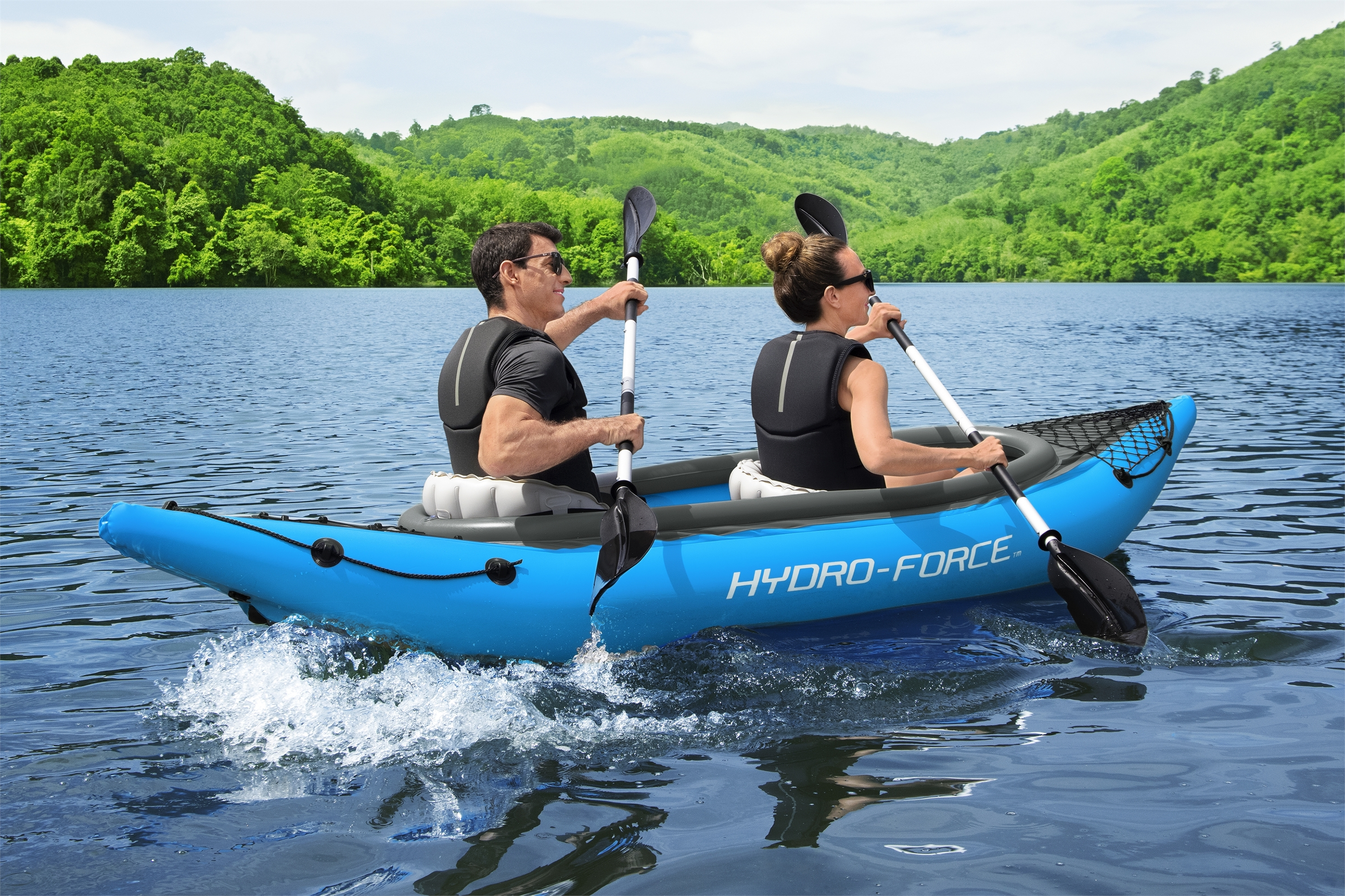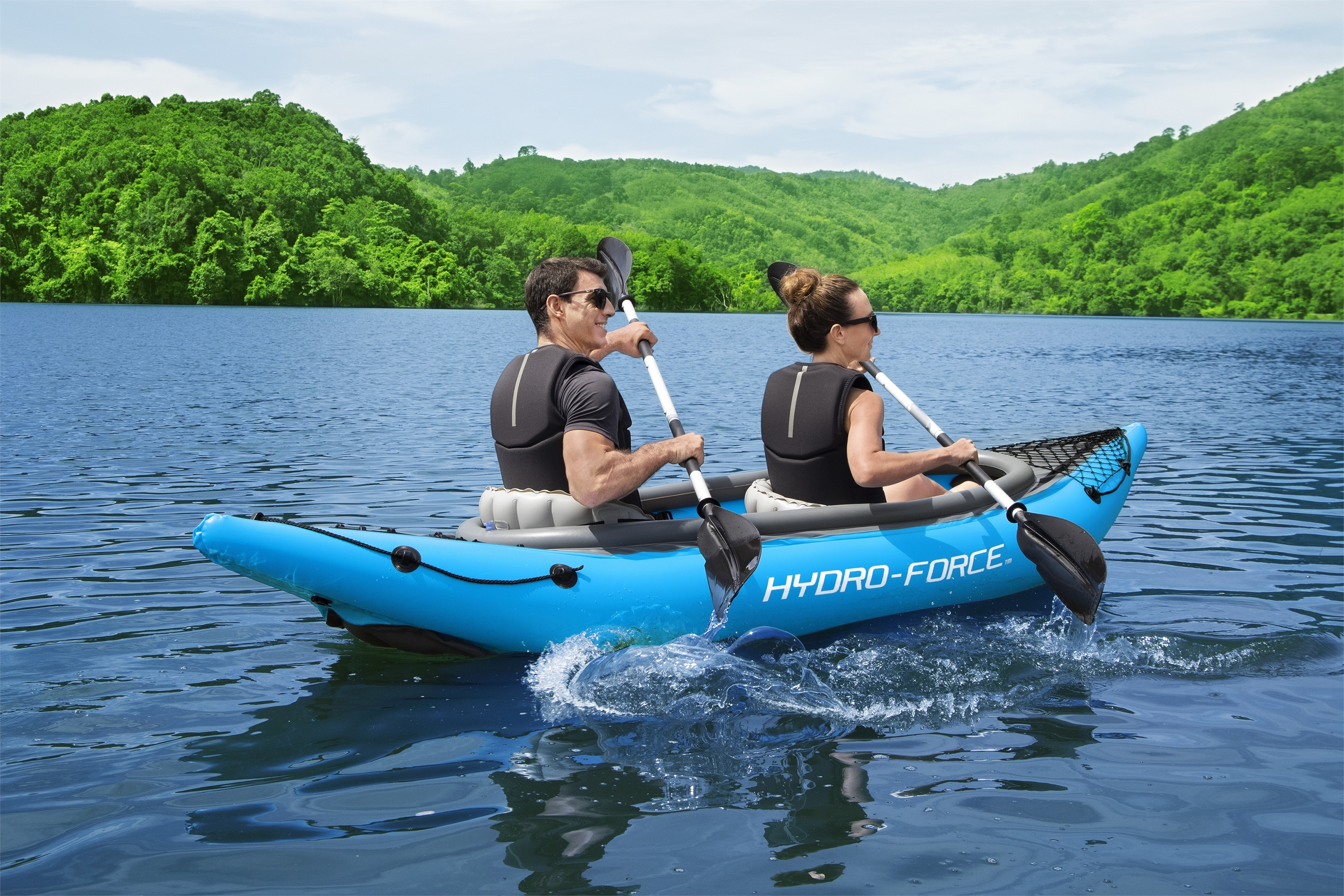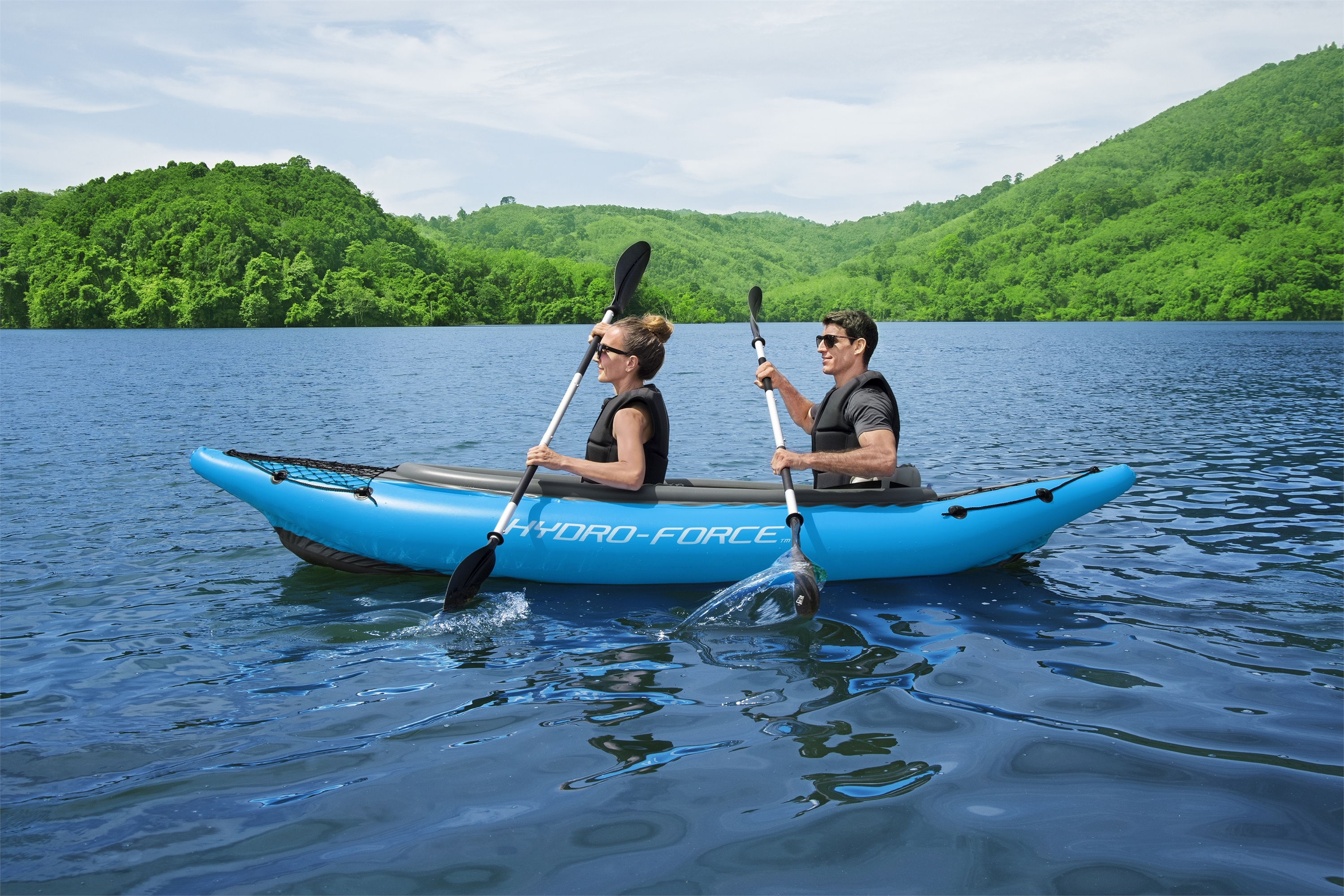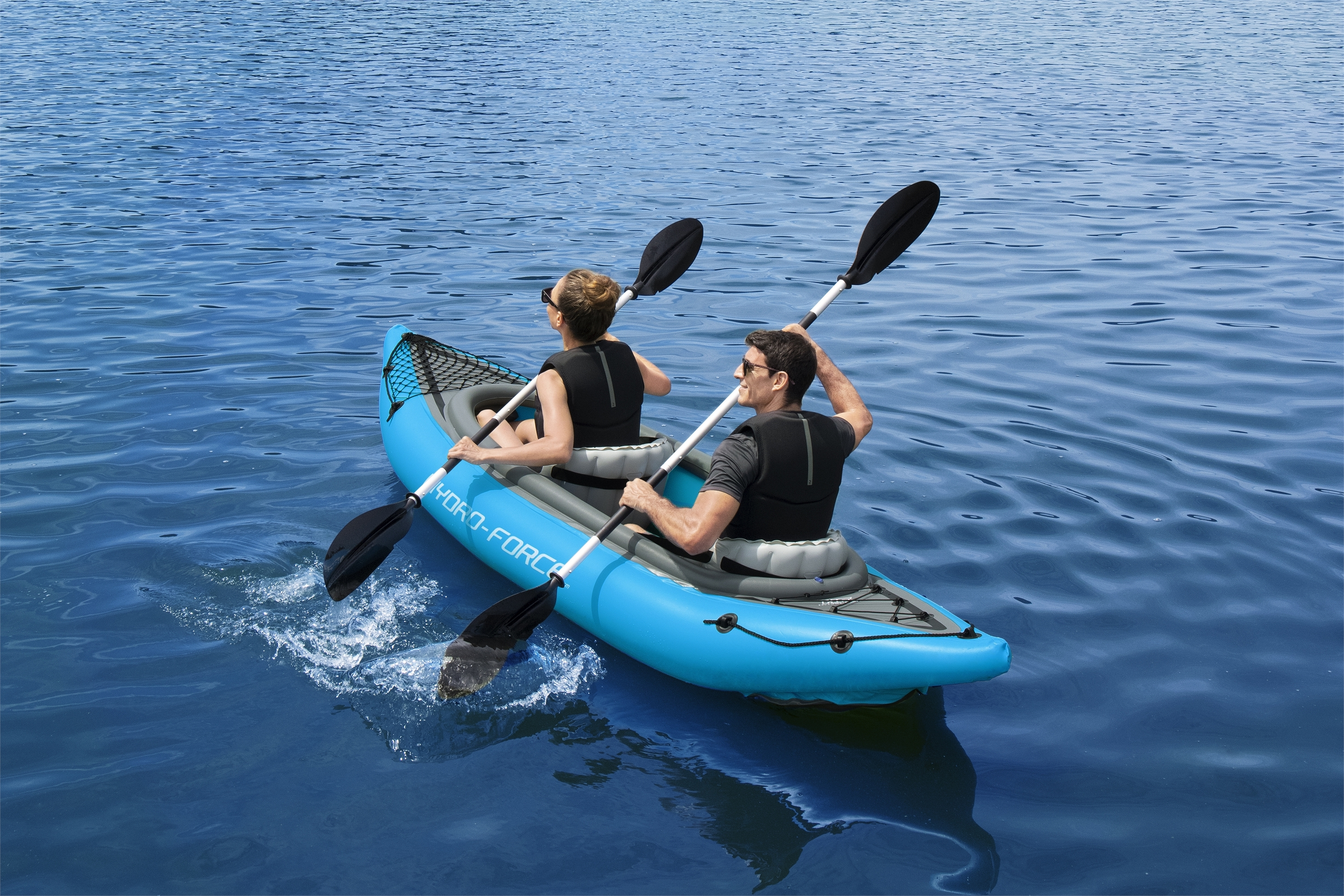 Bestway Hydro Force Kajak-Set Cove Champion X2 Das Bestway Hydro Force Cove Champion X2 ist ein aufblasbares Touring-Kajak für zwei Erwachsene, das für sportliches und effizientes Paddeln konzipiert wurde. Die schmale Bauform ermöglicht eine hohe Geschwi