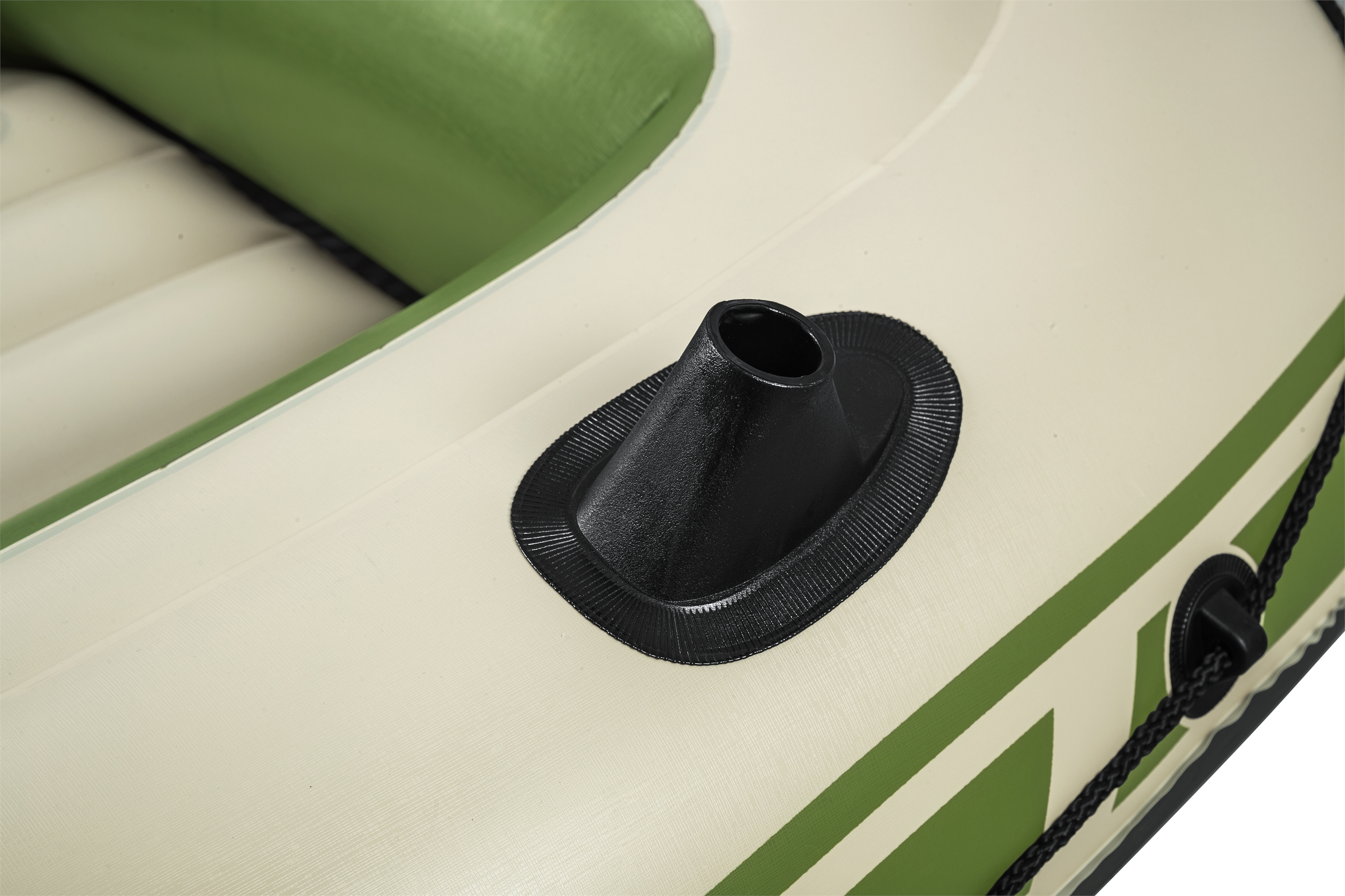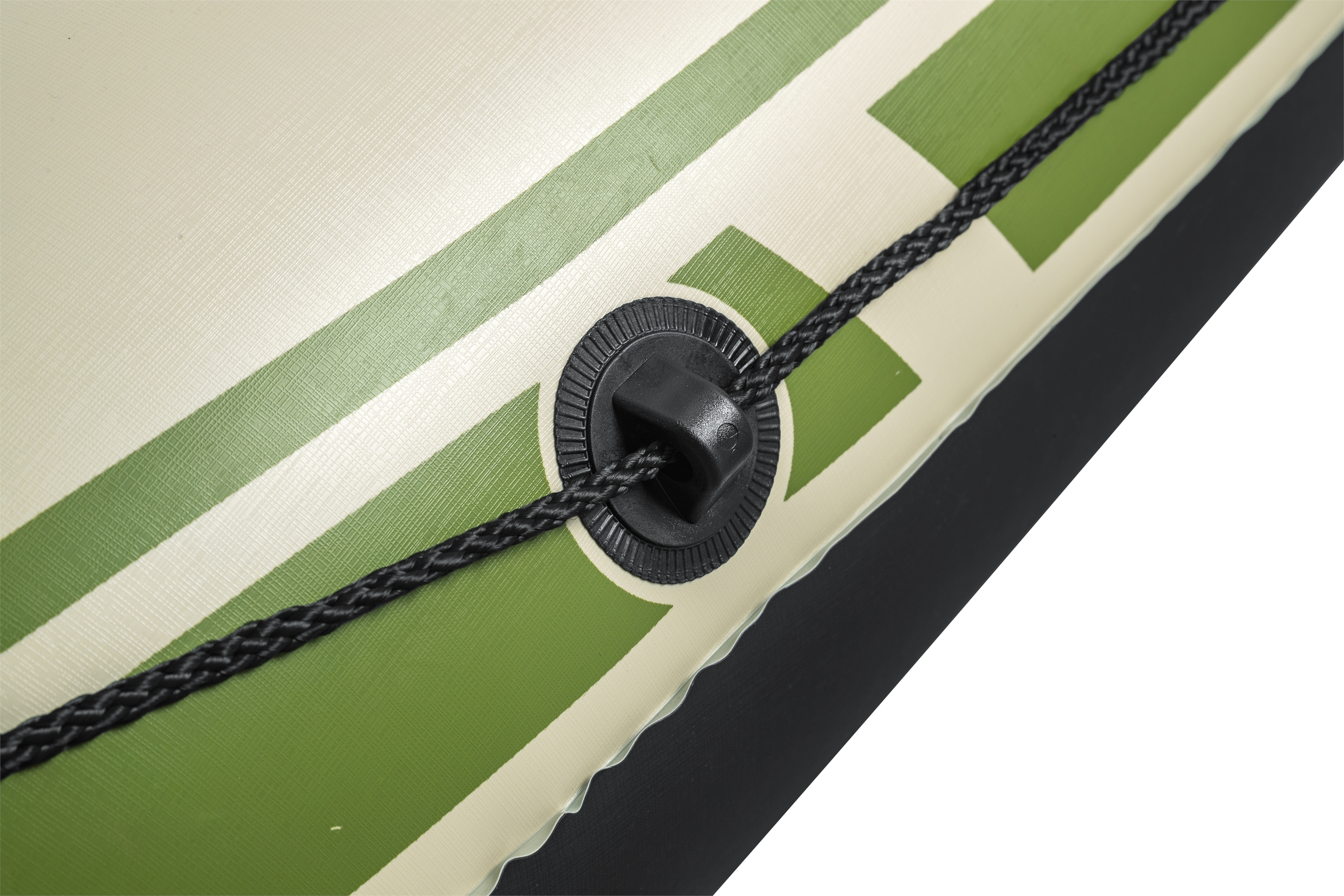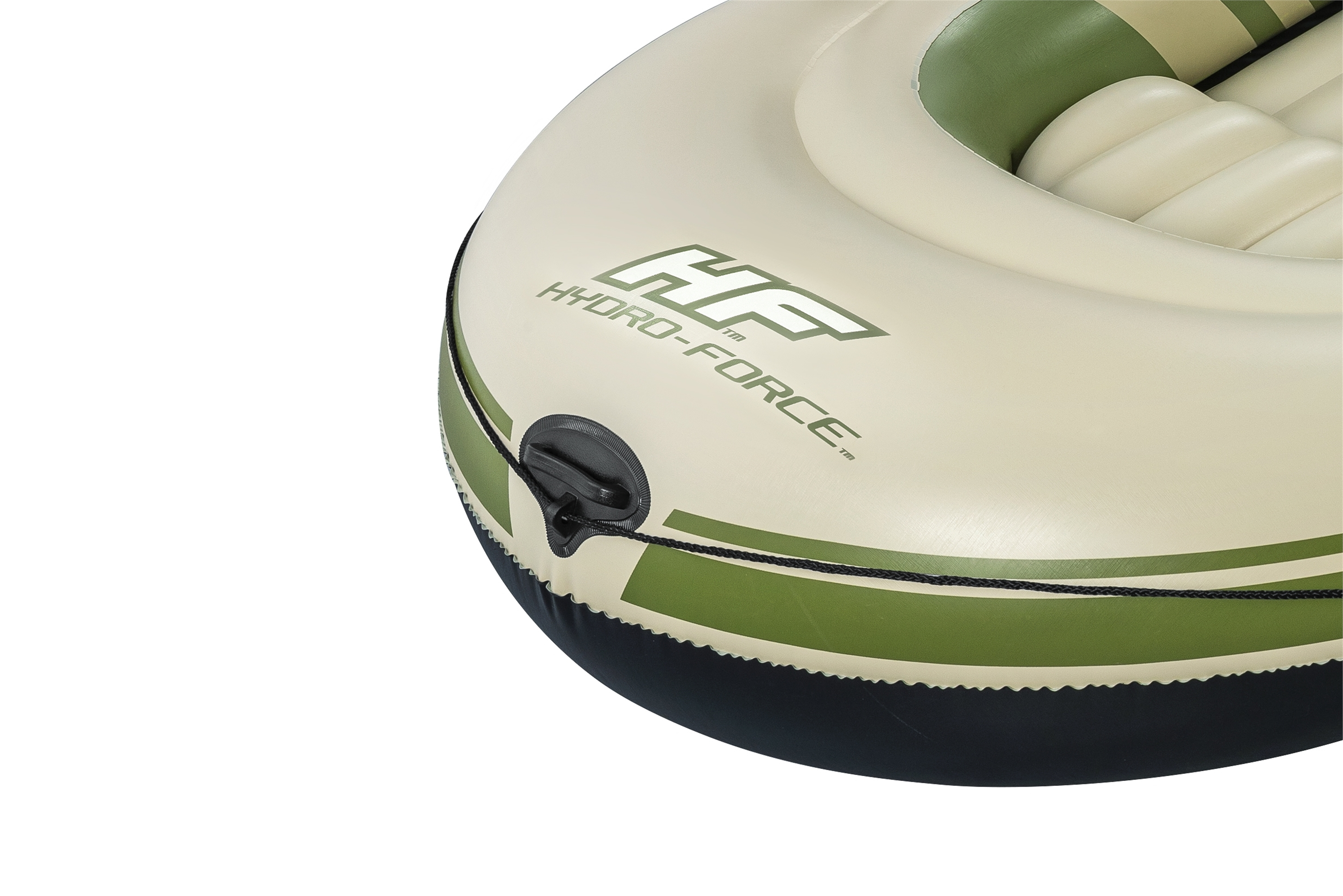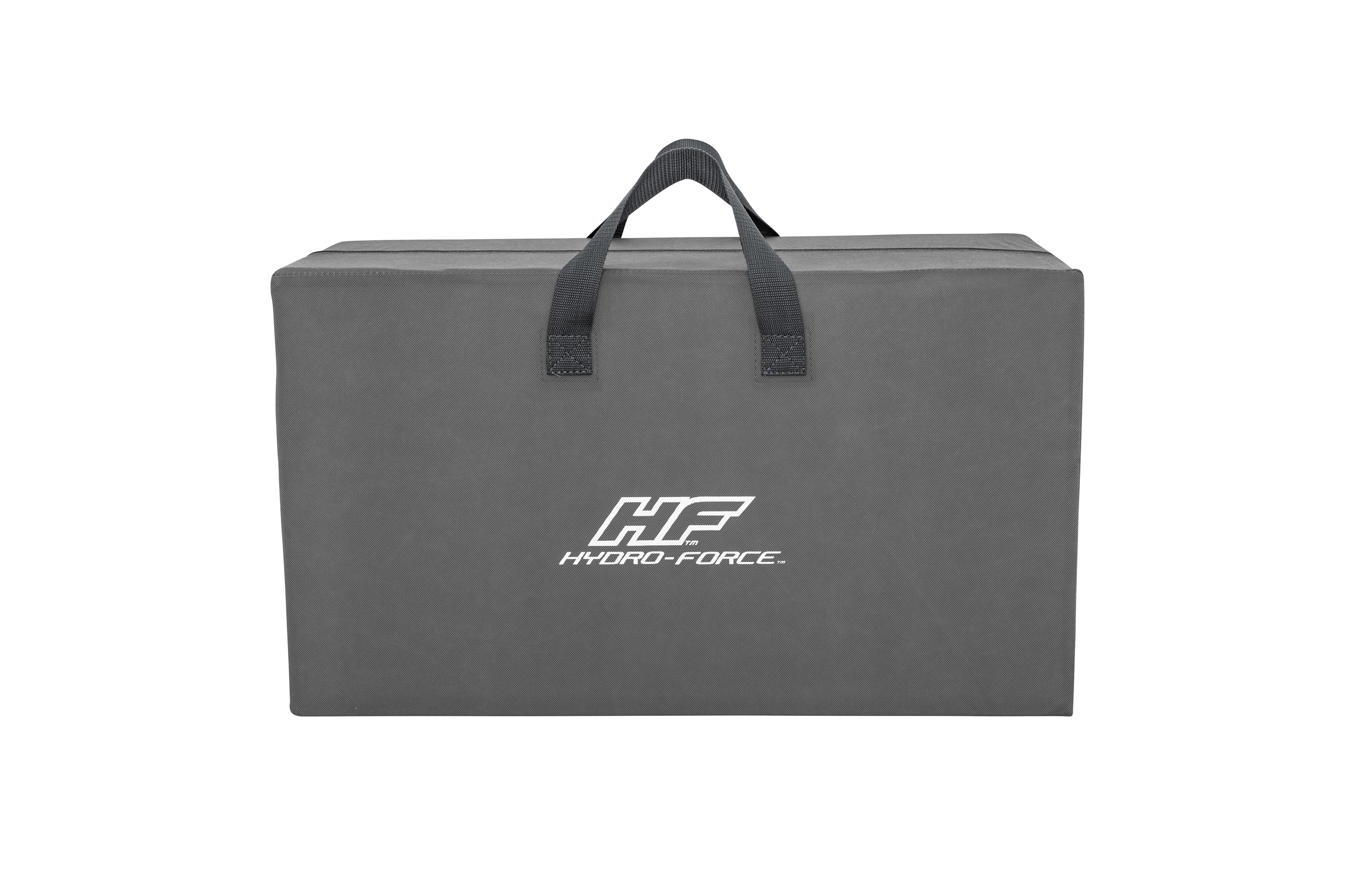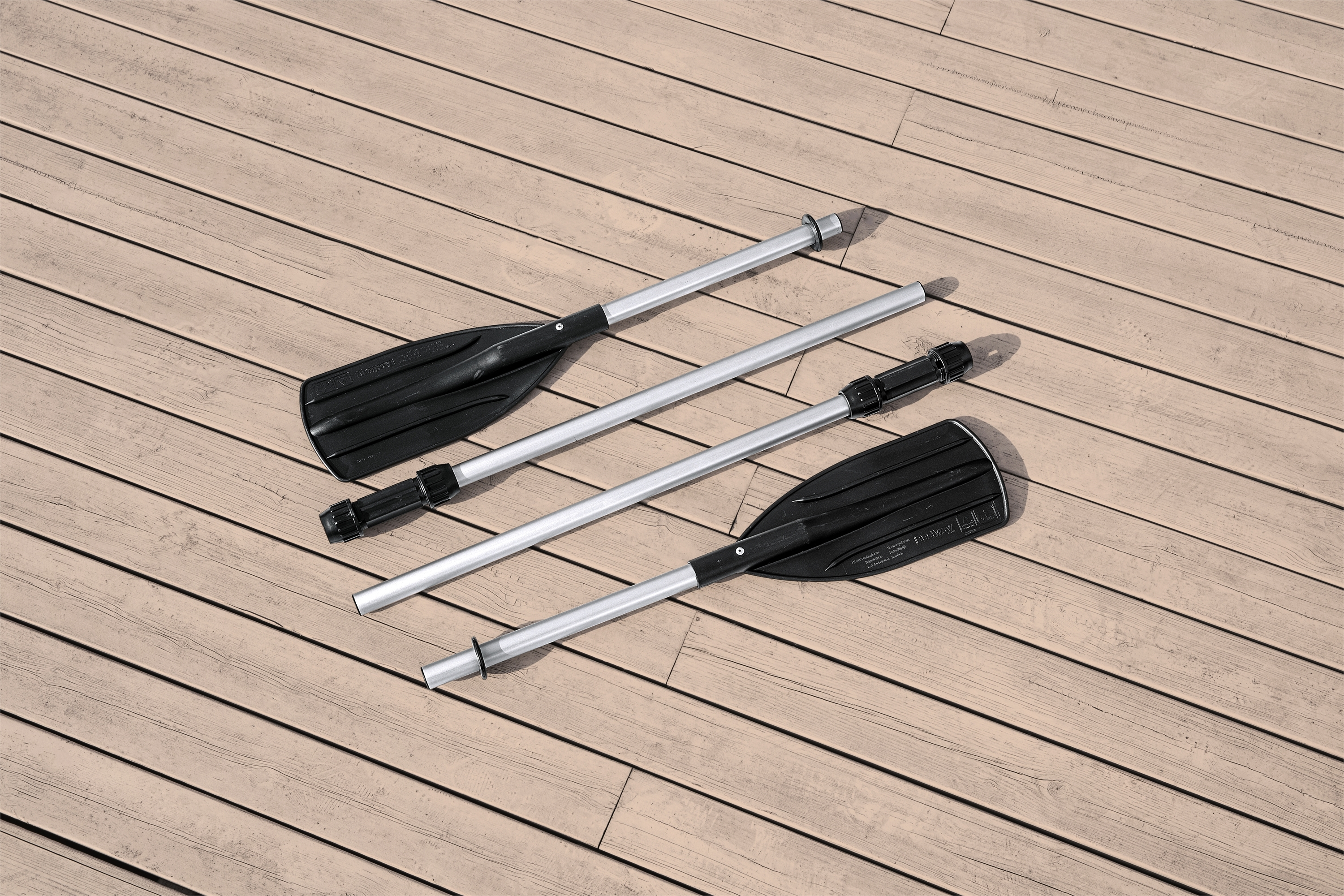 Bestway® Hydro-Force™ Schlauchboot Komplett-Set Voyager™ X4 350 x 145 x 49 cm Konstruktion: Größe aufgeblasen: 350 x 145 x 49 cm Maximale Belastbarkeit: 480 kg 3 Luftkammern Aus reißfestem Inflata-Shield™ -Material GS-zertifiziert (TÜV R