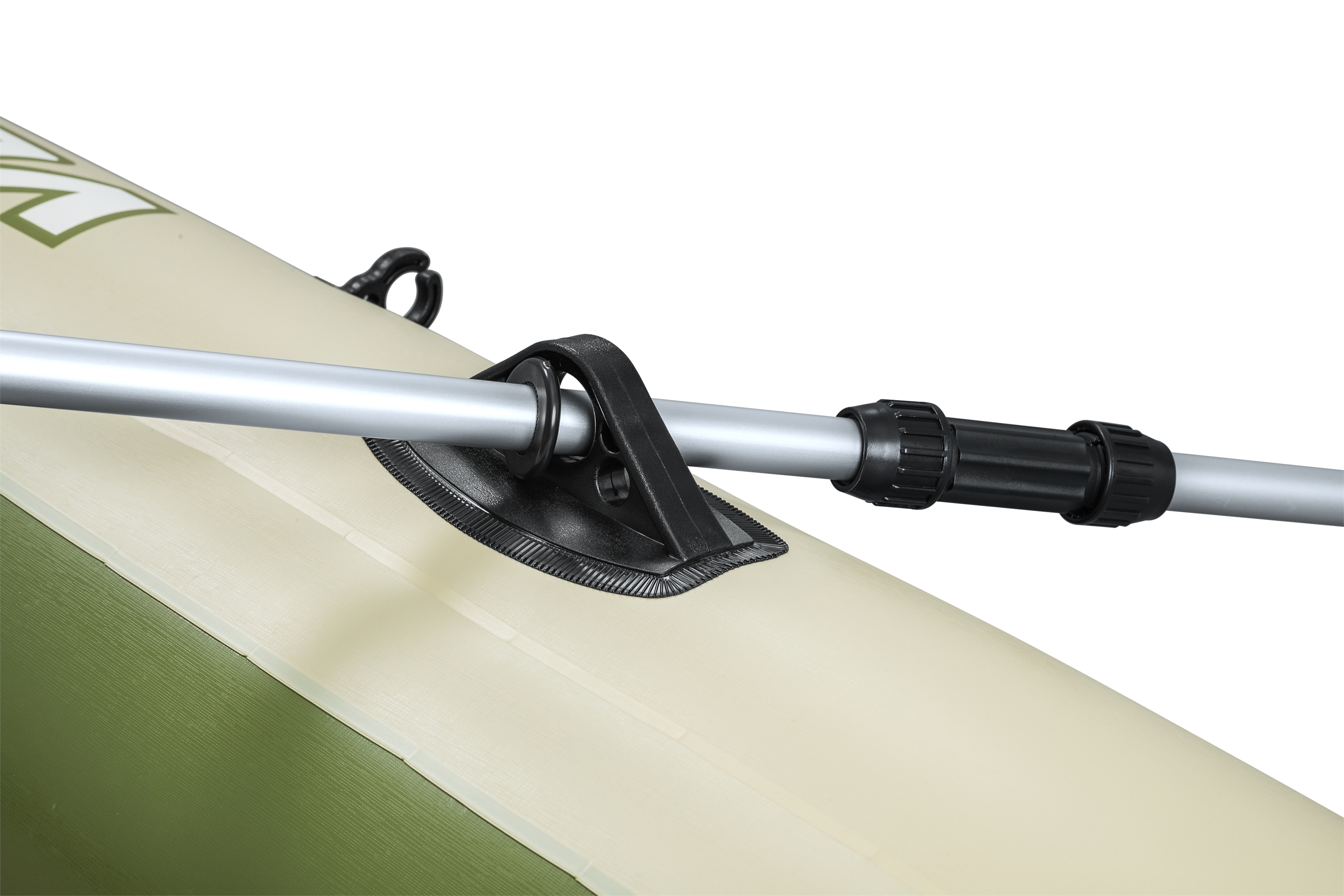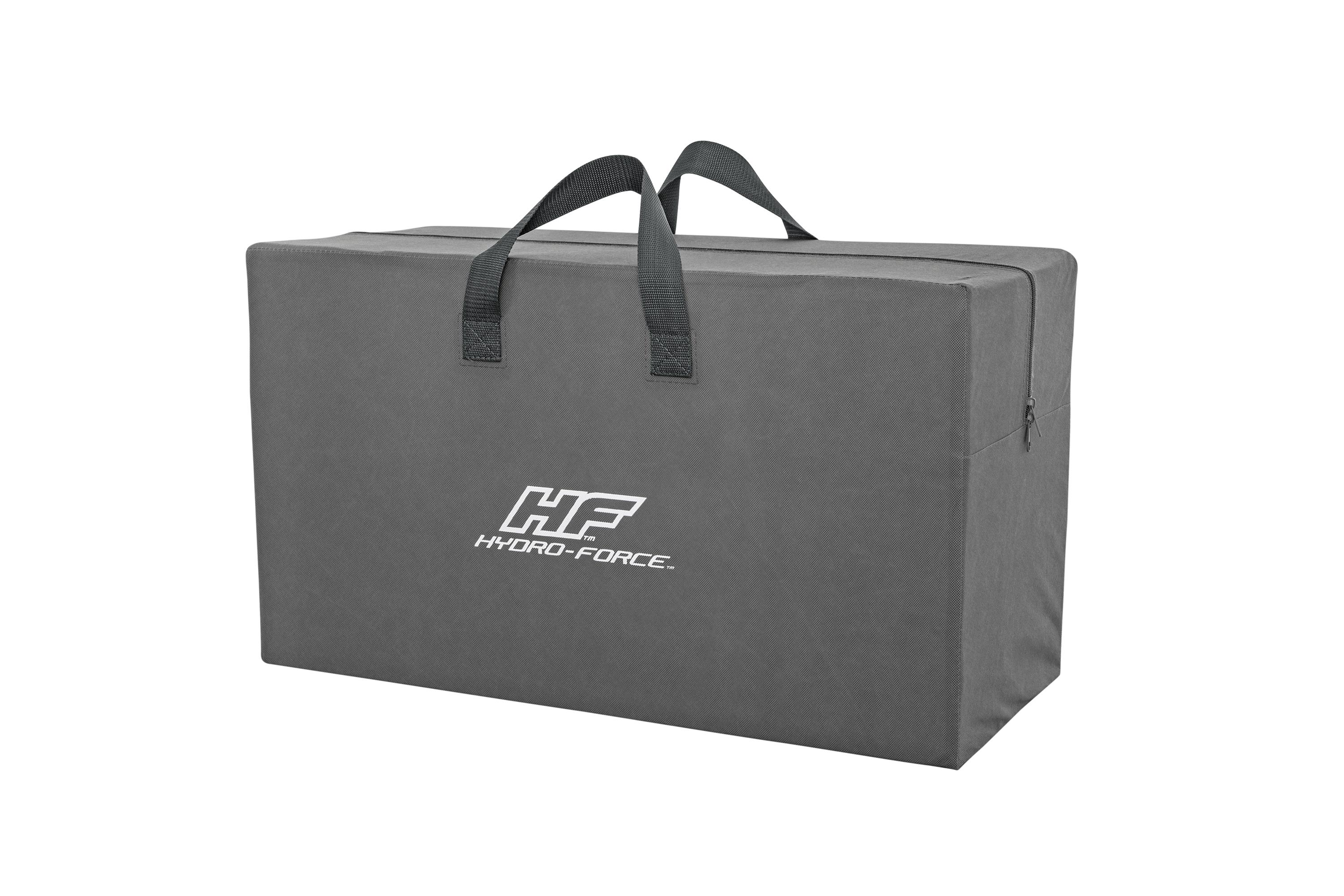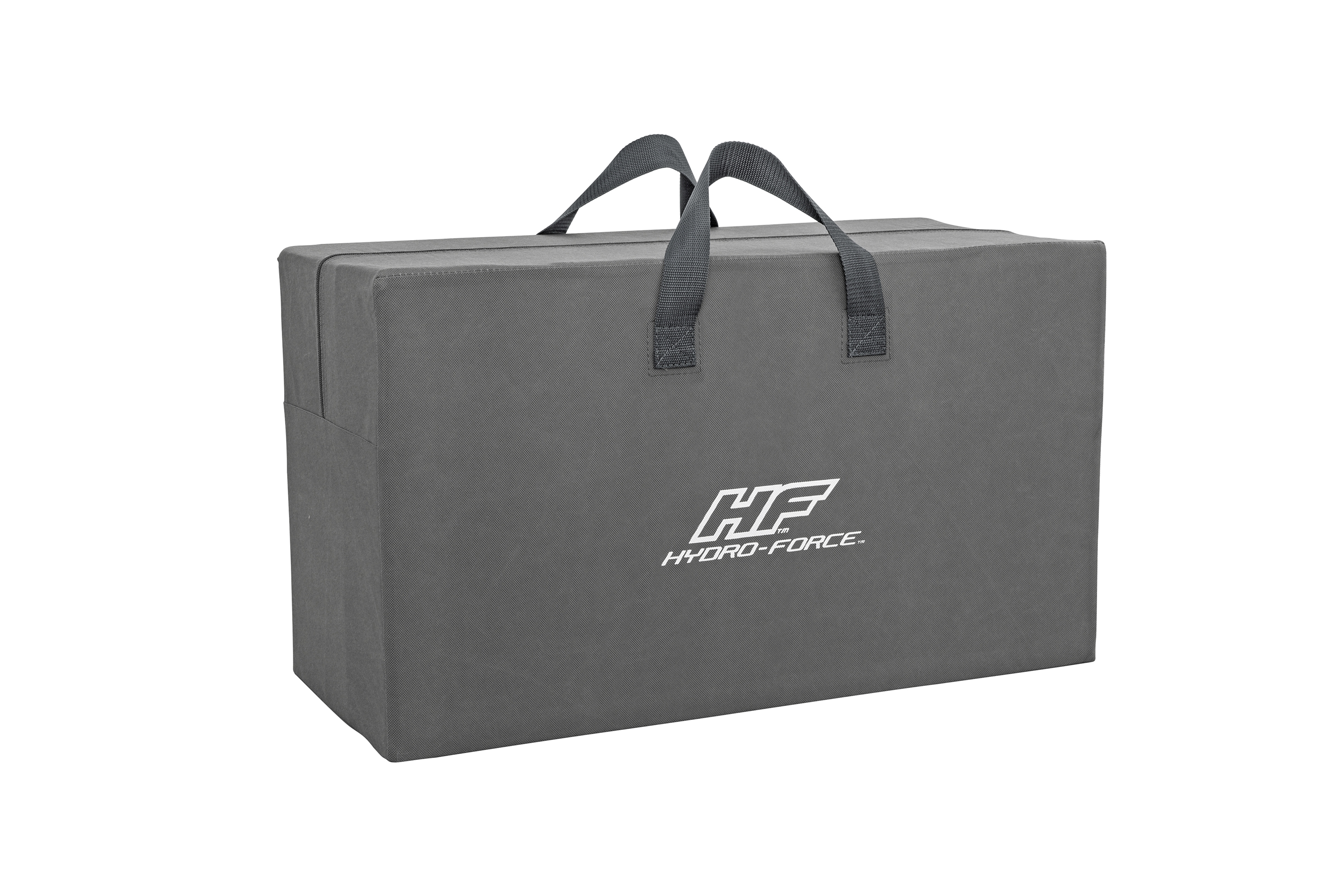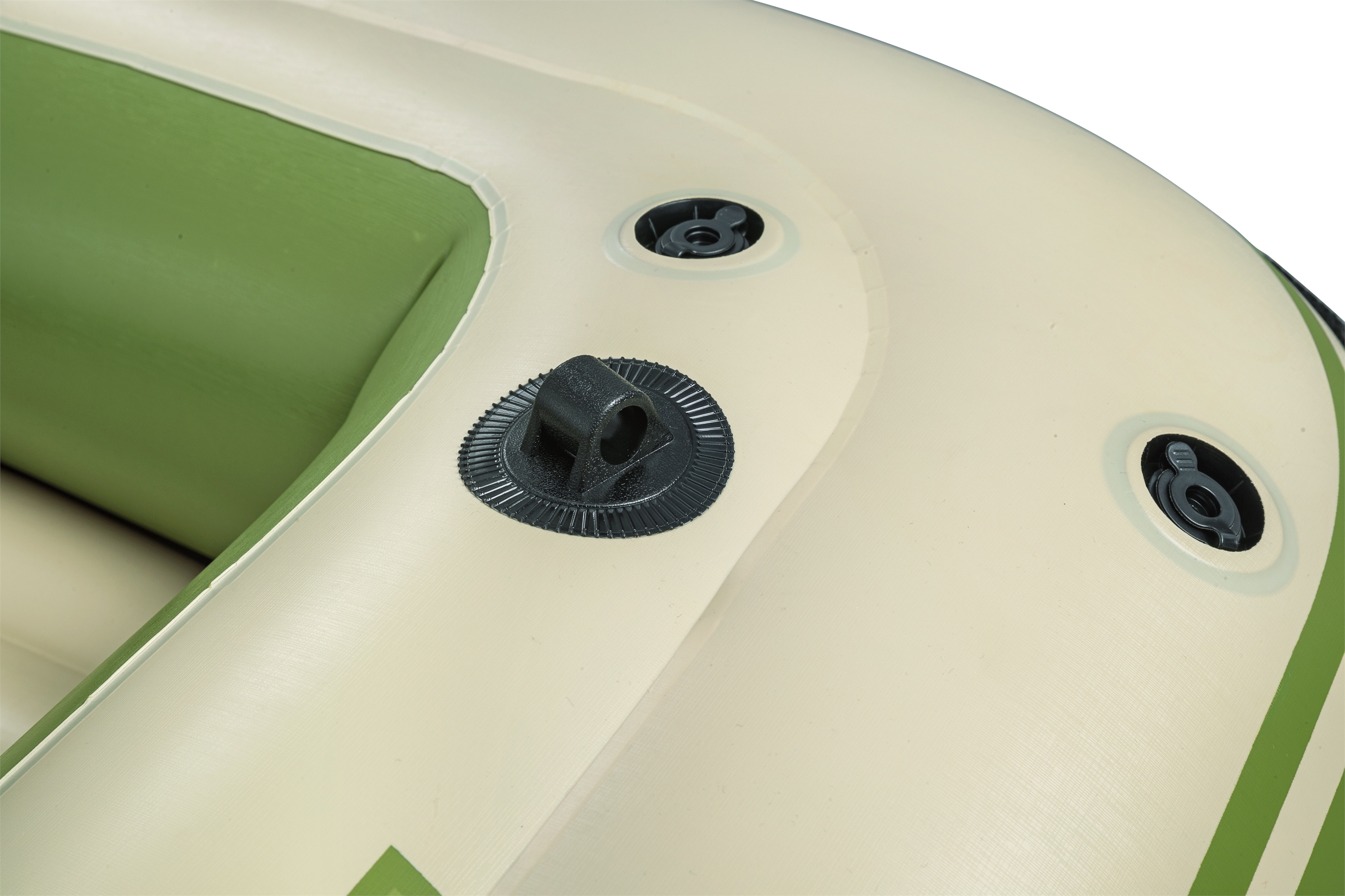 Bestway® Hydro-Force™ Schlauchboot Komplett-Set Voyager™ X4 350 x 145 x 49 cm Konstruktion: Größe aufgeblasen: 350 x 145 x 49 cm Maximale Belastbarkeit: 480 kg 3 Luftkammern Aus reißfestem Inflata-Shield™ -Material GS-zertifiziert (TÜV R