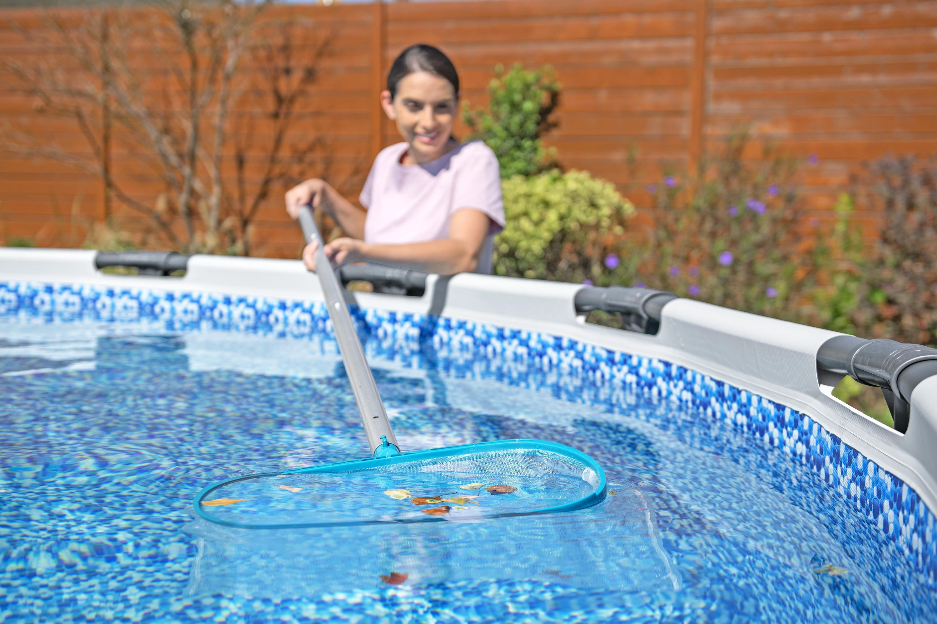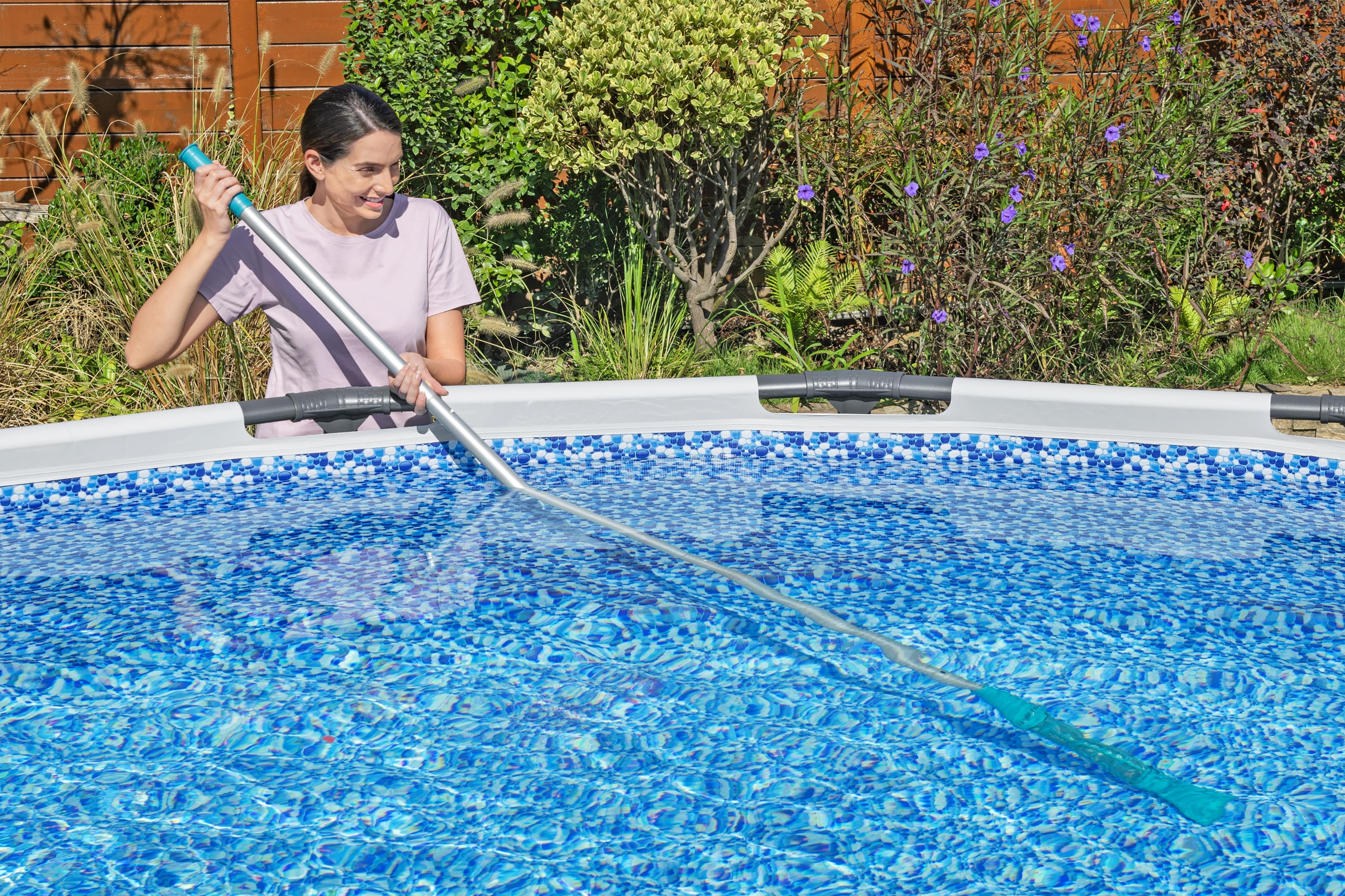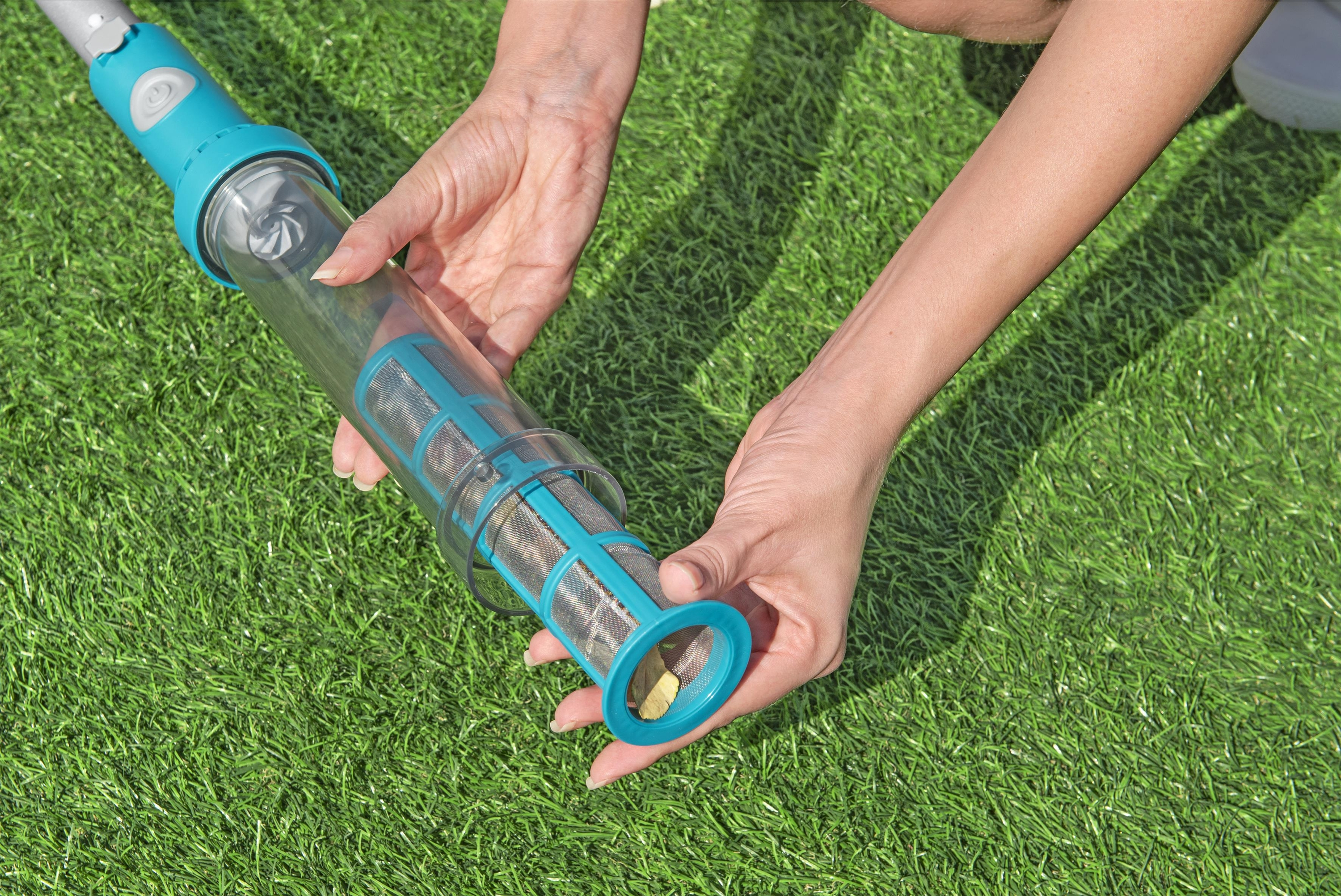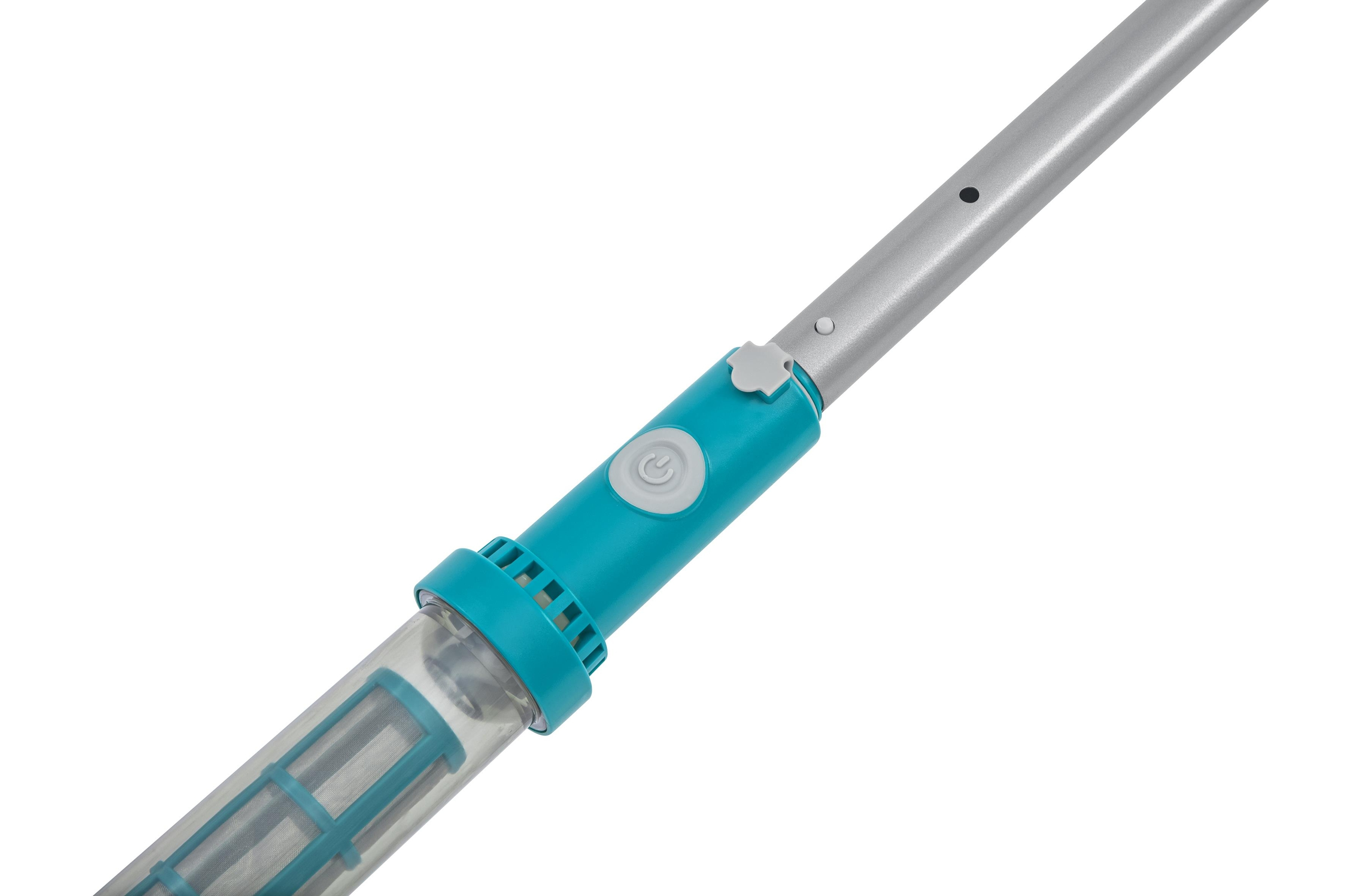 Geeignet für Aufstellpools mit bis zu 610 cm Durchmesser 1 Poolsauger: Integrierter Akku (Laufzeit bis zu 50 Minuten) Inklusive USB-Ladekabel Transparenter Schmutzbehälter (0,54 Liter) 2 verschiedene Saugköpfe Leichter Haltestiel 1 Kesc