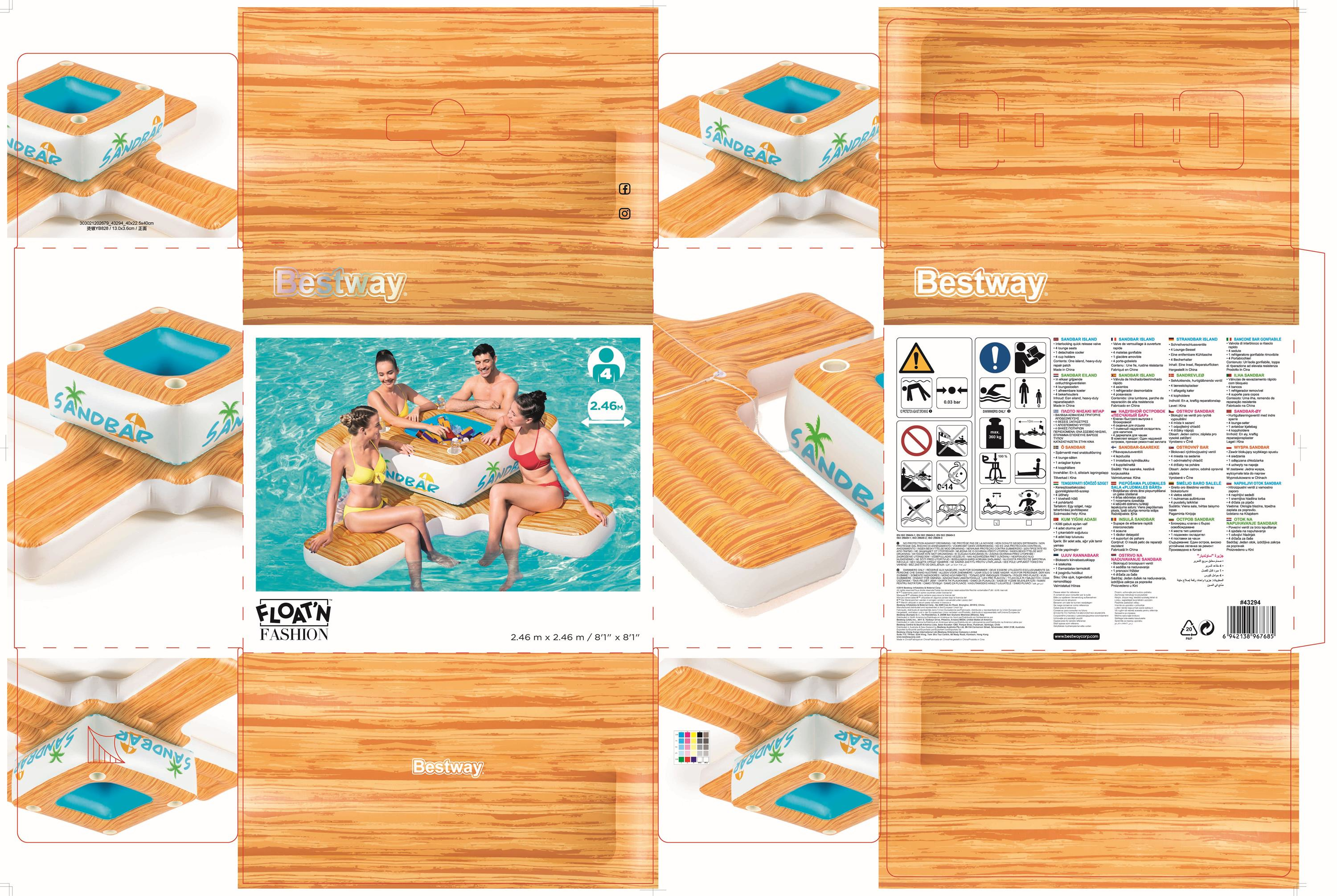 Bestway Schwimminsel Sandbar 246 x 246 cm Bestway Schwimminsel Sandbar 246 x 246 cm Highlights Platz für bis zu 4 Personen: Ideal für Freunde und Familie, um entspannte Stunden auf dem Wa