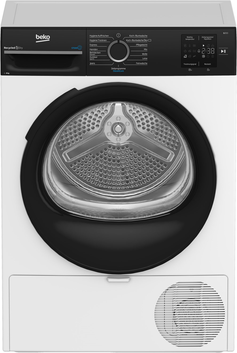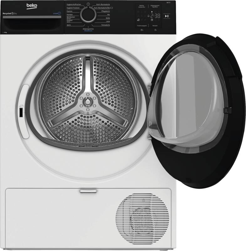 Beko-Trockner BM3T38240W Das Modell BM3T38240W ist ein Wärmepumpentrockner von Beko. Wenn Sie in einem 3- oder 4-Personen-Haushalt leben, hat dieses Gerät mit einem Fassungsvermögen von 8 kg genau die richtige Größe. Funktionen und Programme Der Nutzen des Hygiene-Programms leuchtet ein: Keime werden sicher beseitigt. Mit dem Fein-Programm kann empfindliche Kleidung vorsichtig behandelt werden. Einige Kleidungsstücke sind empfindlich oder dürfen nicht mit anderen Farben oder Textilien zusammen gewaschen werden. Deswegen gibt es für große Wäschestücke, Blusen und Hemden, Koch- und Buntwäsche, Jeans, Pflegeleichtes, Wolle, Mischwäsche sowie Outdoor- und Sportbekleidung eigene Programme. Weitere Merkmale des Wärmepumpentrockners Die Kindersicherung bietet ein Plus an Sicherheit. Nützliche Infos werden Ihnen auf dem Display angezeigt. Im Hinblick auf die Effizienz ist die Energieeffizienzklasse C zu erwähnen. Unsere Kaufempfehlung Sie möchten einen Trockner, der über eine Kindersicherung verfügt? Mit dem Beko BM3T38240W machen Sie alles richtig.