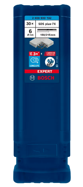 Das Bohren durch Stahlbeton ist eine schwierige Aufgabe, die den Bohrern viel abverlangt. Normale Bohrer mit zwei Schneidekanten bleiben in der Armierung stecken und brechen ab. Der Vollhartmetalkopf auf dem EXPERT SDS plus-7X ist ein fortschrittlicher 4-Schneider, der aus einem einzigen Stück des härtesten Metalls besteht: Es verklemmt nicht und zeigt keine Schwäche beim Hammerbohren.rnrn