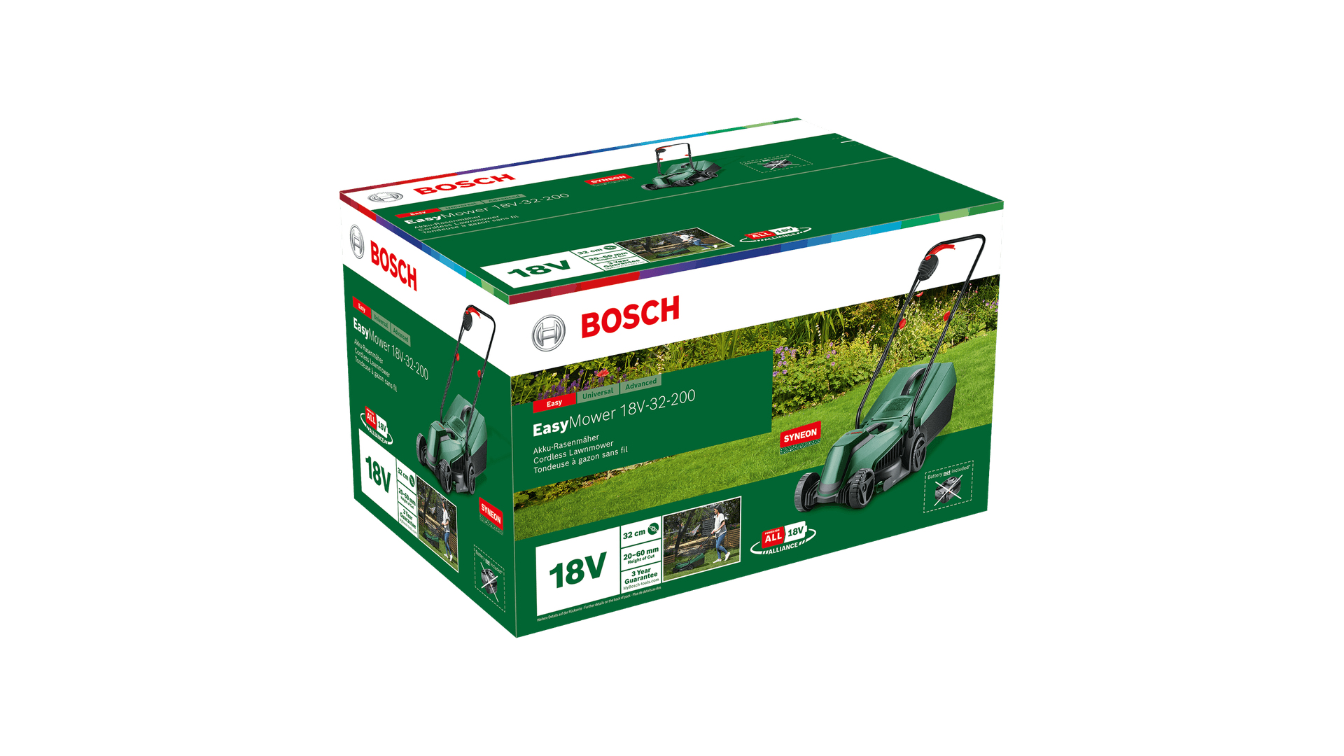 Kurzinfo: Bosch EasyMover - Rasenmäher - schnurlos - 18 V - 4 Ah - ohne Batterie, ohne Ladegerät - 32 cm - 7.5 kg Gruppe Elektrowerkzeuge für den Außenbereich Hersteller Bosch Hersteller Art. Nr. 06008B9D01 Modell EasyMover EAN/UPC 4059952616148 Produktbeschreibung: Bosch EasyMover - Rasenmäher - elektrisch - schnurlos Produkttyp Rasenmäher - Klinge - elektrisch - schnurlos Batterie Ohne Batterie x 18 V - Lithium-Ionen - 4 Ah Ladegerät Ohne Ladegerät Schneidehöhe 20-60 mm Schneidebreite 32 cm Behälterkapazität 31 L Einstellbare Schnitthöhe Ja, 3 Stufen Abmessung 35.5 cm x 112 cm x 99.5 cm Gewicht 7.5 kg Ausführliche Details Allgemein Produkttyp Rasenmäher Motortyp Elektrisch Schnurlos Ja Schneidehöhe 20-60 mm Schneidebreite 32 cm Empfohlener Bereich 200 m² Behälterkapazität 31 L Merkmale Faltgriff, leicht, POWER FOR ALL Akku 18 V, Syneon Technology Schneidemaschine / Säge Trimmerschneidsystem Klinge Rasenmäher Einstellbare Schnitthöhe Ja, 3 Stufen Batterie Technologie Lithium-Ionen Mitgelieferte
