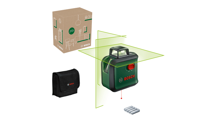 Der AdvancedLevel 360 vereint alle erforderlichen Funktionen zum schnellen horizontalen, vertikalen sowie rechtwinkligen Ausrichten und Übertragen von Referenzen in nur einem Werkzeug. Die Projektion einer horizontalen 360°-Linie und der vertikalen Laserlinie stellen ein präzises Ausrichten sicher. Darüber hinaus ermöglicht die zweite vertikale Laserline im 90°-Winkel das einfache und exakte rechtwinklige Ausrichten, während das Deckenkreuz den unteren Lotpunkt zum schnellen Übertragen von Referenzen ergänzt. Dank der grünen Lasertechnologie ist die Sichtbarkeit bis zu viermal besser im Vergleich zu roten Laserlinien, selbst bei hellen Lichtverhältnissen. Ob abgehängte Decken montieren, Möbel auf gleiche Höhe bringen, Trockenbauwände und Duschkabinen einbauen oder Leuchten anbringen: Dieser 360°-Linienlaser gewährleistet optimale Ergebnisse, selbst auf leicht rauen Oberflächen. Features: Projektion von einer horizontalen 360°-Linie, 2 vertikalen Linien und Lotpunkt unten Grüne Lasertechnologie: bis zu viermal besser sichtbar, selbst bei hellen Lichtverhältnissen Genauigkeit von +/- 0,4 mm/m für präzise Ergebnisse Öffnungswinkel von 120° für lange Laserlinien selbst bei kurzem Arbeitsabstand Technische Daten: Durchmesser Arbeitsbereich: 24 m Laserdiode Laserlinie: 500...540 nm Laserdiode Laserpunkt: 630...650 nm Laserklasse: 2 Selbstnivellierzeit, typ.: 4 s Nivellierbereich: ± 4 ° Öffnungswinkel: 120° Genauigkeit: ± 0,4 mm/m Stativ-Gewinde: 1/4" 4x 1,5 V Mignon AA Batterie Gewicht: 520 g Maße (LxBxH): 117x80x126 mm Lieferumfang: Kreuzlinien-Laser, AdvancedLevel 360 4x 1,5 V Mignon AA Batterie Aufbewahrungshülle