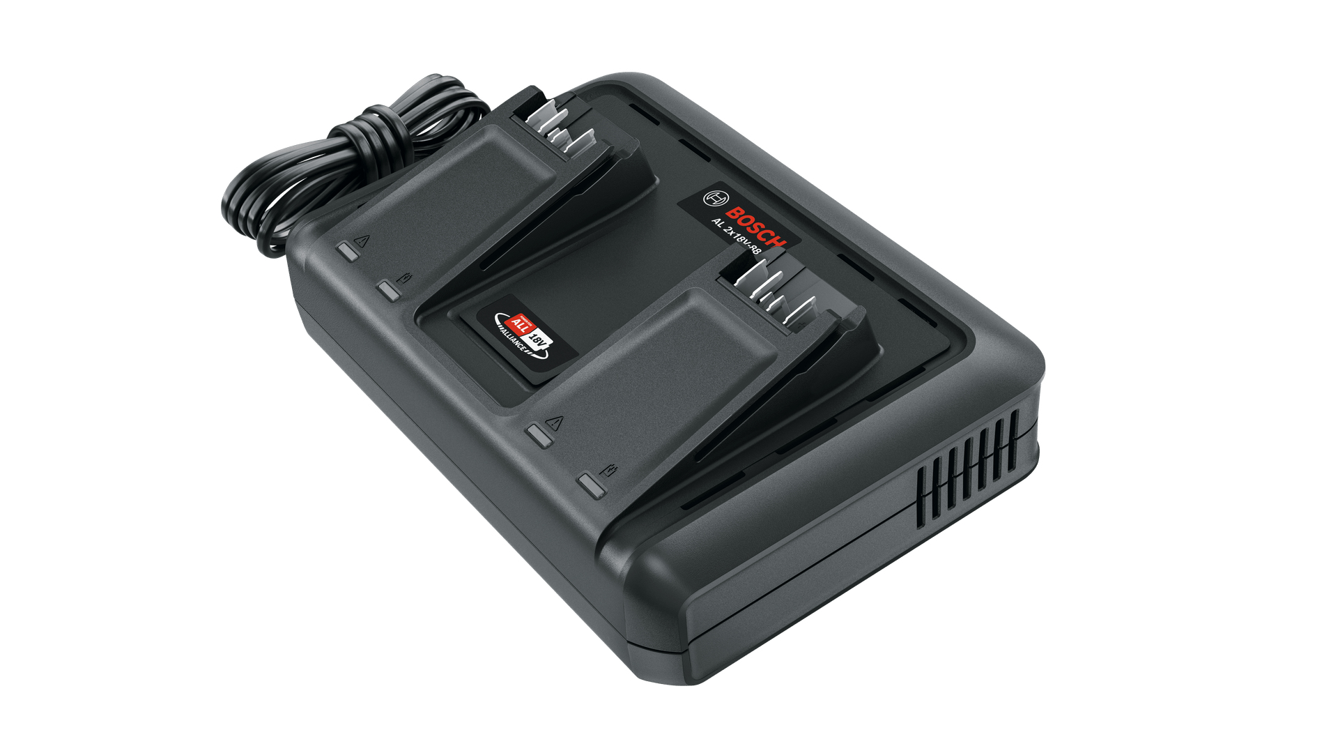 Das Bosch Akku-Ladegerät mit 2 Anschlüssen lädt Ihre 18 V-Akkus parallel – kein Umschalten nötig! Jeder Anschluss liefert starke 4,4 A, was superschnelle Ladezeiten ermöglicht – ein 4,0 Ah Akku ist in ca. 59 Minuten voll einsatzbereit. Trotz dieser Power überzeugt das Gerät mit einer kompakten Bauweise, ideal für Werkstatt oder unterwegs. Features: Paralleles Laden: Jeder Anschluss mit 4,4 A. Garantiert schnelle Ladezeiten Sehr kompakte Form und Größe trotz seiner starken Ladeleistung Integrierte Wandhalterung und Gummifüße Technische Daten: Akkuladespannung: 14,4...18 V Ladestrom: 4,4 A Ladezeit bei 2,5 Ah 100 %: ca. 44 min. Ladezeit bei 4,0 Ah 100 %: ca. 59 min. Ladezeit bei 6,0 Ah 100 %: ca. 87 min. Kompatibler Akku: 18V Power FOR ALL Alliance Gewicht: 0,85 kg Maße (LxBxH): 220x154x83 mm Lieferumfang: Schnell-Lader AL 2x18V-88
