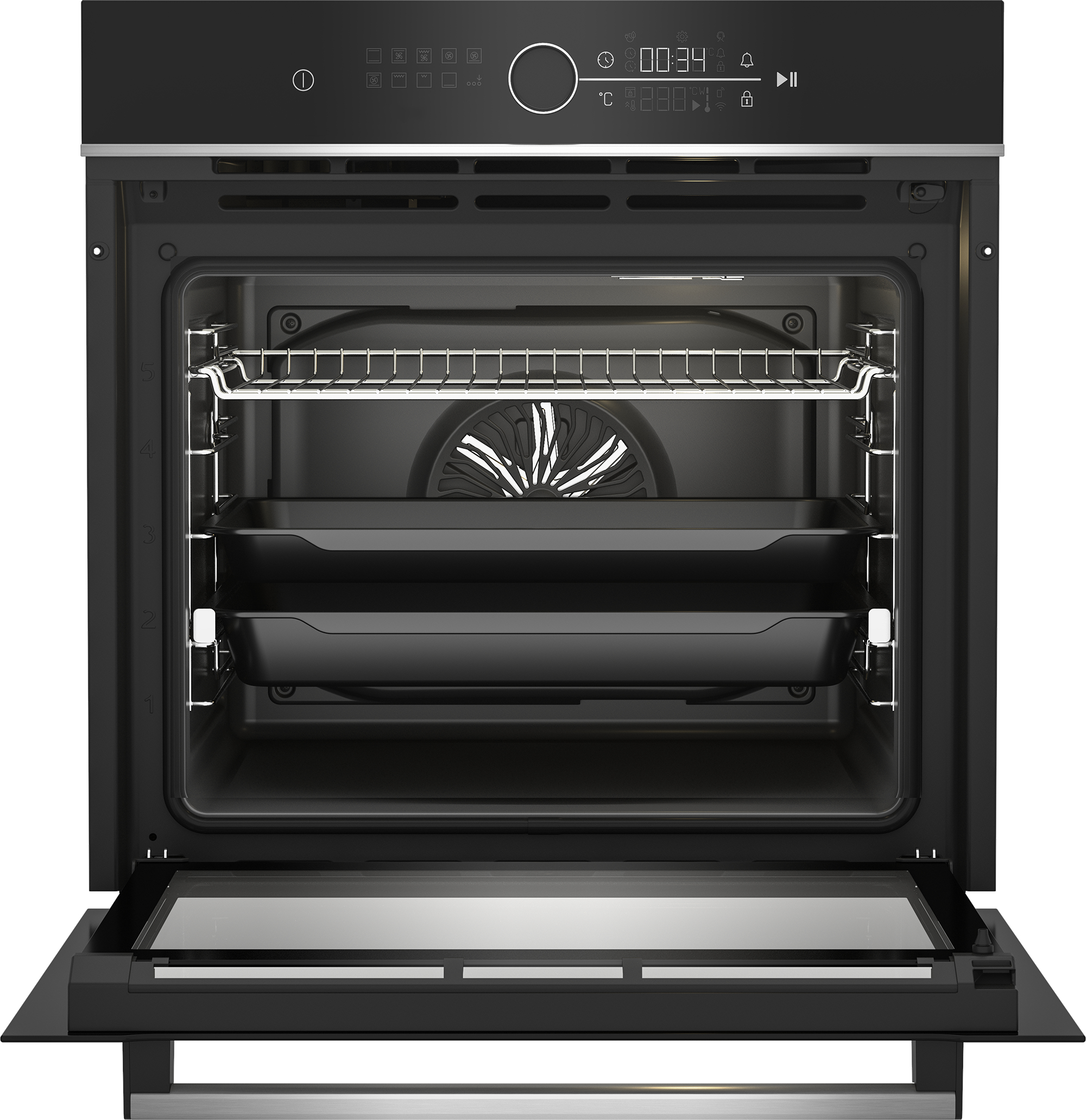Beko Elektrobackofen BBIM13400XPSE Der BBIM13400XPSE ist ein Elektrobackofen von Beko. Für niedrige Kosten steht der Verbrauch von nur 0,95 kWh bei Ober-/Unterhitze und 0,69 kWh bei Heißluft/Umluft. Back- und Kochvergnügen im großen Stil verspricht der BBIM13400XPSE mit seinem überdurchschnittlich großen Innenraumvolumen von 72 Litern. Potenzial für Kreativität Neben Ober-/Unterhitze, Heißluft/Umluft und Unterhitze verwenden Sie die Backofeneinstellungen 3D-Heißluft und Auftauen (nur Gebläse). Mit der Pizzastufe wird die Creazione alla Casa richtig knusprig. Tolle Krusten bilden sich unter Zuhilfenahme des Umluftgrills. Weitere Eigenschaften des Elektrobackofens Rost und Bleche sind sicher auf dem Teleskopauszug angebracht. Beim Hervorholen kann damit nichts herunterfallen. Im Hinblick auf die Sicherheit bietet das Modell zudem die kühle Backofentür und ermöglicht so entspanntes Kochen, selbst wenn Kinder in der Küche sind. Als Putzhilfe in Form von Hitze unterstützt Sie die pyrolytische Selbstreinigungsfunktion. Darüber hinaus haben Fettflecken und Speisereste aufgrund der glatten Innenwand keine Chance. Der Elektrobackofen hat ein Gewicht von 43,5 kg und ist 59,4 cm breit, 59,5 cm hoch und 56,7 cm tief. Geliefert wird der BBIM13400XPSE mit 1 Grillrost, 1 Backblech und 1 Fettpfanne. Unsere Kaufempfehlung Der BBIM13400XPSE überzeugt mit einer energieeffizienten Leistung. Für Köche aus Leidenschaft, die sich ein großes Innenraumvolumen wünschen, ist der BBIM13400XPSE ein wahr gewordener Traum.