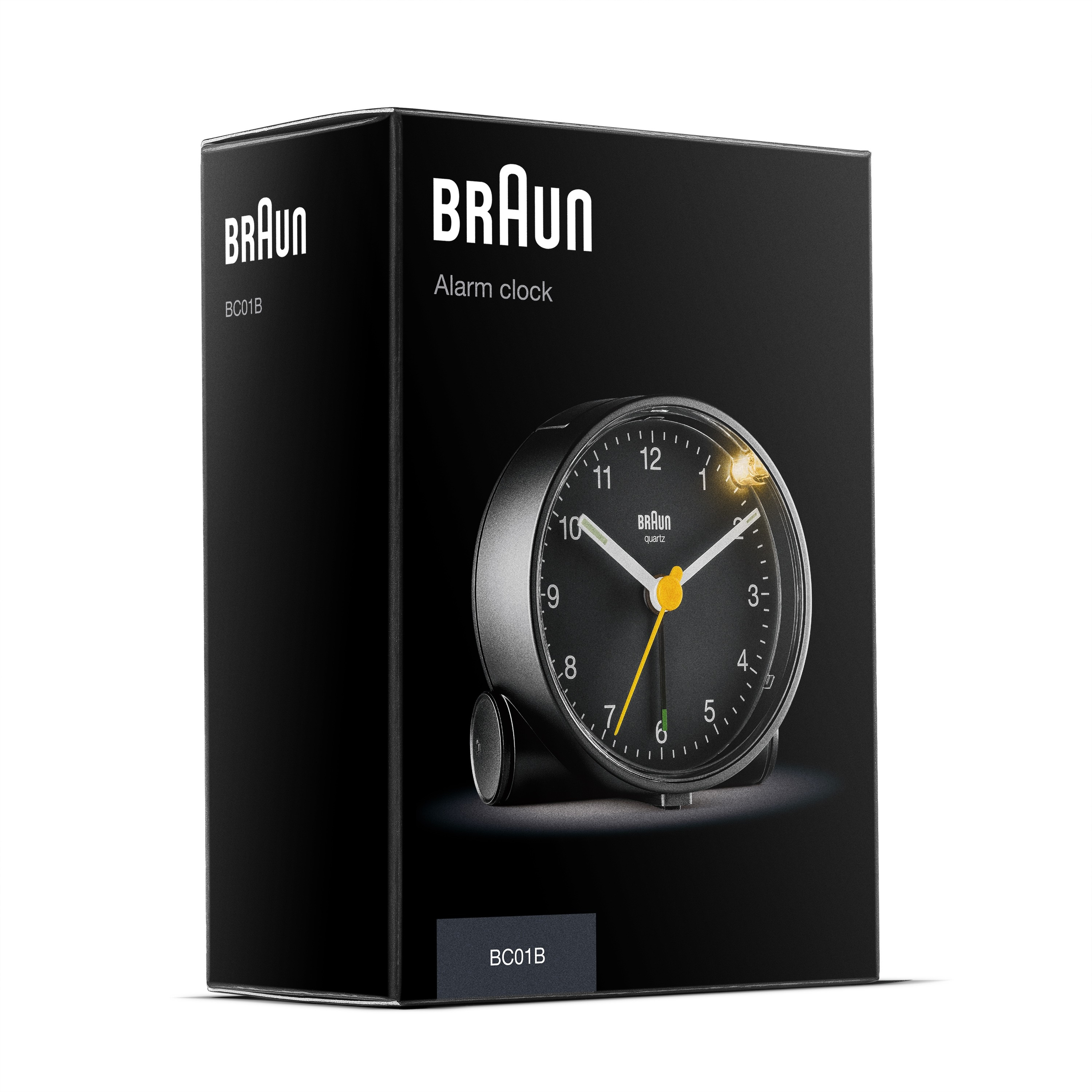 Marke: Braun • Hersteller-Nr.: BC01B • Hersteller Serie: Klassik Wecker • Funktionen: Crescendo-Alarm, Schlummerfunktion • Beleuchtung: Leuchtzeiger • Artikelgewicht: 0.3 kg • Lieferumfang: Anleitung, Garantie Dok., Umkarton