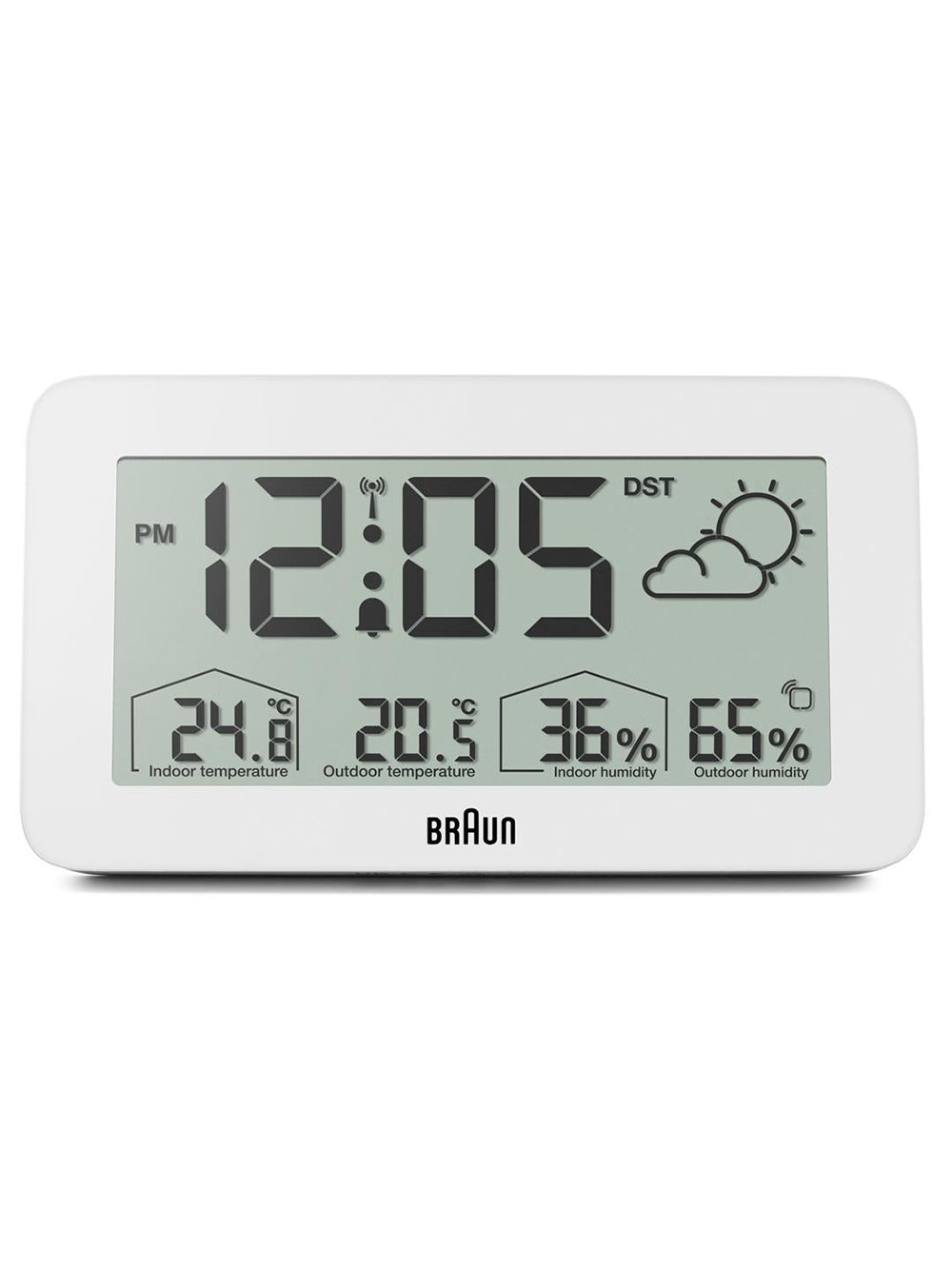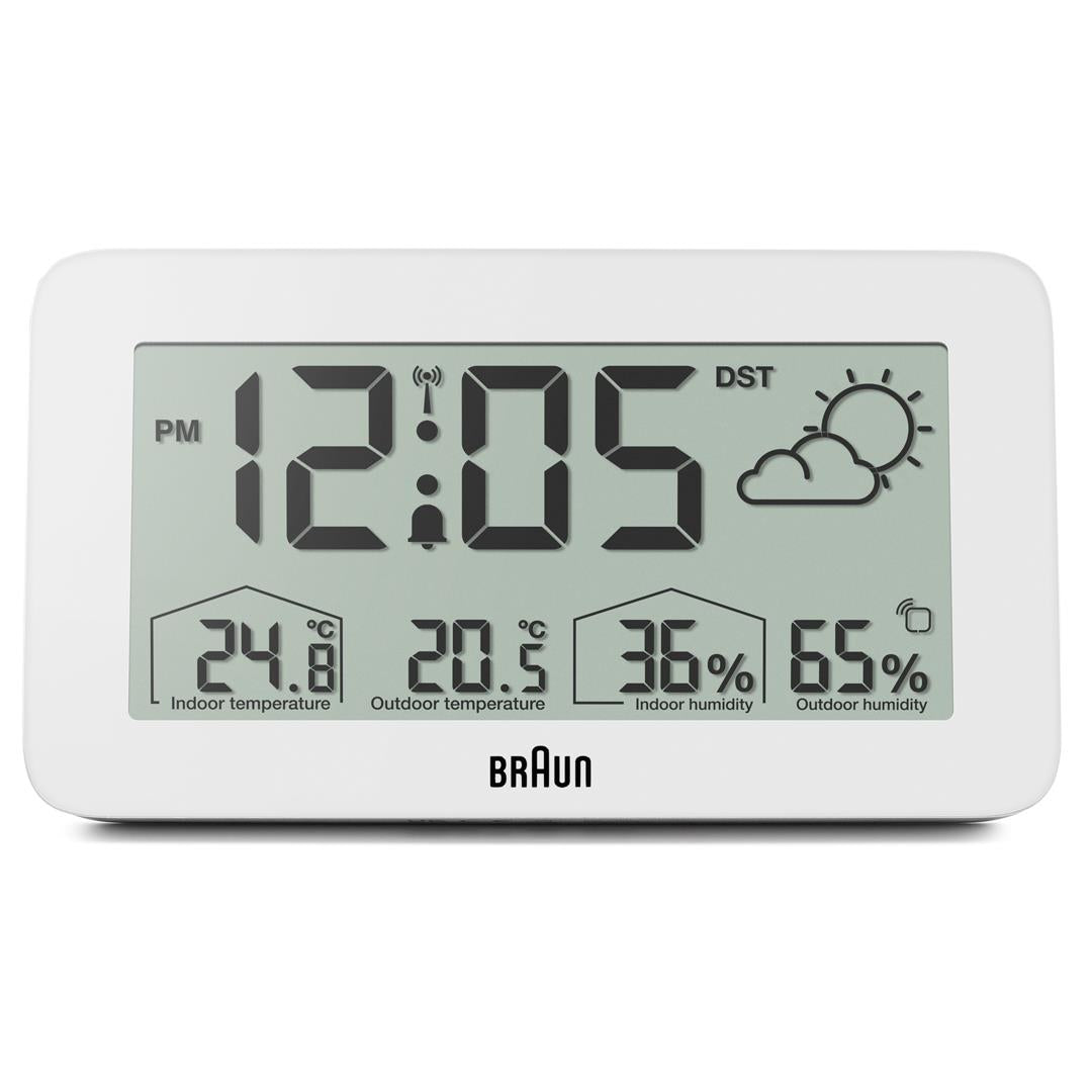 Marke: Braun • Hersteller-Nr.: BC13WP-DCF • Hersteller Serie: digitaler Funkwecker m. Wetterstation • Funktionen: 12-24 h, Crescendo-Alarm, Minute, Schlummerfunktion, Sekunde, Stunde, Temperaturanzeige • Abmaße: 135 x 75 x 17 mm • Artikelgewicht: 0.3 kg • Lieferumfang: Anleitung, Garantie Dok., Umkarton