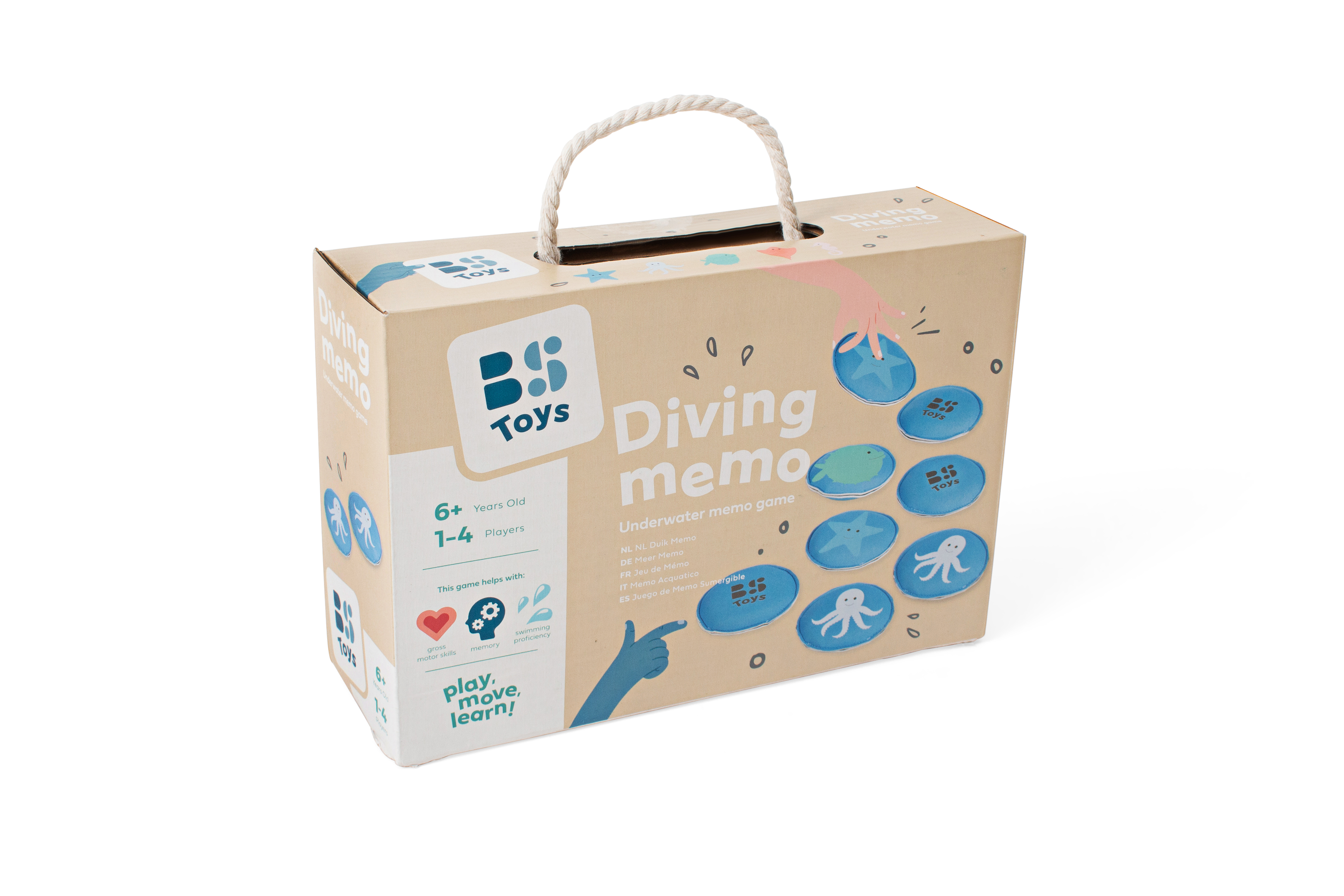 BS Tauchspiel Memo: Mit Spaß tauchen lernen - Mit dem BS Tauchspiel „Memo“ wird es im Schwimmbad oder Pool bestimmt nie langweilig. Wer findet unter Wasser das passende Motiv? Gewonnen hat der Spieler, der am Ende die meisten Paare gesammelt hat. Das Spiel besteht aus 12 Spielsäcken mit lustigen Meerestieren darauf. Dank des strapazierfähigen Neopren-Materials sind die Spielsäckchen besonders licht- und wasserbeständig. Ob für Kinder oder Erwachsene: Der Tauchspaß ist mit dem BS Tauchspiel Memo garantiert. - Produktdetails: - Material: Neopren mit Sandfüllung - Größe: ø 9 cm - Stärke: ca. 2 cm - Gewicht: ca. 130 g/ je Säckchen - Das Set besteht aus: - 12 Säckchen (6 Paare) - 1 Mesh-Aufbewahrungsbeutel - Spielanleitung