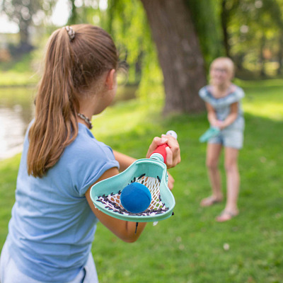 BS Toys Wurfspiel Lacrosse: die richtige Technik macht’s - Das Wurfspiel Lacrosse von BS Toys enthält 2 Schläger aus Kunststoff und 1 weichen Neopren-Spielball. Die richtige Wurftechnik ist entscheidend für einen guten Wurf. Um den Ball mit dem anderen Schläger aufzunehmen ist eine gute Augen-Hand-Koordination gefragt. Das Lacrosse-Set ist ein guter Einstieg für andere Teamspiele. - Produktdetails: - Material Schläger: Kunststoff - Material Ball: Neopren - Maße Schläger (LxB): 41x4 cm - Maße Ball (ø): 4 cm - Gewicht: 350 g