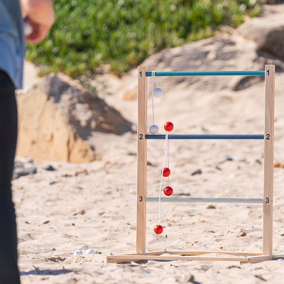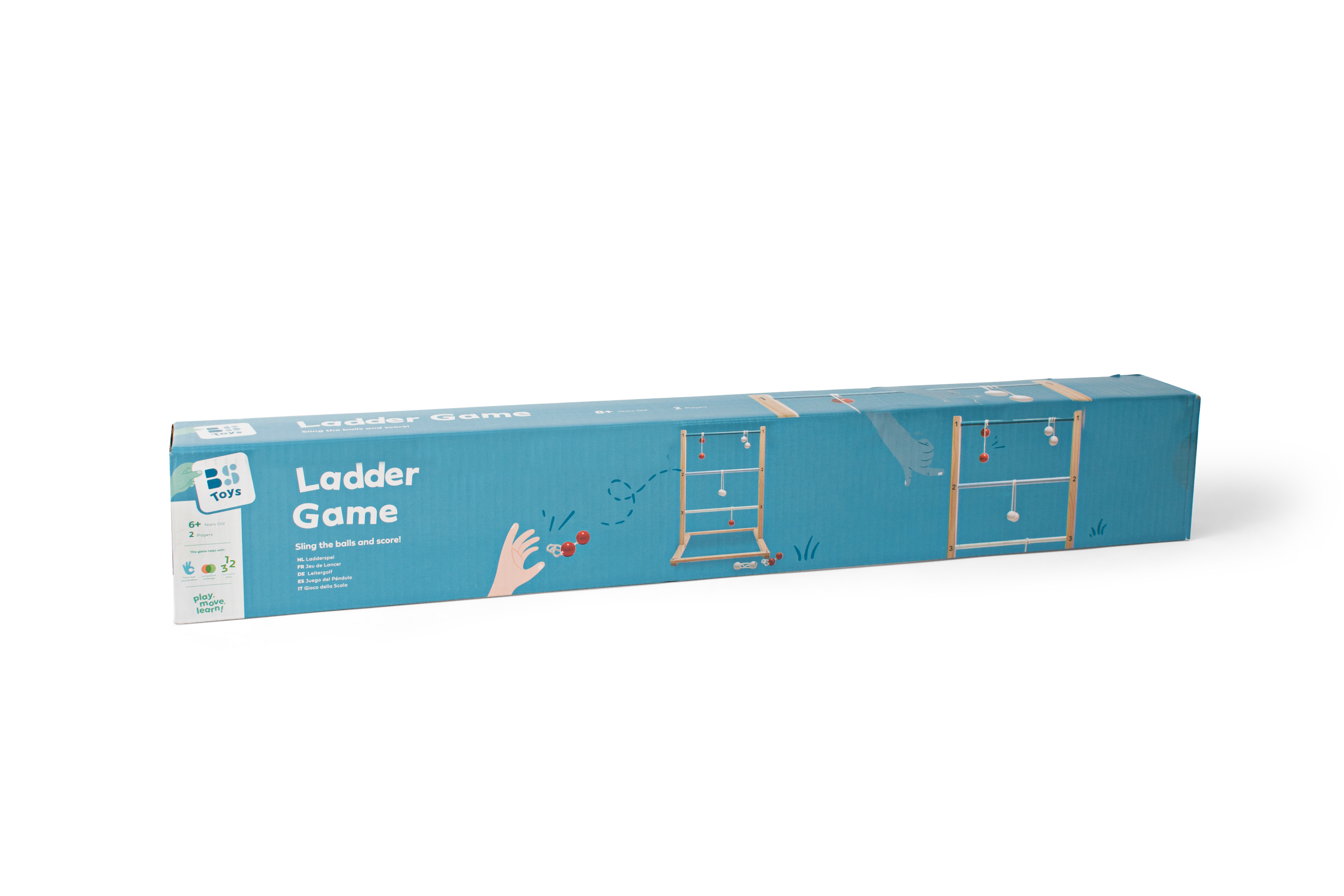 BS Toys Wurfspiel Leitergolf: einfacher Aufbau, inkl. 6 Bolas - Das Wurfspiel Leitergolf von BS lässt sich mit einem Schraubendreher leicht aufbauen. Es enthält insgesamt 6 Leitergolf-Bolas – 3 rote und 3 weiße, damit Sie sofort spielen können. - So wird Leitergolf gespielt - Beim Spiel wechseln sich die Spieler:innen ab, indem sie jeweils Bolas auf die Leiter werfen. Punkte gibt es für Bolas, die auf einer Sprosse liegen oder umwickelt sind. Wenn beide Spieler:innen die gleiche Stange treffen, heben sich die Punkte auf. - Produktdetails: - Material: Holz - Maße (LxBxH): 75x60x55 cm - Gewicht: ca. 2,3 kg - Für 2-4 Spieler:innen - Ab 6 Jahre - Inkl. 6 Bällen