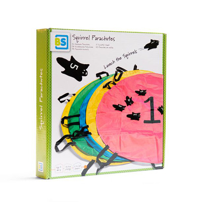 BS Toys Wurfspiel Squirrel Parachutes: Eichhörnchen in Bestform - Das Wurfspiel „Squirrel Parachutes“ von BS-Toys besteht aus 5 Fallschirmtüchern (ø 100 cm), 5 Bohnensäckchen in Eichhörnchen-Form und eine 1 Anleitung mit QR-Code. An den Rändern der Schwungtücher sind je 4 stabile Schlaufen angenäht, an denen das Tuch festgehalten wird. Die Eichhörnchen-Bohnensäckchen werden von einem Tuch zum anderen gespielt, ohne dass das Eichhörnchen zu Boden gehen darf. Das Spiel enthält eine Anleitung. - Produktdetails: - Material Eichhörnchen-Bohnensäckchen: 100 % Filzstoff - Material Fallschirmtuch: 100 % Polyester - Material Fallschirmtuch-Griffe: 100 % Polypropylen (PP) - Maße Fallschirmtuch: ø 100 cm - Maße Eichhörnchen-Bohnensäckchen (LxBxH): 13x7x2 cm - Für 2 – 20 Personen - Inkl. 1 Anleitung mit QR-Code