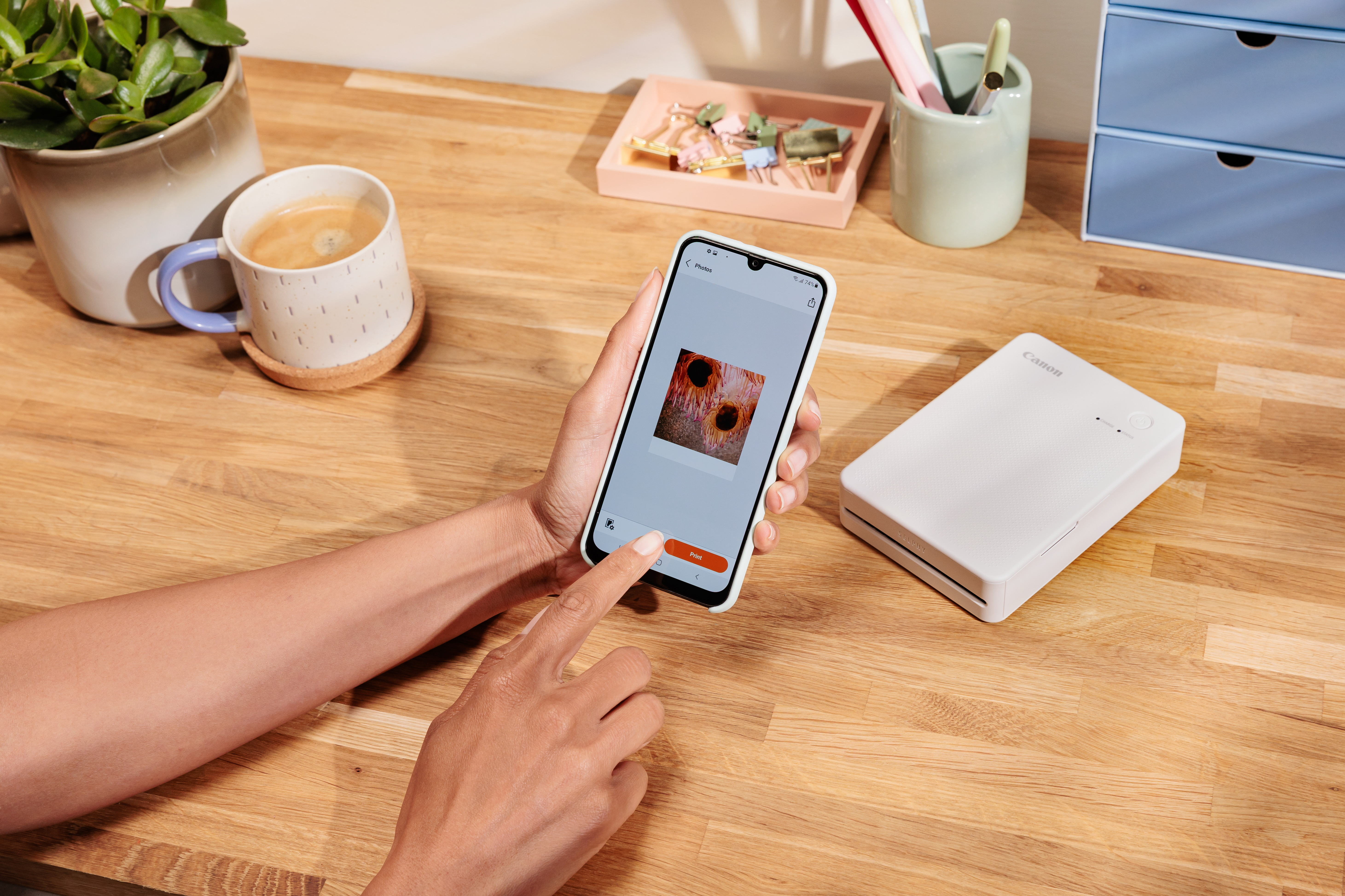 Drucken Sie über die kostenlose Canon App und genießen Sie das Hinzufügen von künstlerischen Akzenten wie Stempeln, Filtern, Rändern und Text. Das neueste Update enthält Collagen, Rahmen und anpassbare Ränder.