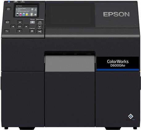 ColorWorks D6000 dye inc, Cutter, Disp., USB, Ethernet, schwarz Farb-Etikettendrucker, Tintenstrahl (mehrfarbig), Medienbreite (max): 112 mm, Druckbreite (max.): 108 mm, Rollendurchmesser (max.): 203mm, Geschwindigkeit (max.): 119 mm/Sek, Cutter, Dis