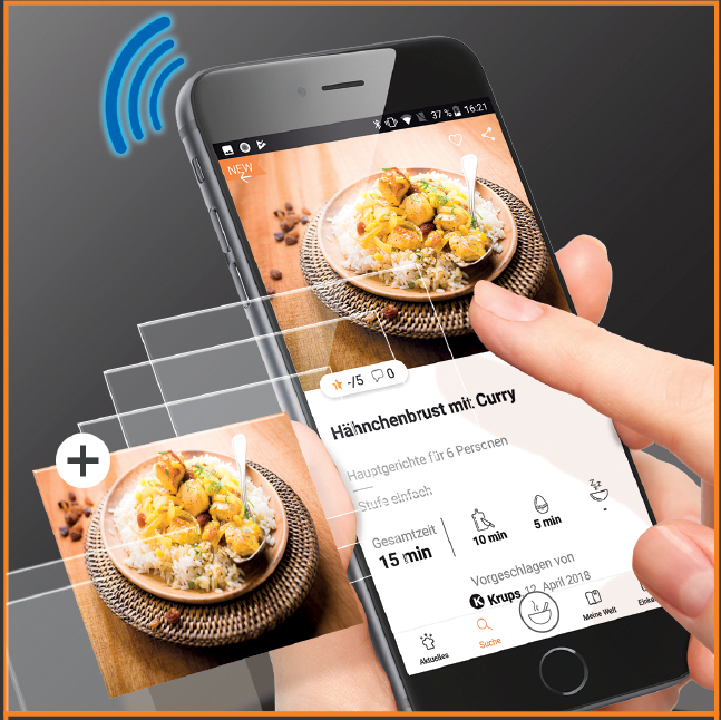 Vernetzen Sie sich und finden Sie Hunderte von Rezepten. Aktualisieren Sie Ihren COOK4ME+ Connect mit neuen Rezepten ganz nach Ihrem Geschmack. Überwachen Sie den Garvorgang auf dem Display Ihres Smartphones oder Tablets. Personalisieren Sie Ihren COOK4ME+ Connect mit Ihren Lieblingsrezepten.