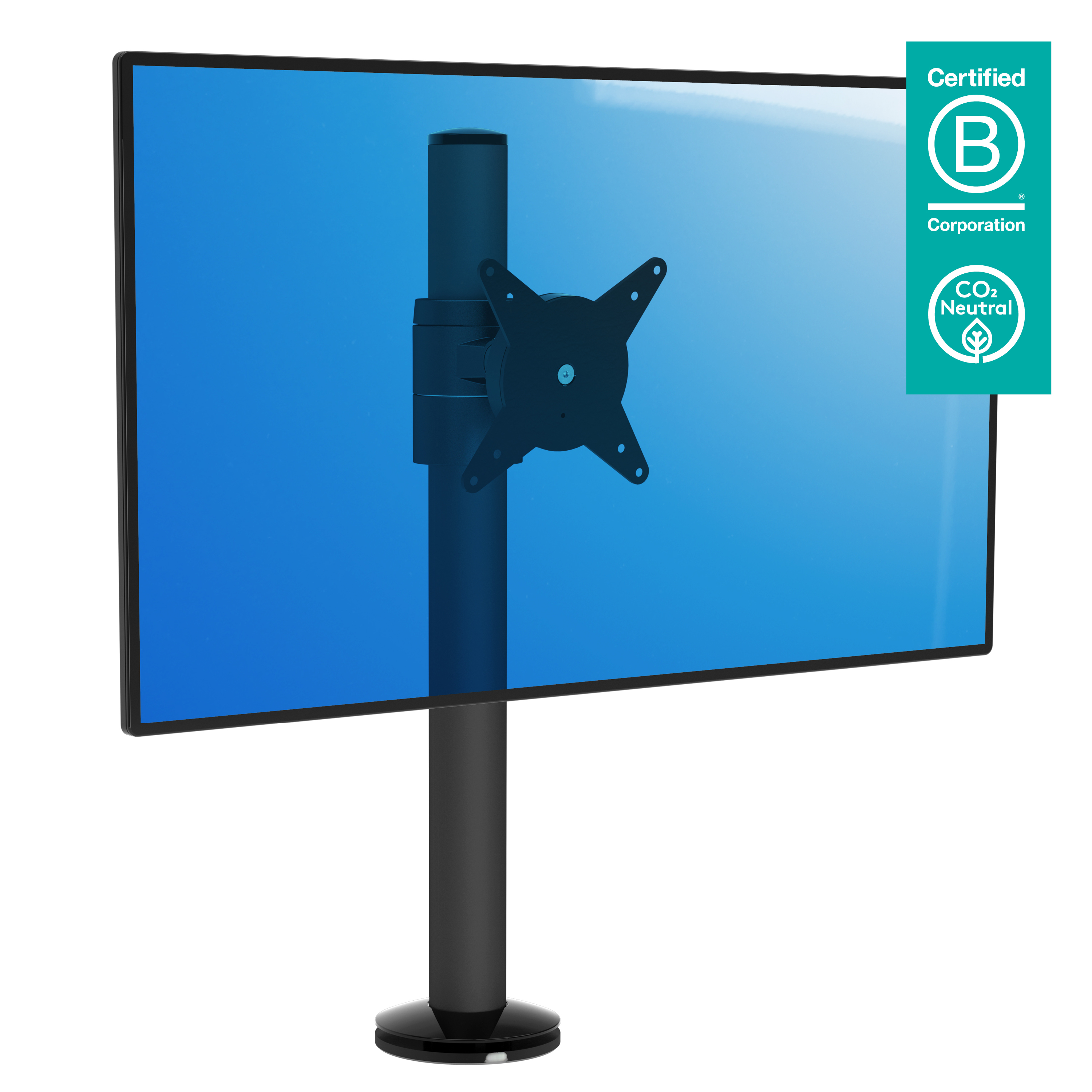 Durch den kurzen Abstand zwischen Monitor und Säule eine ideale Lösung an Kassen, Verkaufsstellen o. Ä.; Stufenlose Höhenverstellung ermöglicht jedem Nutzer seine eigene optimale ergonomische Einstellung.; Kabel werden einfach in der Aluminiumsäule verborgen, wodurch eine ordentlicher, professioneller Eindruck entsteht.; Statischer Höheneinstellungsbereich von 350 mm; Ohne Tiefeneinstellung; Integriertes Kabelmanagement; Hauptkomponenten aus Aluminium; 40% des Aluminiums ist bereits recycelt; Kompatibel mit VESA MIS-D 75 x 75/100 x 100 mm; Monitor: neigbar +65 Grad /-65 Grad , schwenkbar +90 Grad /-90 Grad , Drehbar 360 Grad; Tragfähigkeit max. 8 kg pro Monitor; Geliefert mit Tischklemmenbefestigung und Durchtischbefestigung; Geeignet für eine Schreibtischdicke von 5 bis 40 (Klemme) oder 50 mm (Durchtisch); Höchstmaß Monitor: Höhe 816 mm; Ausgestattet mit einem praktischen VESA-Schnellverschluss-System; Monitor-Rotationsstopp wählbar;