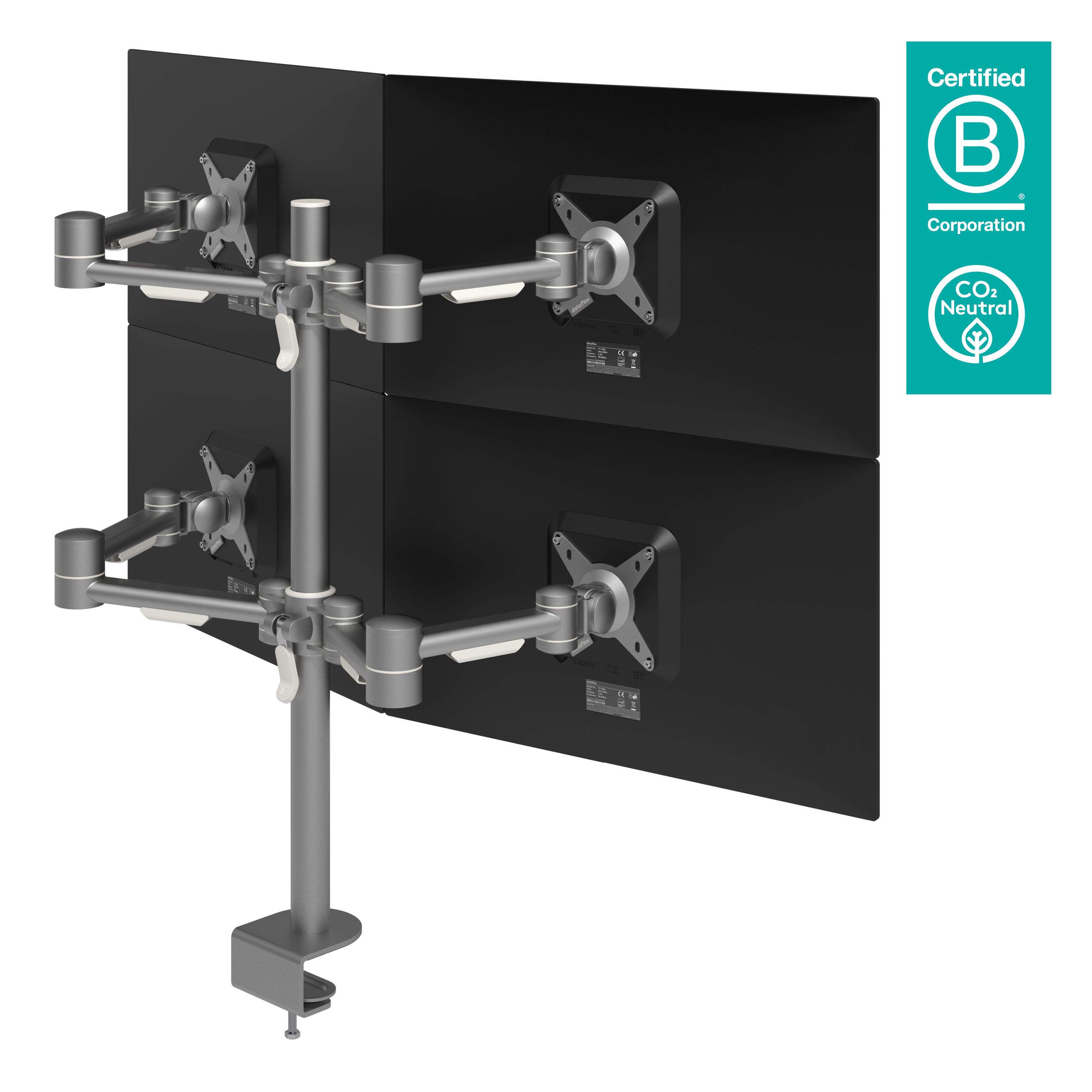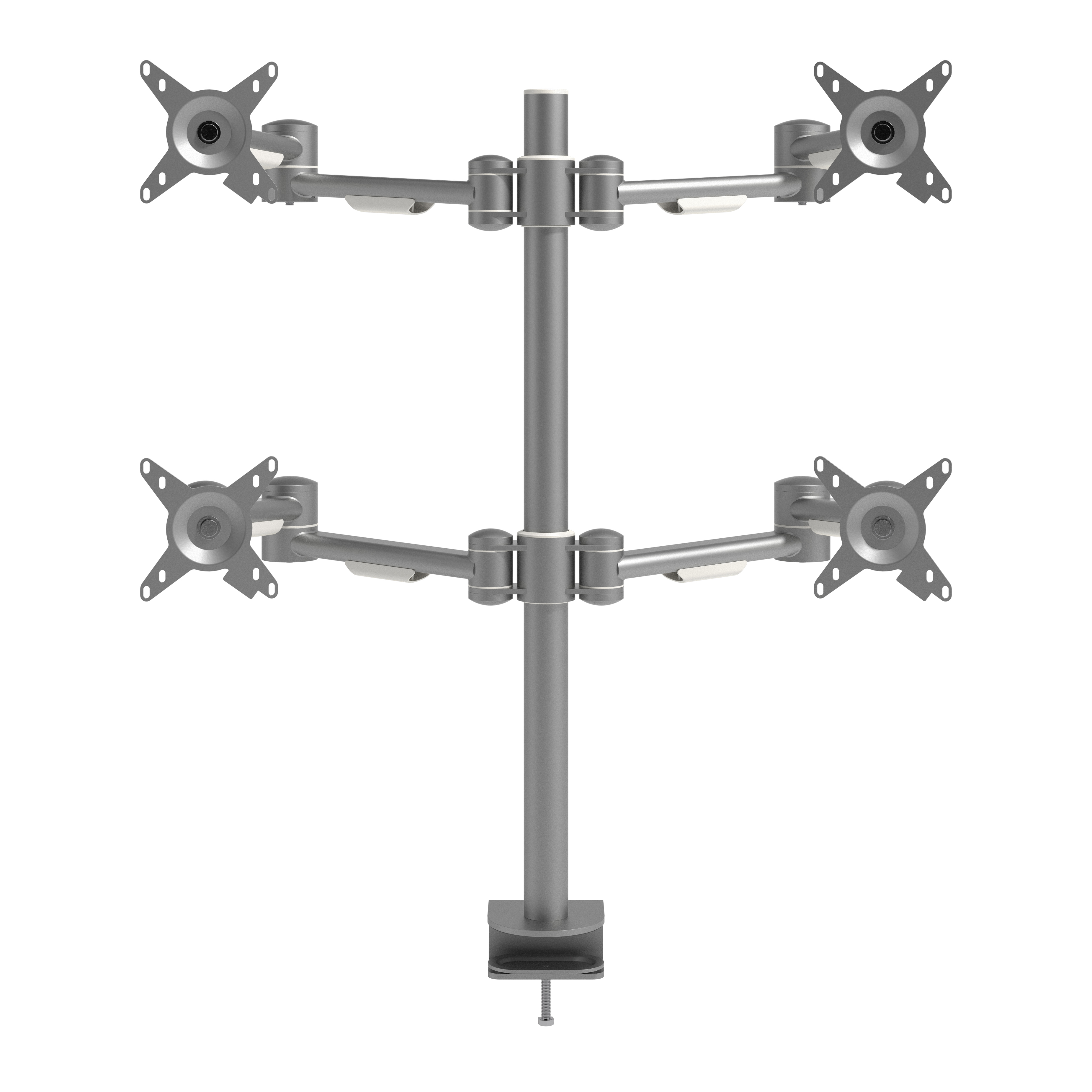 Zur Montage von vier Monitoren an einer Säule; Totale Armlänge 480mm; Tiefenverstellbar; Höhenverstellbar; VESA: MIS-D 75 x 75/100 x 100mm kompatibel; Rotieren 360 Grad, neigbar 180 Grad, schwenkbar 180 Grad; Max. Belastung 12kg/ Monitor (bis 24 Zoll/24 ZollW); Säule Höhe 710mm; Säule Durchmesser 38mm; Schnellverschluß; Lieferung mit Durchtischbefestigung (Max. 70mm) und Tischklemme (Max 60mm);