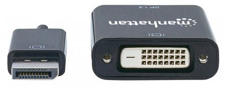 Zum Anschluss einer DisplayPort-Quelle an ein DVI-D-Display Dieser Manhattan DisplayPort Adapter ermöglicht den schnellen, einfachen und praktischen Anschluss von Zuspielgeräten mit DisplayPort-Ausgang an Displays mit DVI-Eingang. Full HD/1080p-Auflösungen werden mit 60 Hz übertragen und das ganz ohne Treiberinstallation, Netzteil oder Konfiguration.