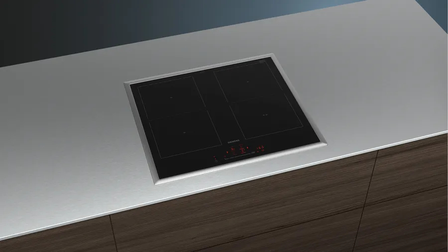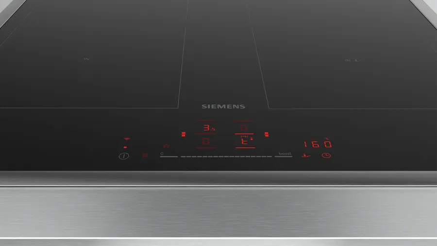 Induktionskochfeld ED645HQC1E von Siemens Mit dem ED645HQC1E bietet Siemens Ihnen ein Induktionskochfeld. Effizient und sicher: Die Induktionskochzone mit Topf-Positions-Erkennung geht nur in Betrieb, wenn Kochgeschirr darauf steht. Dieses wird dann schnell und präzise erhitzt. Ebenso trägt die Kindersicherung zur sorglosen Haushaltsführung bei. Innovativ und mühelos regeln Sie die Einstellungen über die smarten Funktionen das ED645HQC1E. Dadurch stehen Ihnen jederzeit und überall Infos zum Gerätestatus über WLAN zur Verfügung. Auf 4 Kochzonen bietet das Induktionskochfeld Platz für Töpfe. Das Kochfeld mit Brückenbetrieb verhilft Ihnen zu mehr Spielraum beim Kochen. Kochen mit hohem Tempo realisiert die Turbostufe auf schnellstem Wege. Sie kann während des Garvorgangs angeschaltet werden oder das Nudelwasser in wenigen Minuten zum Sieden bringen. Gut zu wissen Autark-Induktionsfeld wird mit Sensortasten bedient. Das Induktionskochfeld hat ein Gewicht von 11,5 kg und ist 58,3 cm breit, 5,5 cm hoch und 51,3 cm tief. Das über 100-jährige Unternehmen Siemens ist vor allem bekannt für Haushaltsgeräte, Medizintechnik und Automatisierungstechnik. Bestellen Sie mit nur wenigen Klicks in unserem Shop.