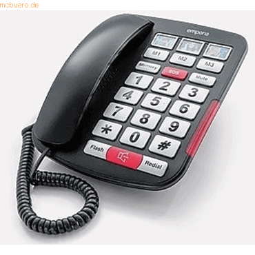 Das emporia AMPLi40 ist ein ideales Telefon für alle, die unter Hörproblemen leiden. Die Hörerlautstärke kann durch eine Verstärkungstaste und eine variable Lautstärkeregelung auf bis zu 40 dB erhöht werden. Dadurch wird die Qualität von Telefongesprächen verbessert. Mit einem lauten Rufton (bis zu 85 dB) und einer großen visuellen Klingelanzeige werden Personen mit eingeschränktem Hörvermögen darauf aufmerksam gemacht, wenn das Telefon klingelt. Der Hörer ist außerdem HAC-kompatibel. Mit extra großen Tasten und hohem Kontrast ist das AMPLi40 auch ideal für Menschen mit Sehbehinderungen geeignet, da die Zahlen leichter zu lesen und die Tasten besser zu erkennen sind. Die größeren Tasten sind auch für Personen mit eingeschränkter Fingerfertigkeit geeignet, da sie leichter zu handhaben sind als kleinere, herkömmliche Wähltasten. Das AMPLi40 ist zudem eine praktische Lösung für alle, die unter Gedächtnisverlust leiden. Es verfügt über 7 Direktwahlspeicher, von denen 3 die Möglichkeit bieten, ein Foto hinzuzufügen und einer als SOS für einen bestimmten Notfallkontakt markiert ist. Das schnurgebundene emporia AMPLi40 Big Button Amplified Telefon ist natürlich einfach zu bedienen. Es ist auch besonders einfach anzuschließen und zu verwalten. Es benötigt weder ein Stromkabel noch Batterien, um zu funktionieren. Schließen Sie es einfach an Ihre Telefondose an und los geht's.> Highlights- Einfaches Groß-Tasten Telefon- Hörgerätetauglich- Höhrerlautstärke Verstärker +40 dB- Freisprecheinrichtung- 3 Direktwahltasten mit Fotoeinsatz (10 Direktwahlspeicher)- SOS Taste- Telefon funktioniert ohne externes Netzgerät- Wandmontage möglich> Produkttyp- Endgerät Schnurgebunden- ear-Kategorie (ElektroG): relevant, Kategorie 6: kleine Geräte der IT- und TK-Technik, Kleine Geräte der IT- und TK-Technik B2C> Spezifikationen- Befestigung: Wandmontage, Tischmontage> Versand- WEEE: 57174246> Telefoneigenschaften- Freisprechfunktion- Hörgerätekompatibel- Telefontyp: analog- Großtasten- optische Anrufsignalisierung> Anschlüsse- Anschluss Hörer: Wendelschnur> Stromversorgung- Netz> Grundeigenschaften- Farbe: Schwarz> Lieferumfang- Emporia AMPLI40 Telefon Schwarz