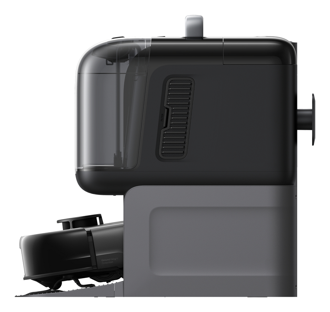 Mühelose Wartung mit der All-in-One-Station Dank Selbstentleerung, Selbstreinigung, Heißlufttrocknen, automatischer Reinigungsmittelzugabe, Schmutzwasserauffang und Selbstbefüllung genießt du ein komplett freihändiges Reinigungserlebnis